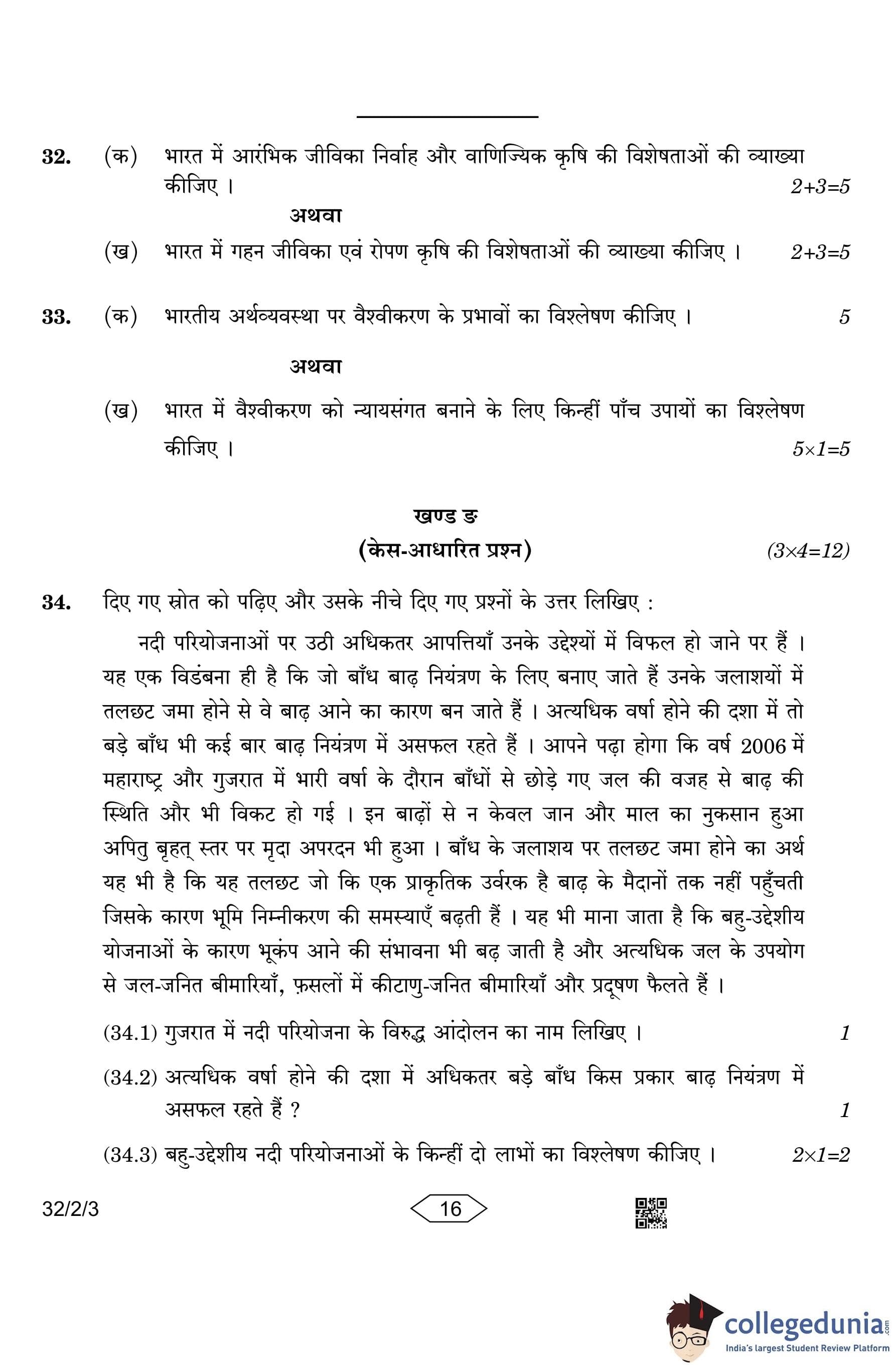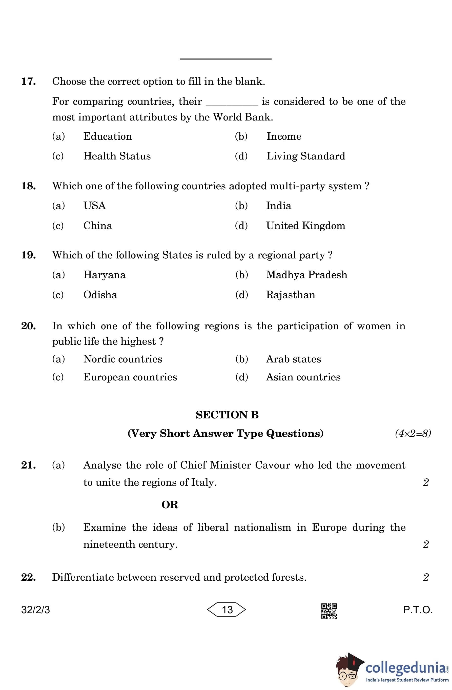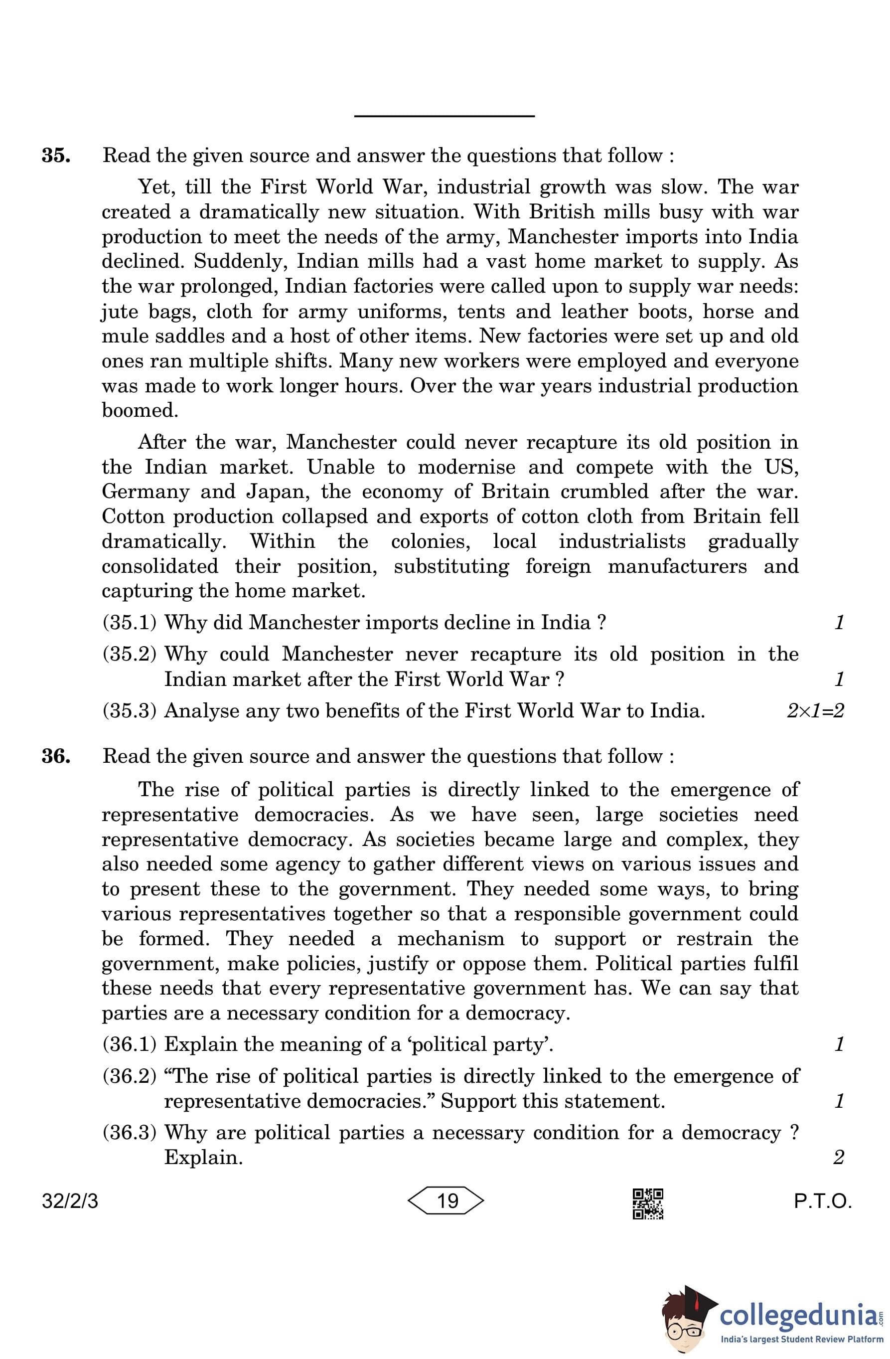 CBSE Class 10 Social Science (Set 3- 32/2/3) Question Paper 2023 with Answer Key
