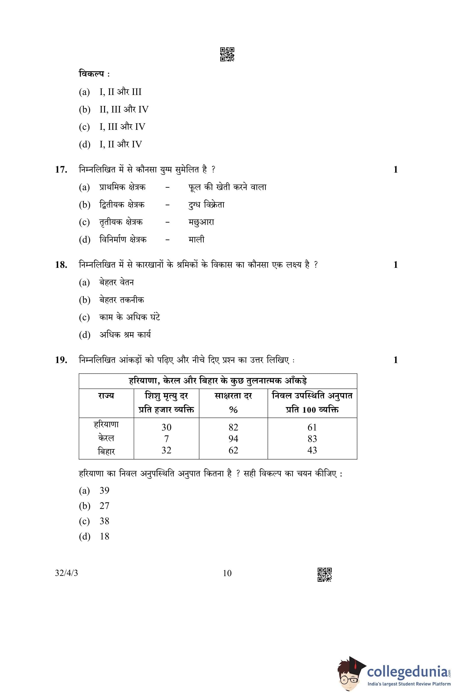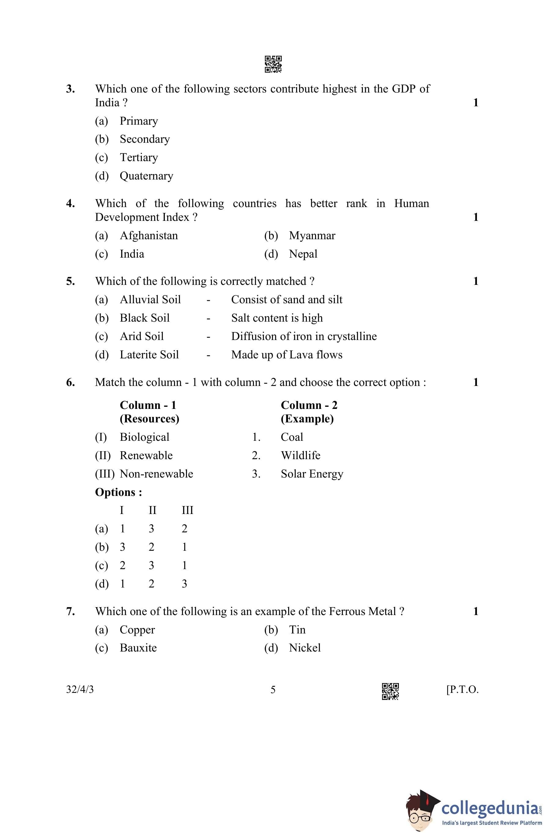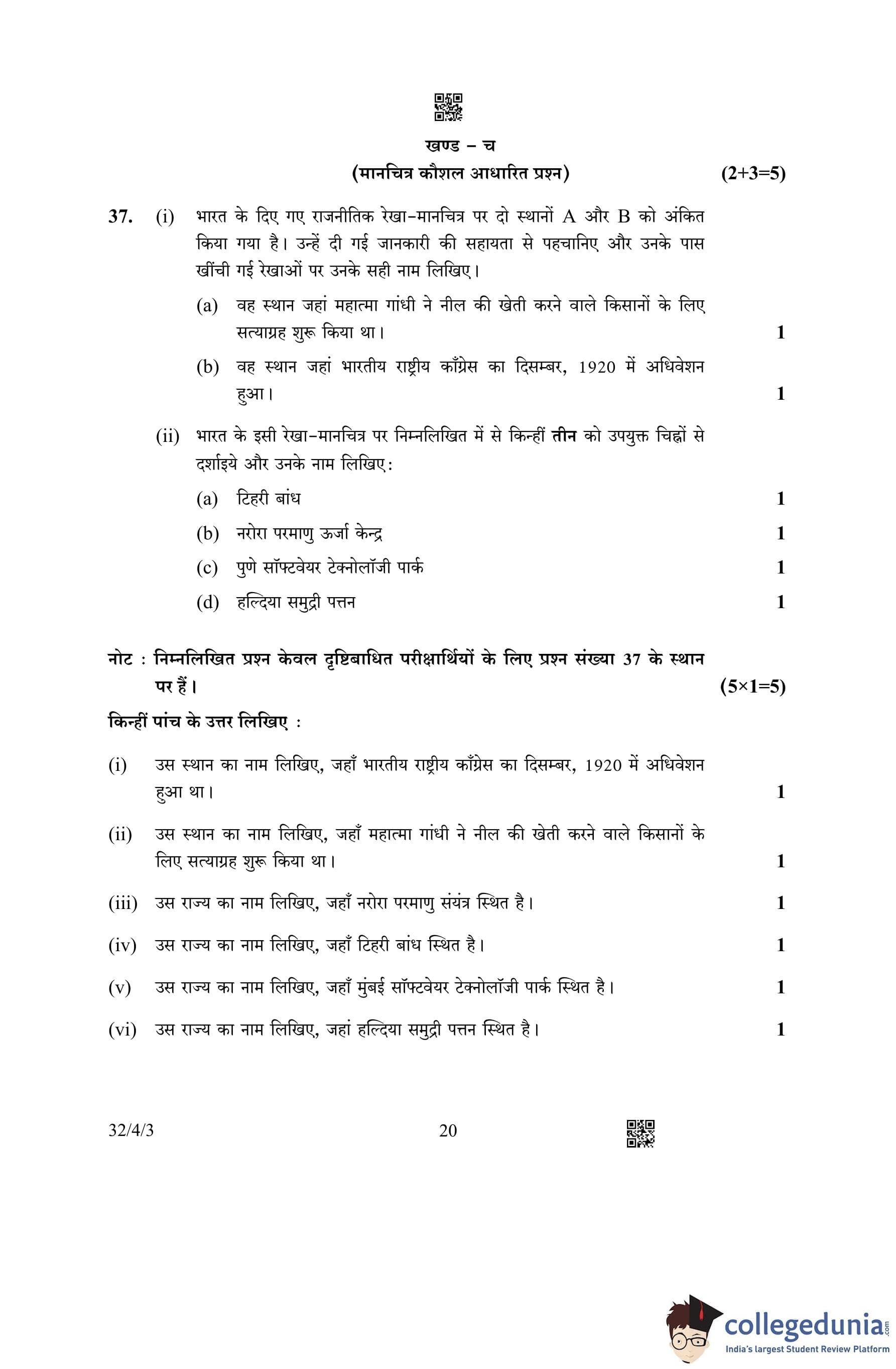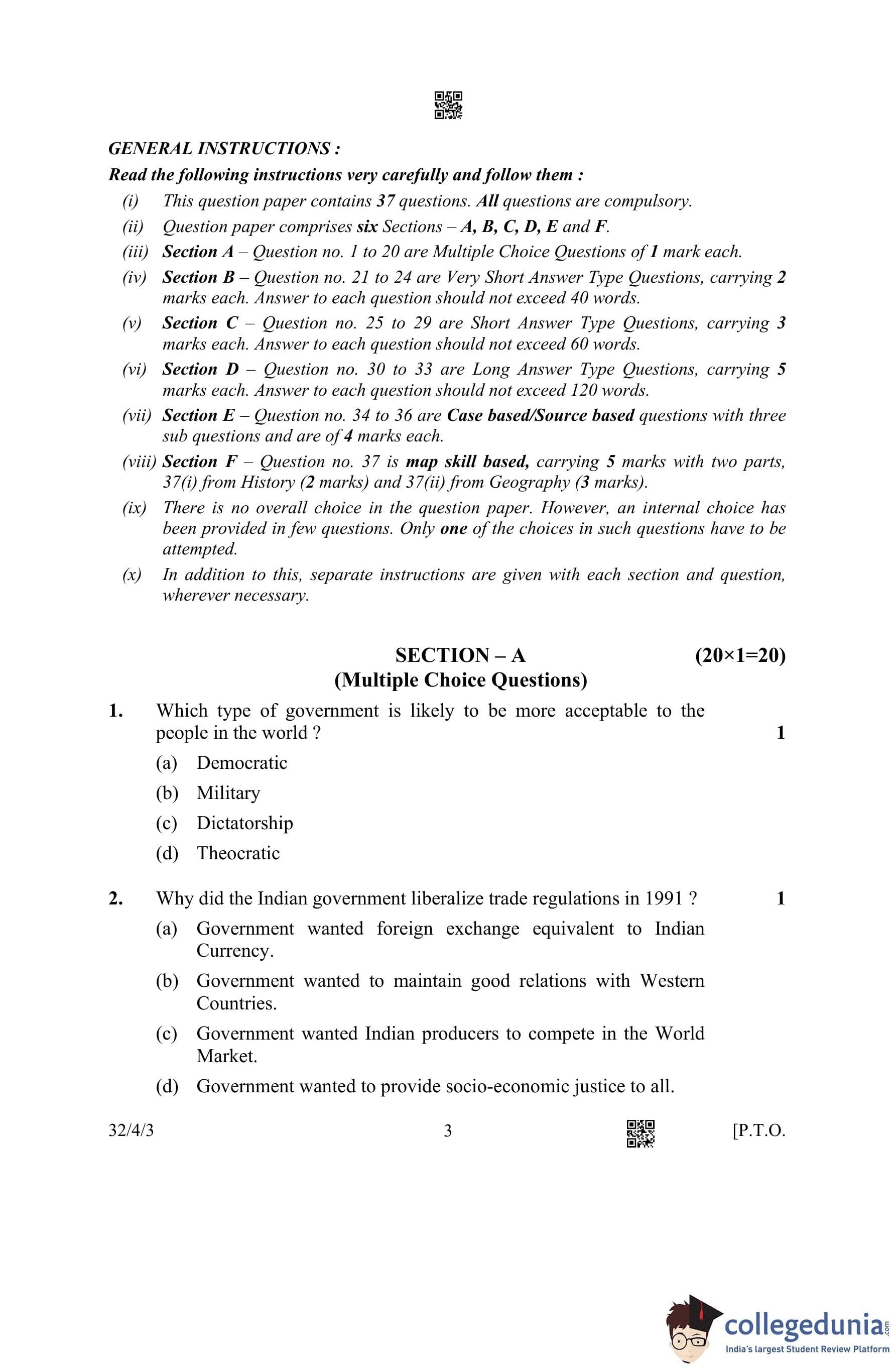 CBSE Class 10 Social Science (Set 3- 32/4/3) Question Paper 2023 with Answer Key
