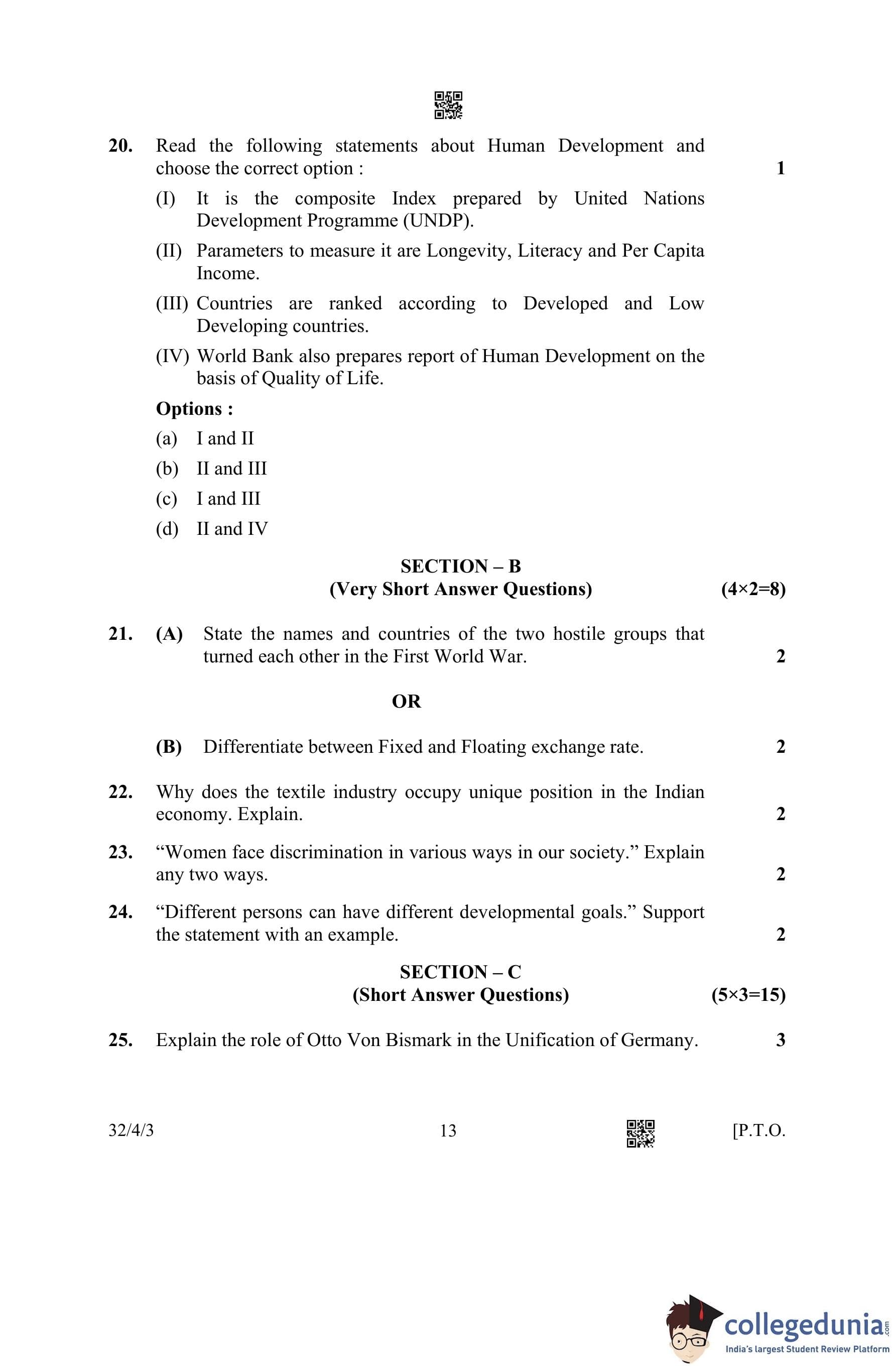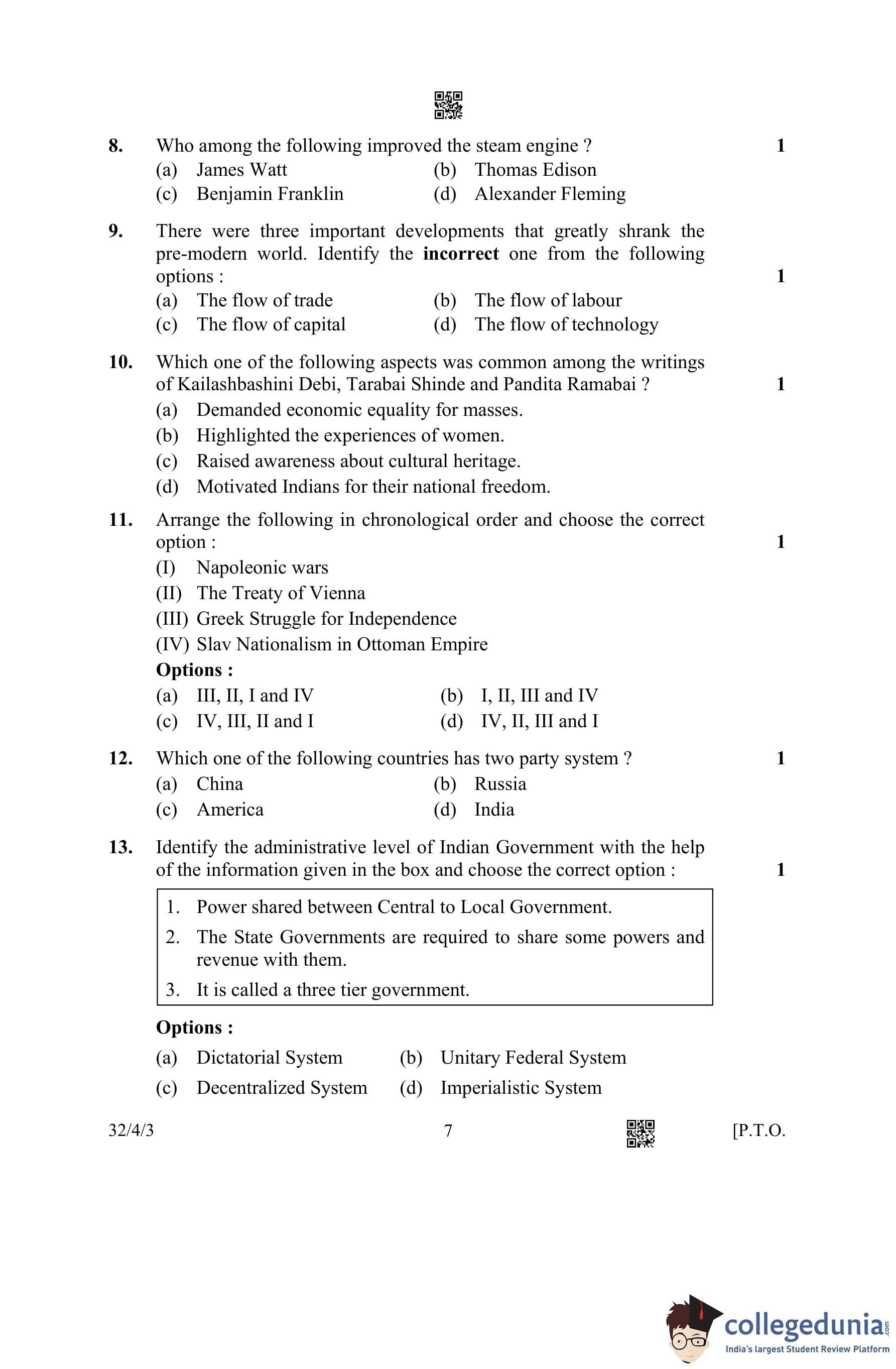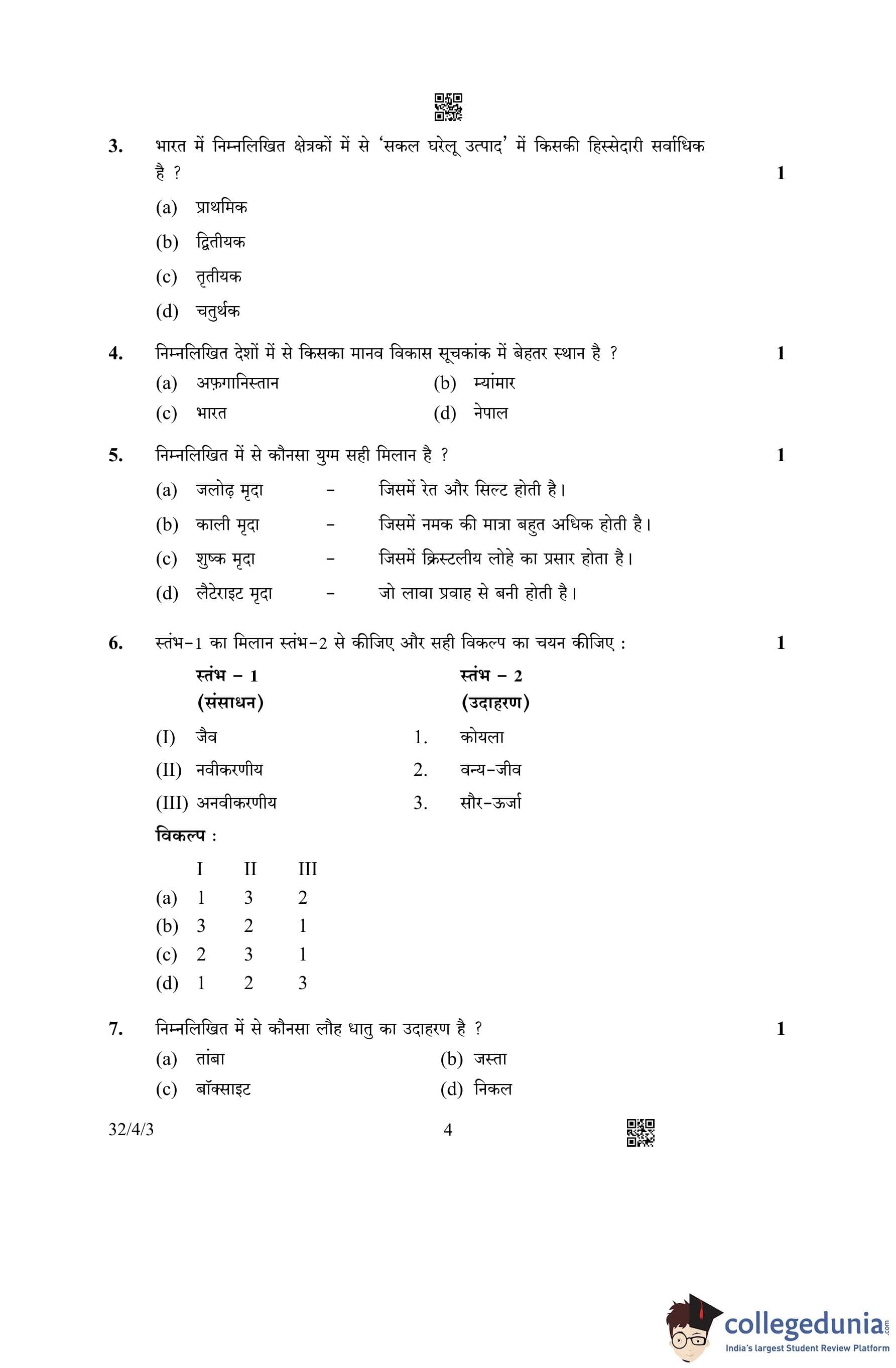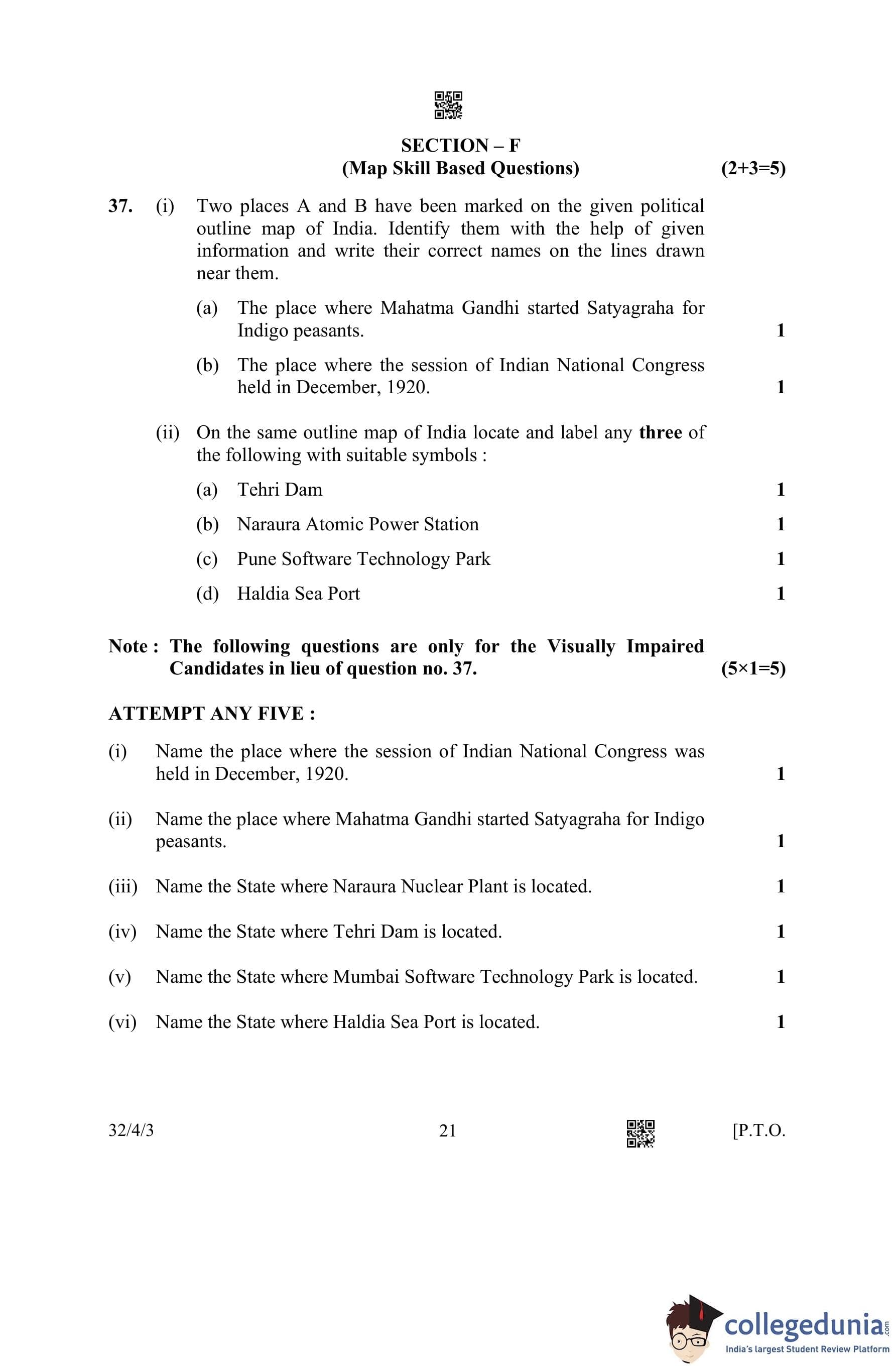 CBSE Class 10 Social Science (Set 3- 32/4/3) Question Paper 2023 with Answer Key