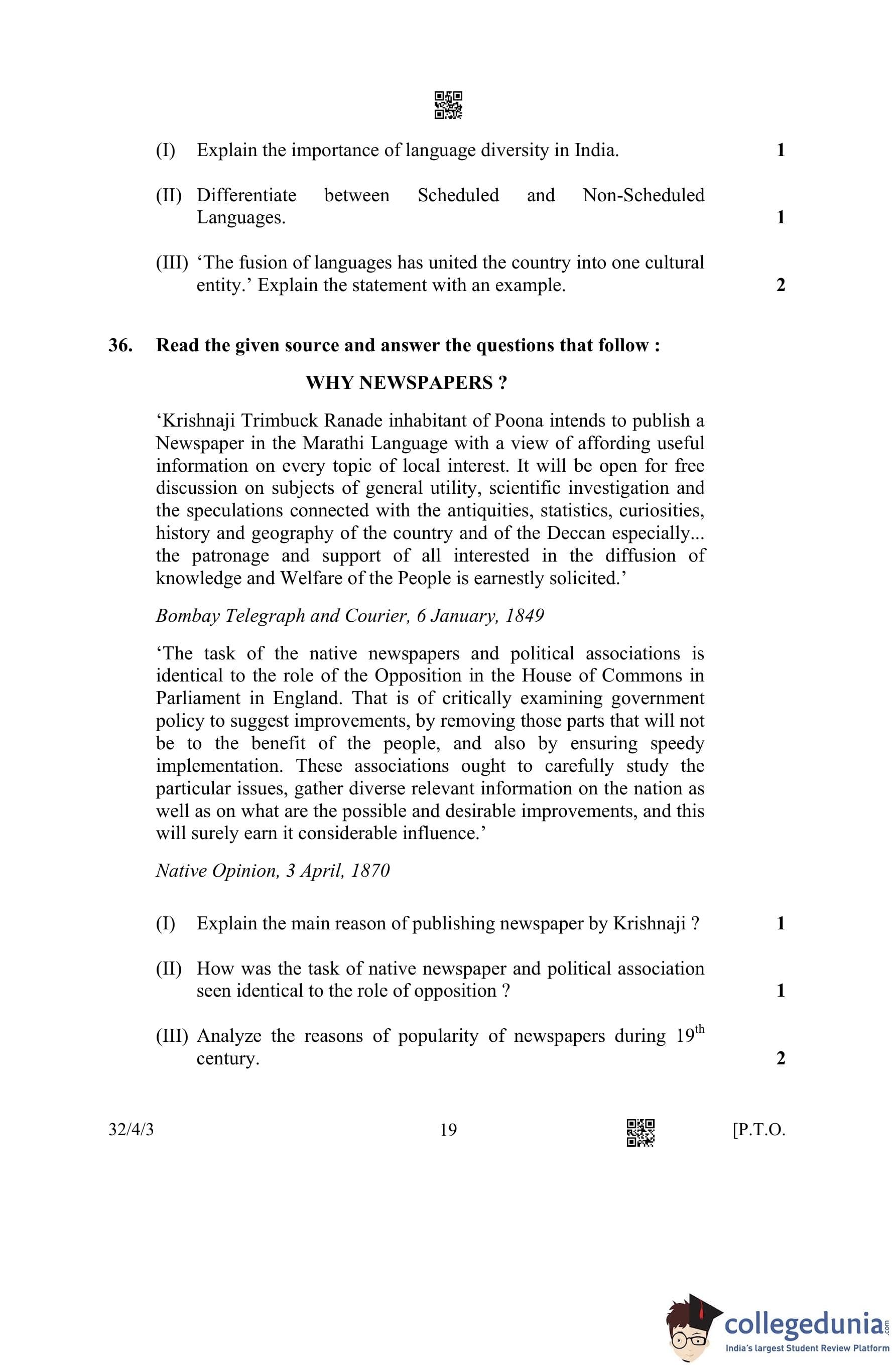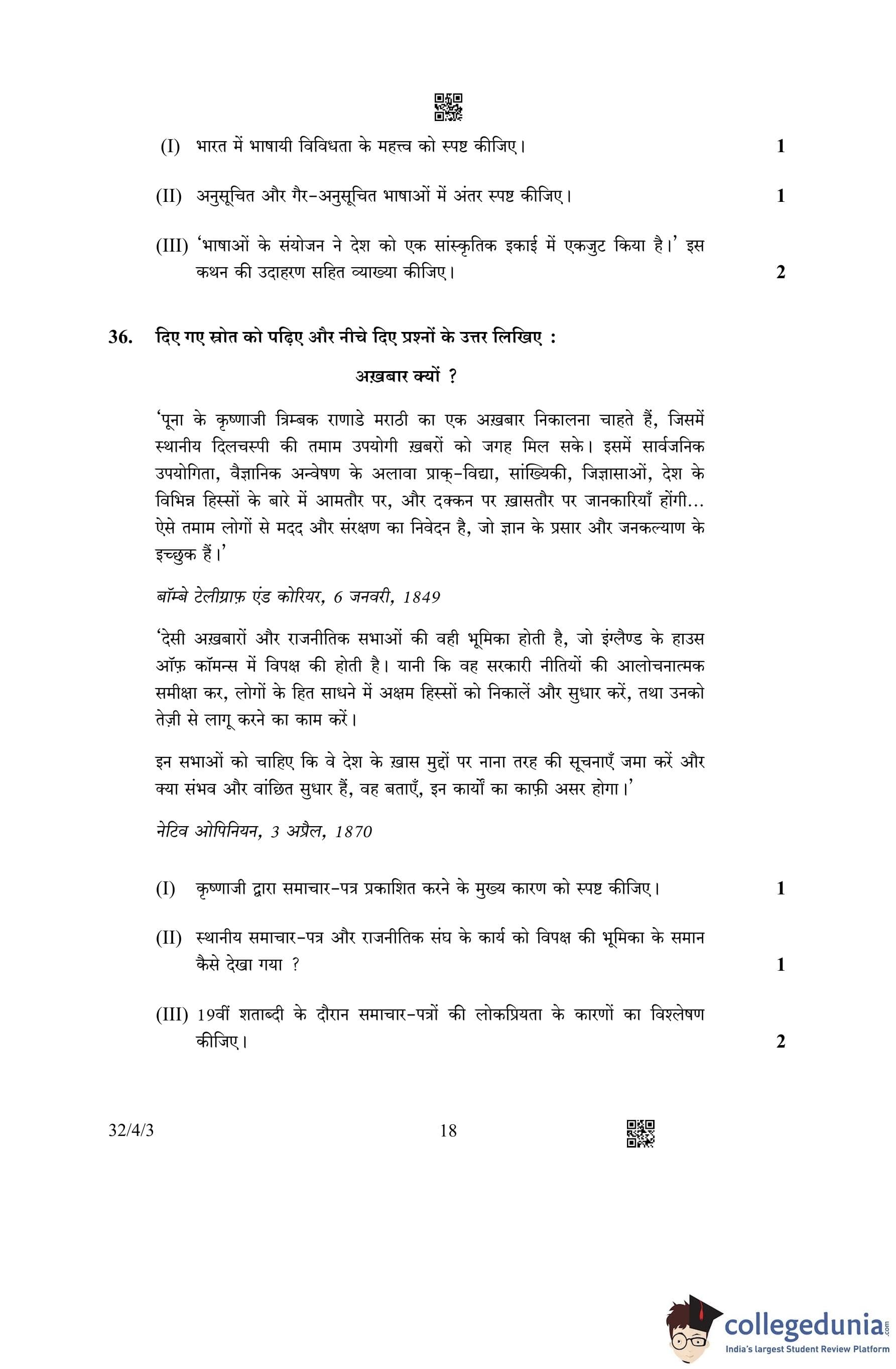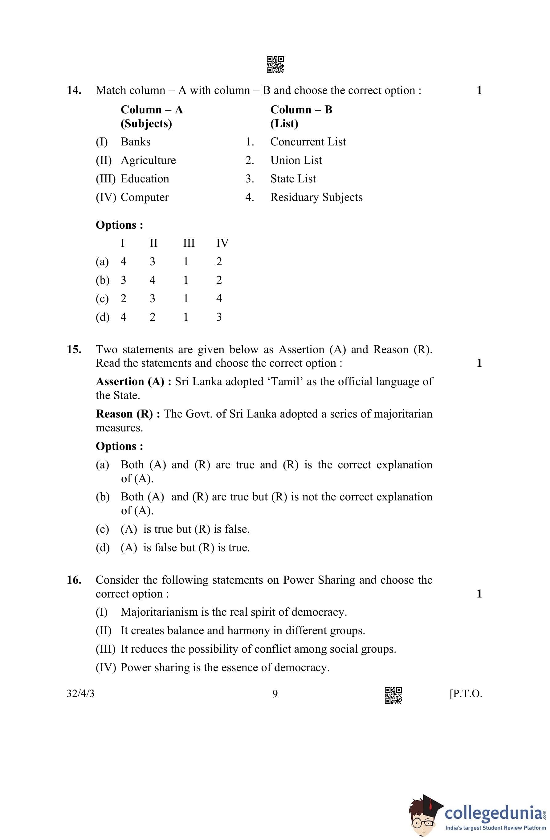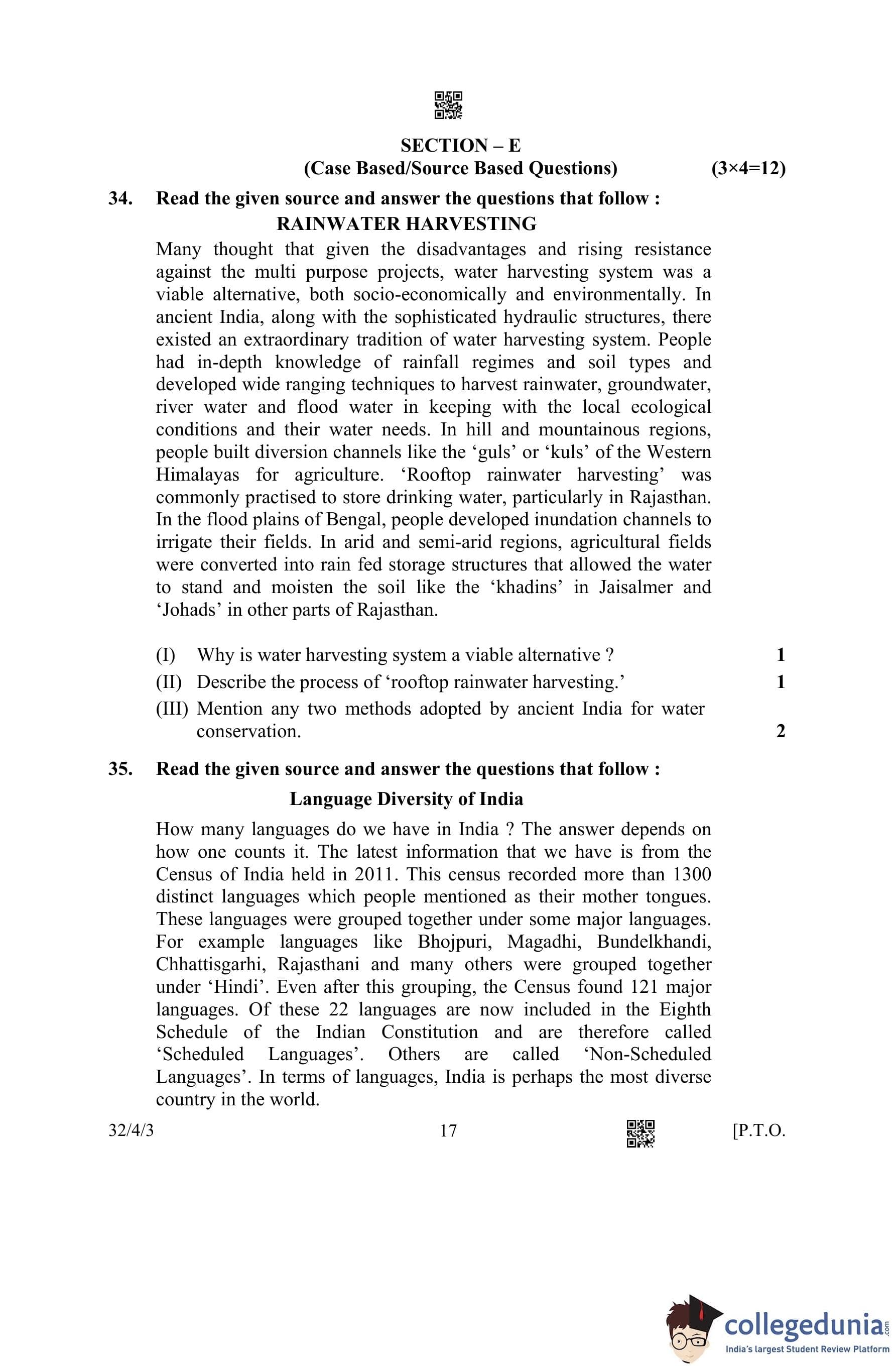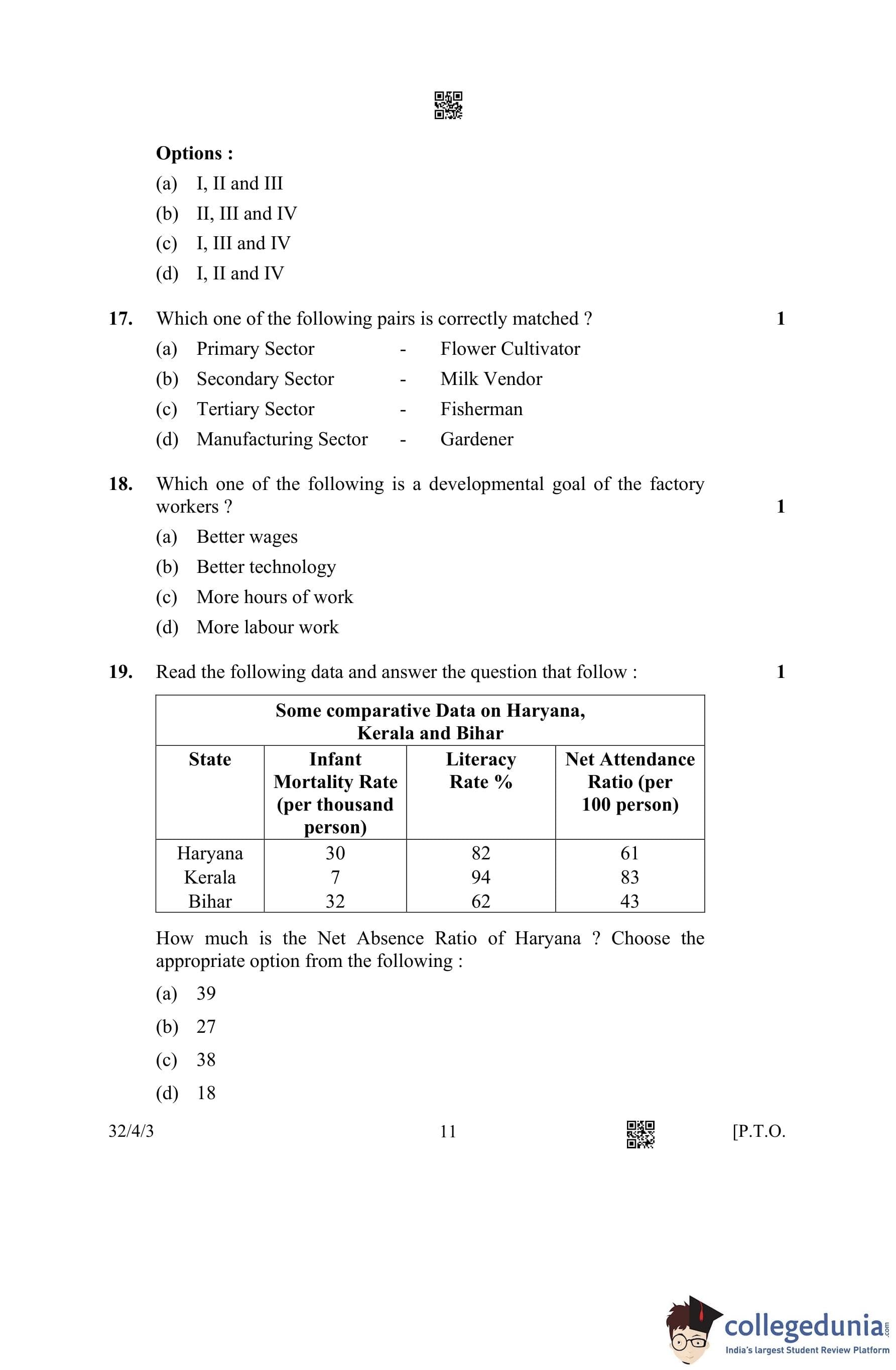 CBSE Class 10 Social Science (Set 3- 32/4/3) Question Paper 2023 with Answer Key