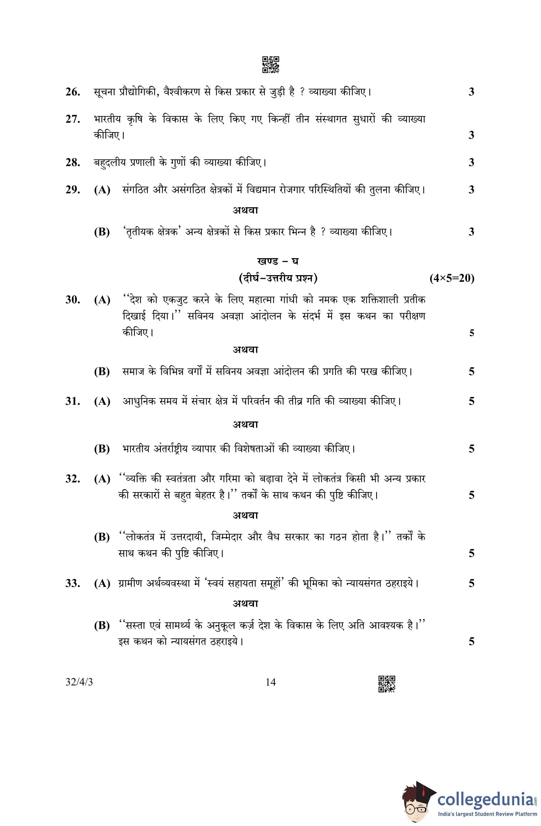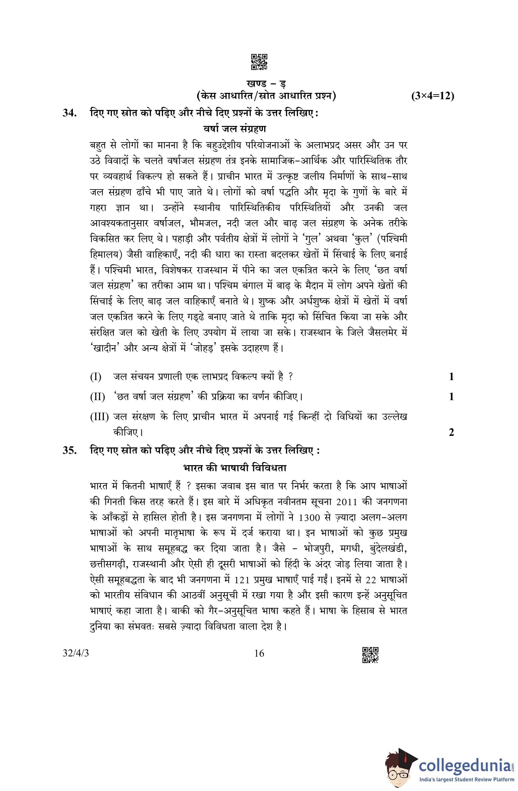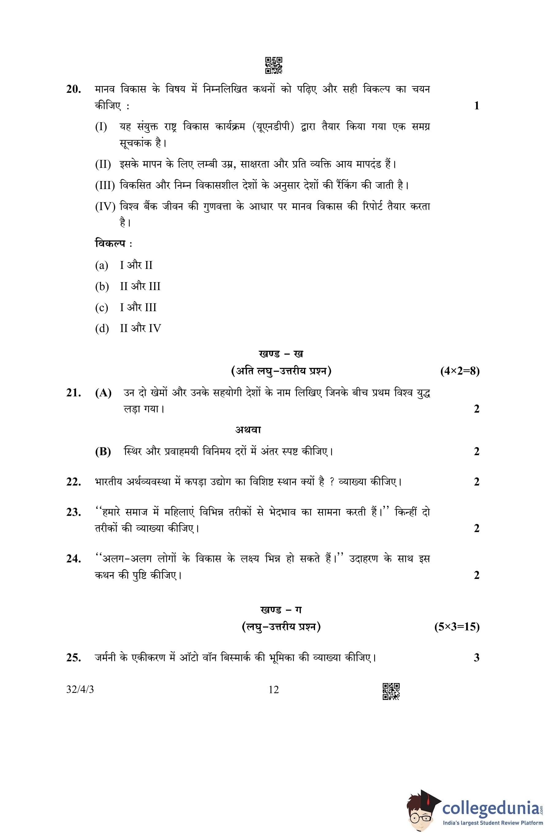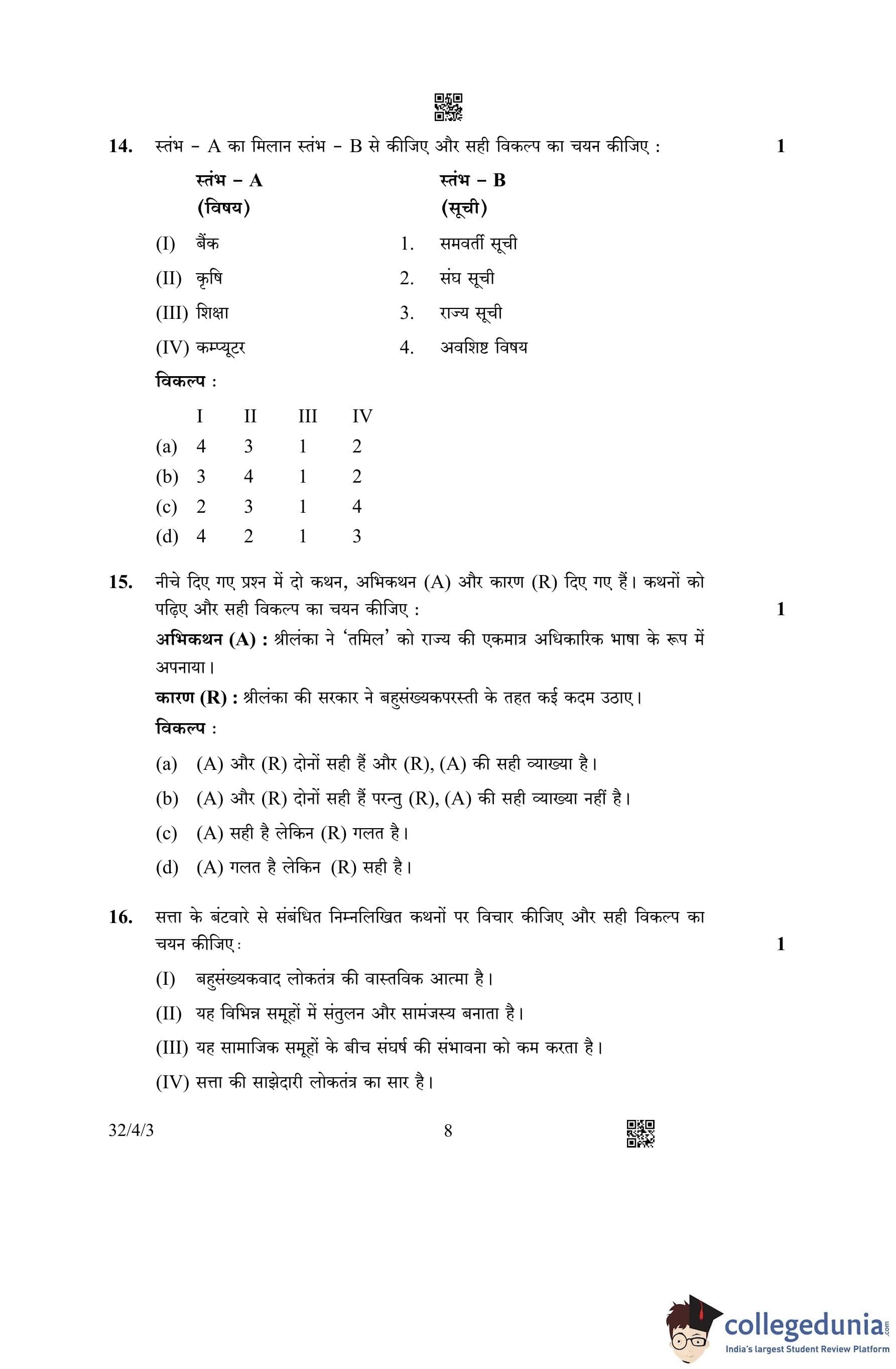 CBSE Class 10 Social Science (Set 3- 32/4/3) Question Paper 2023 with Answer Key