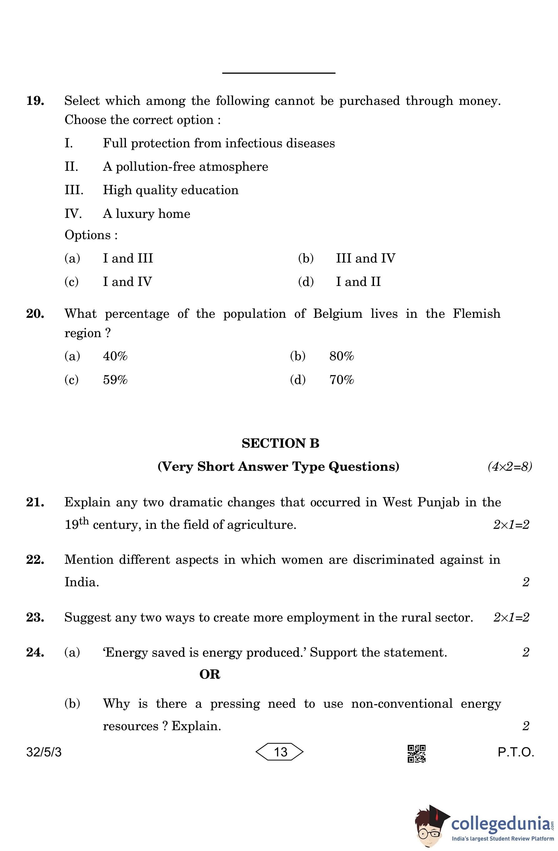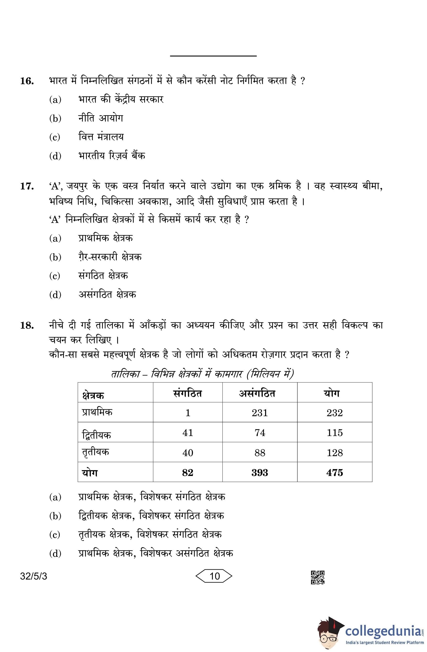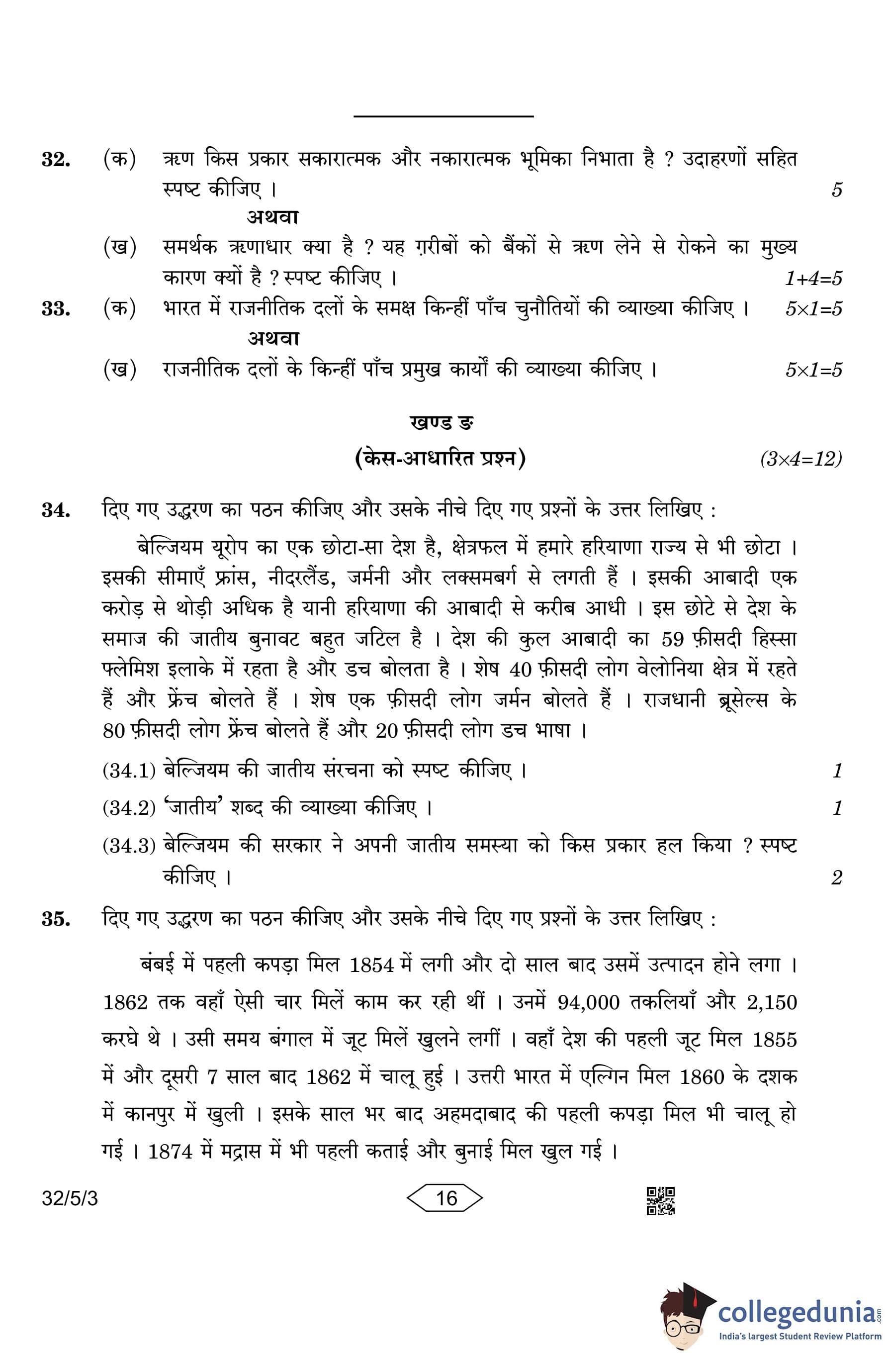 CBSE Class 10 Social Science (Set 3- 32/5/3) Question Paper 2023 with Answer Key