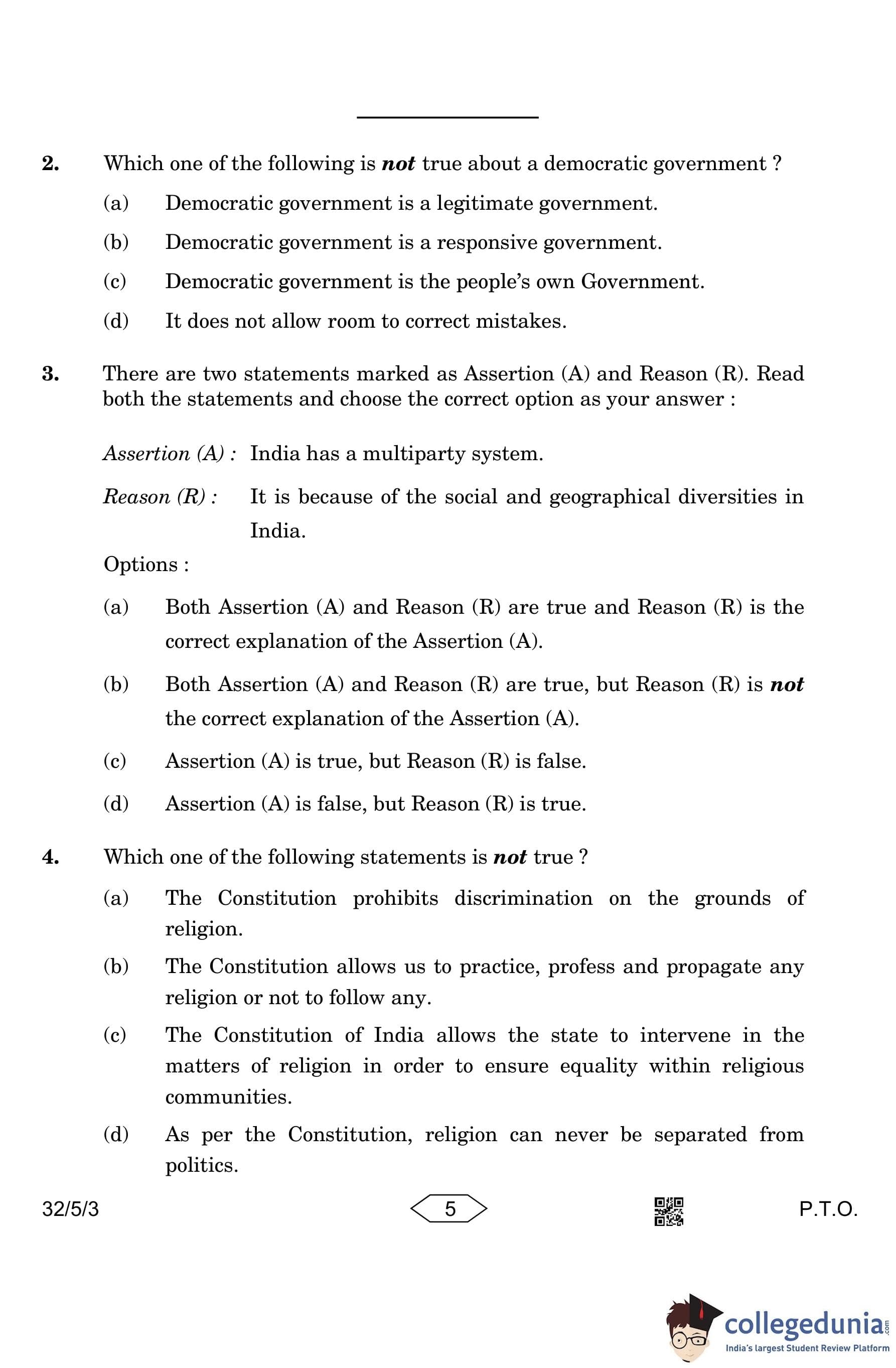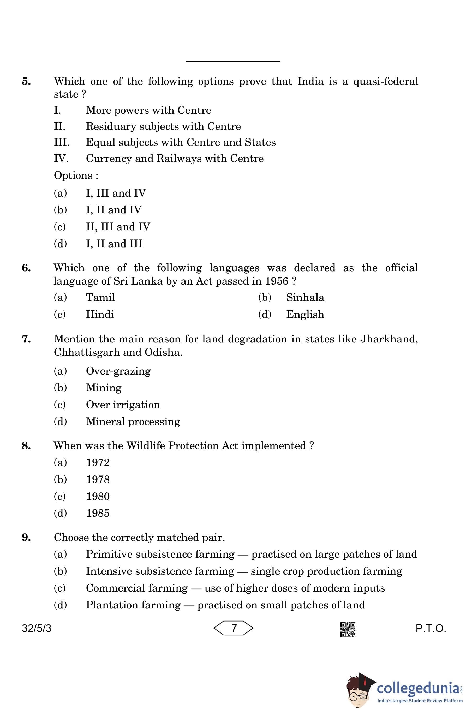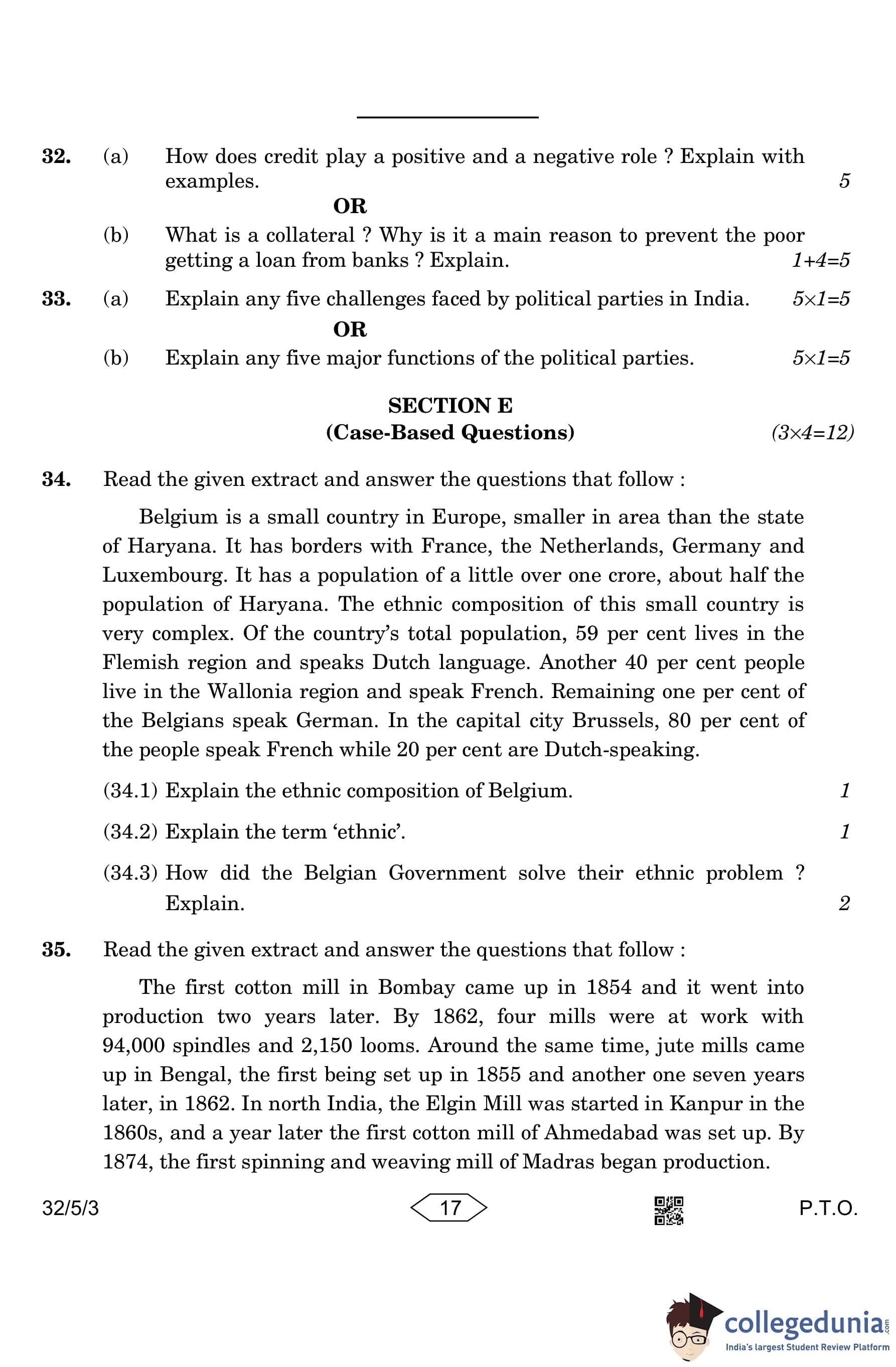 CBSE Class 10 Social Science (Set 3- 32/5/3) Question Paper 2023 with Answer Key