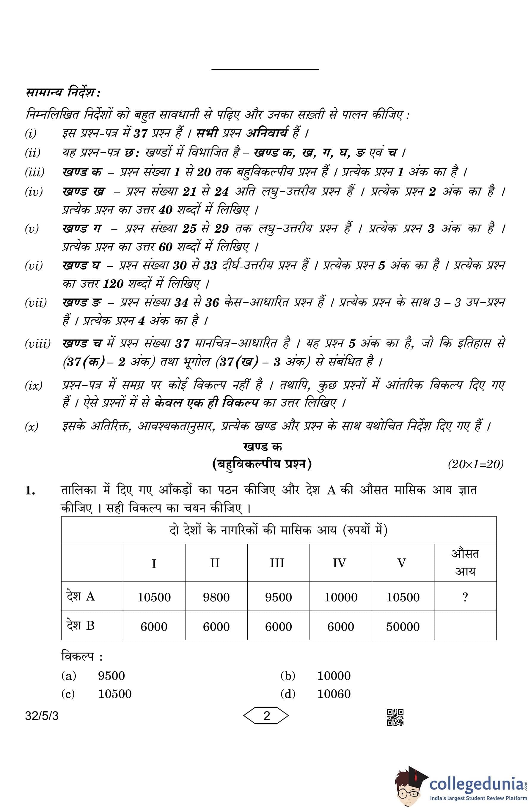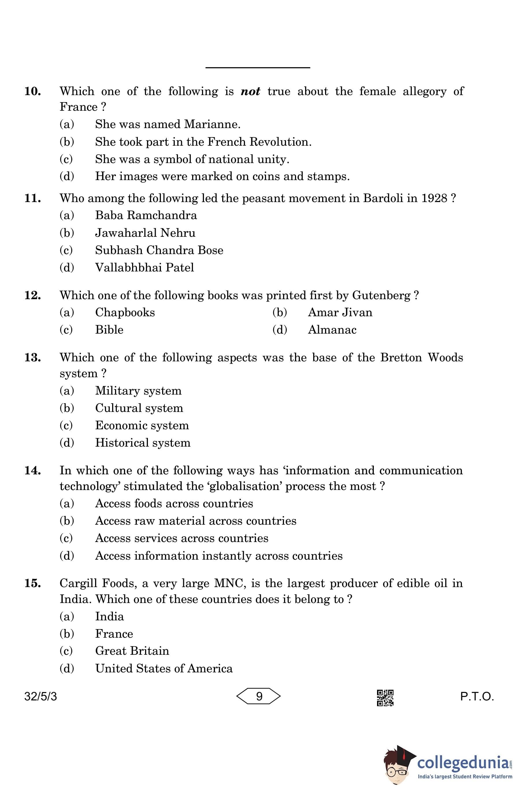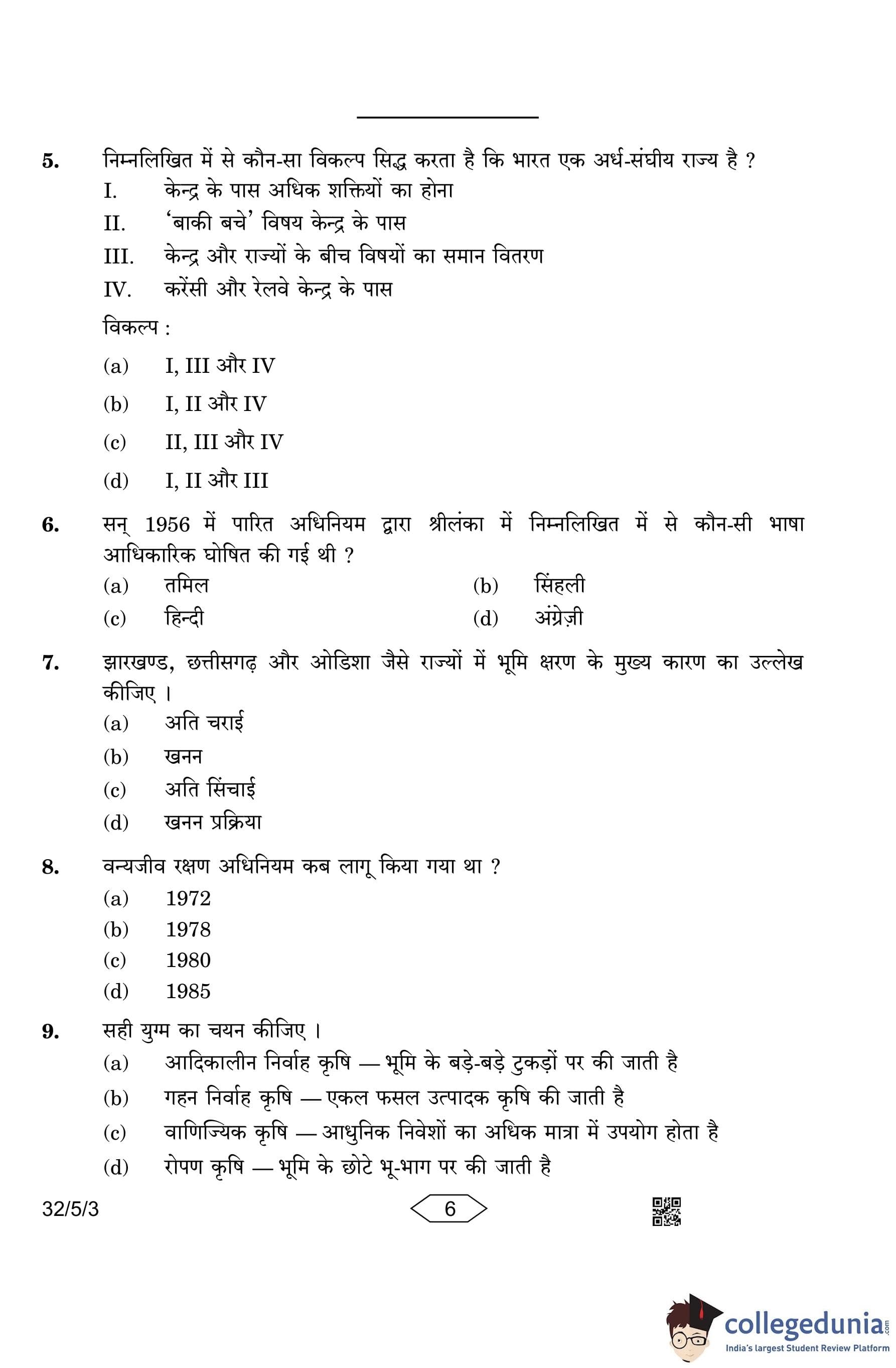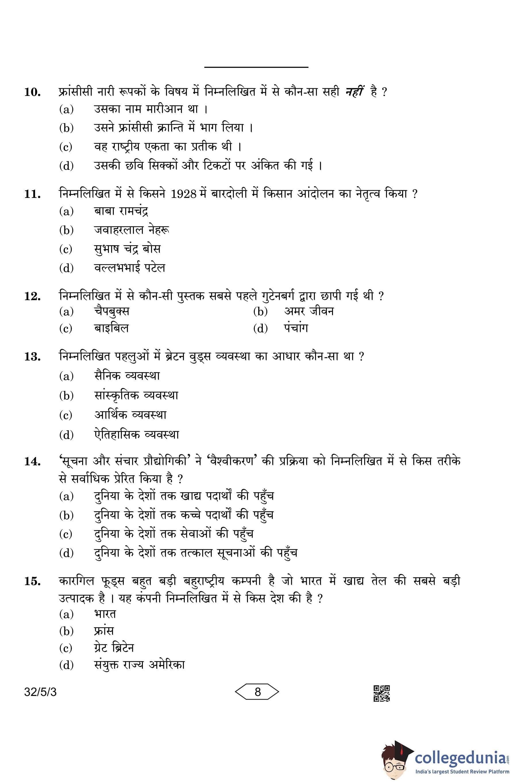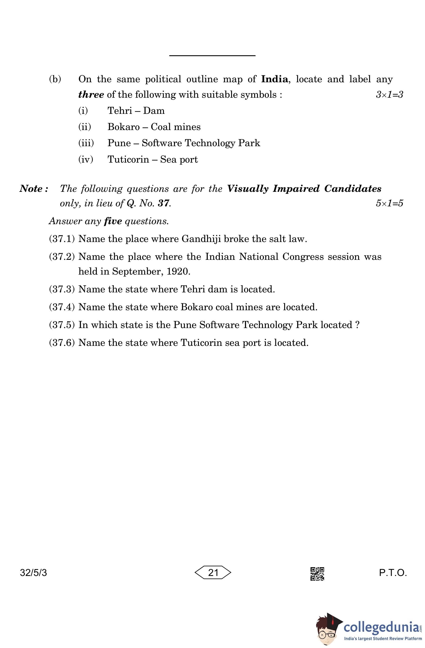 CBSE Class 10 Social Science Question Paper 2023 with Answer Key (Set 3- 32/5/3) is available for download here. The exam was conducted by the Central Board of Secondary Education on March 15, 2023 in the Morning Session 10:30 AM to 1:30 PM. The medium of paper was English & Hindi. According to initial student reaction, the CBSE Class 10 Social Science Paper was rated as Moderate in difficulty level. The question paper comprised a total of 37 questions divided among 6 sections.