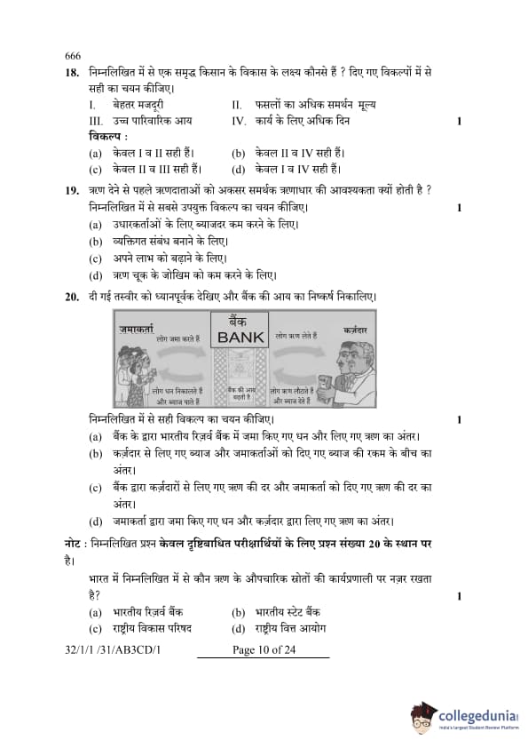 | 18. Which of the following are developmental goals of a prosperous farmer? 1. Better wages 2. Higher support prices for crops 3. Assured high family income 4. More days for work (a) Only I and II are correct (b) Only I and IV are correct (c) Only II and III are correct (d) Only I and IV are correct |