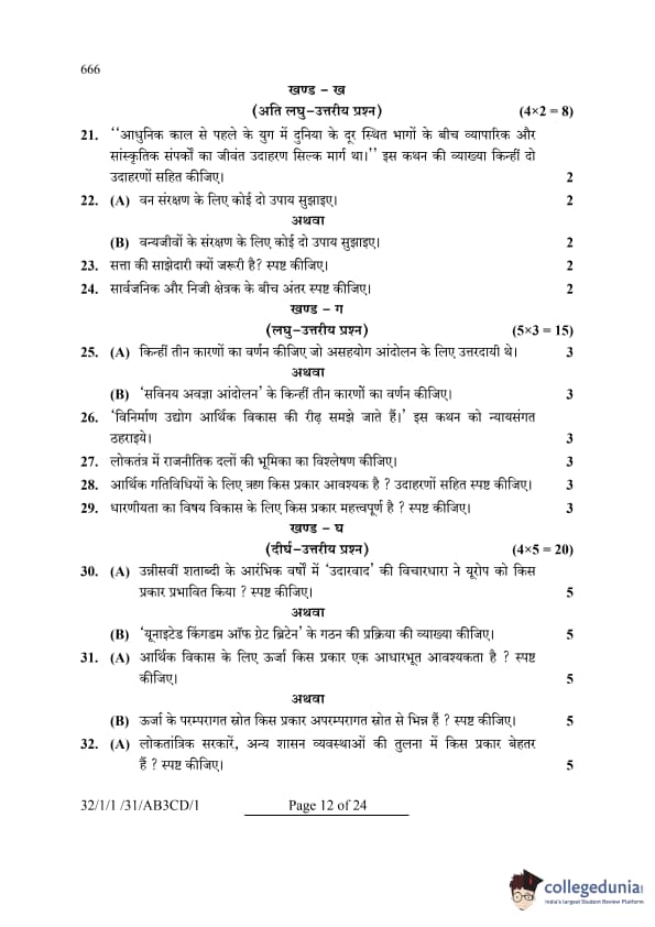CBSE Class 10 Social Science Question Paper 2024 (Set 1 - 32/1/1) with Answer Key