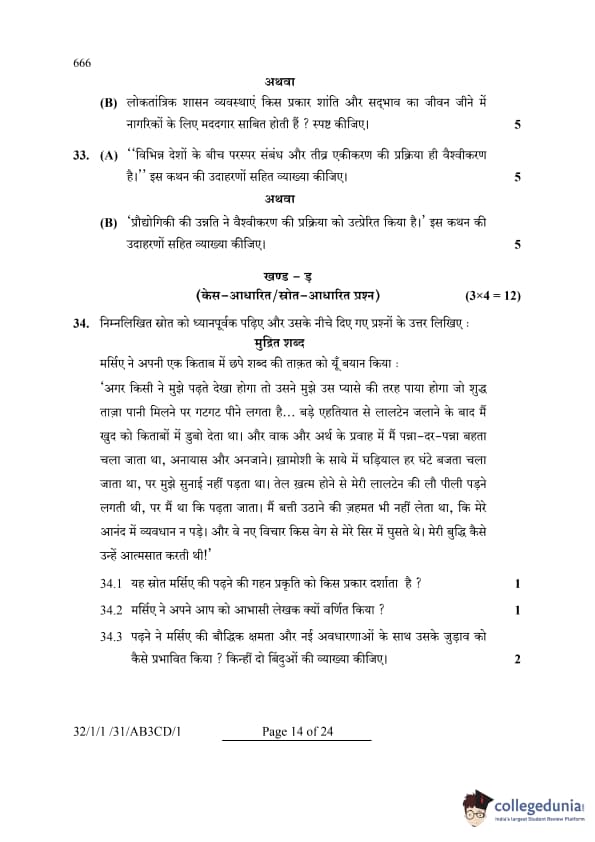 CBSE Social Science Question Paper (Set 1 – 32/1/1) 2024 Solution