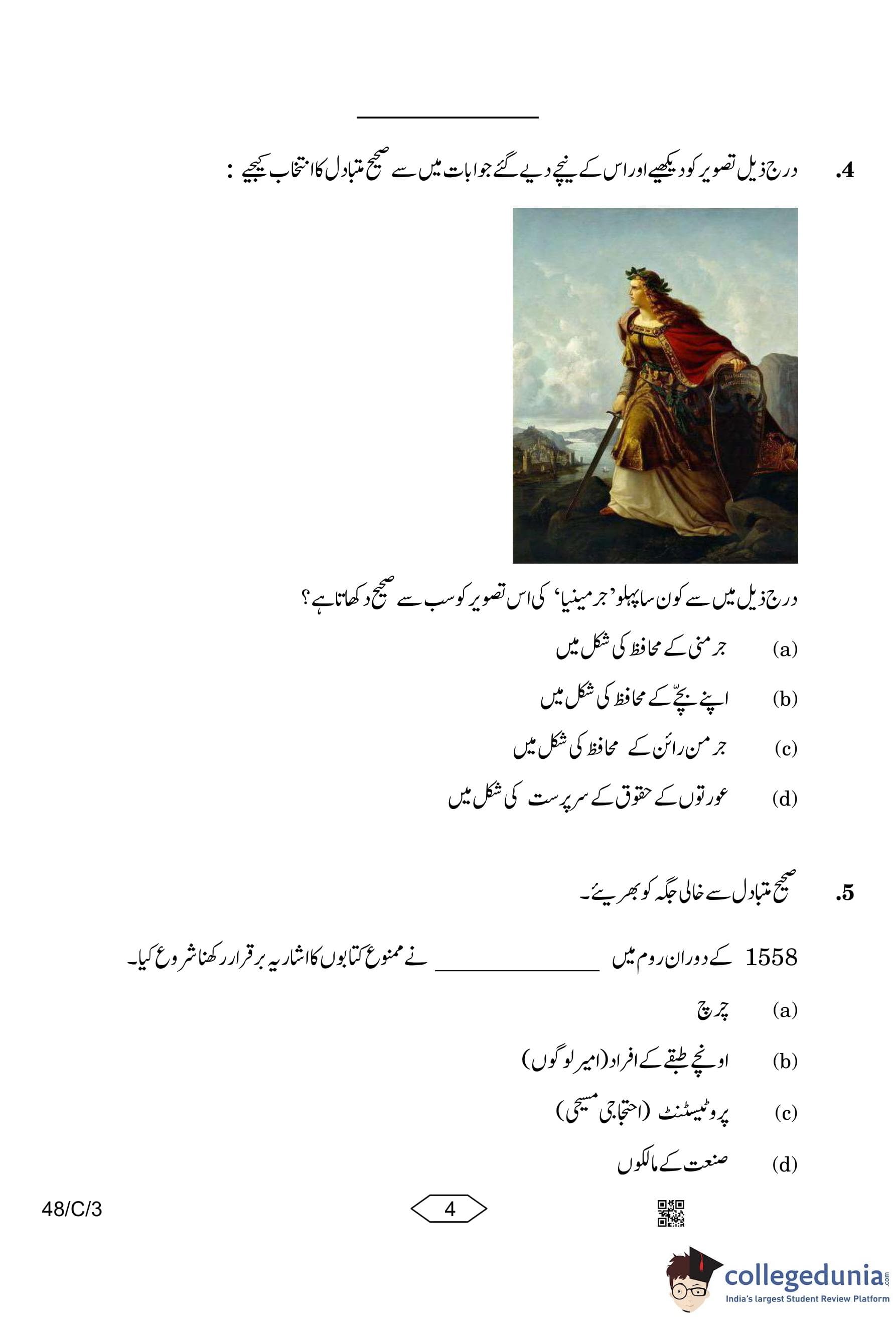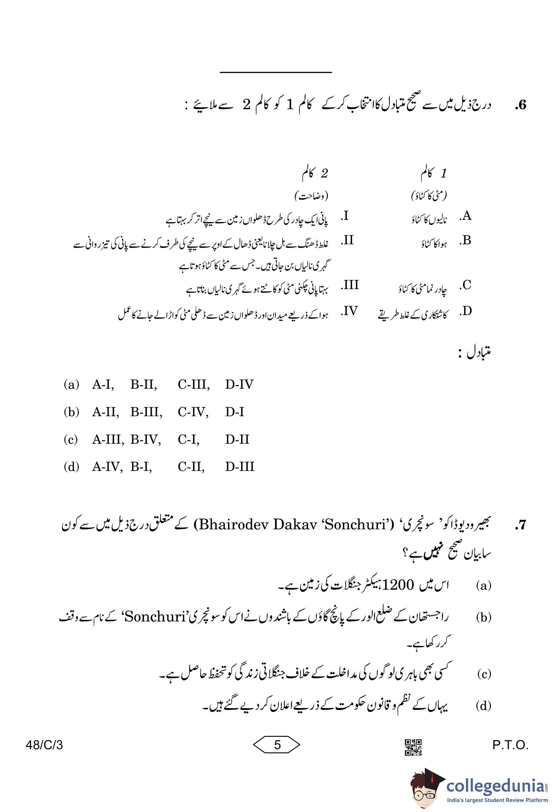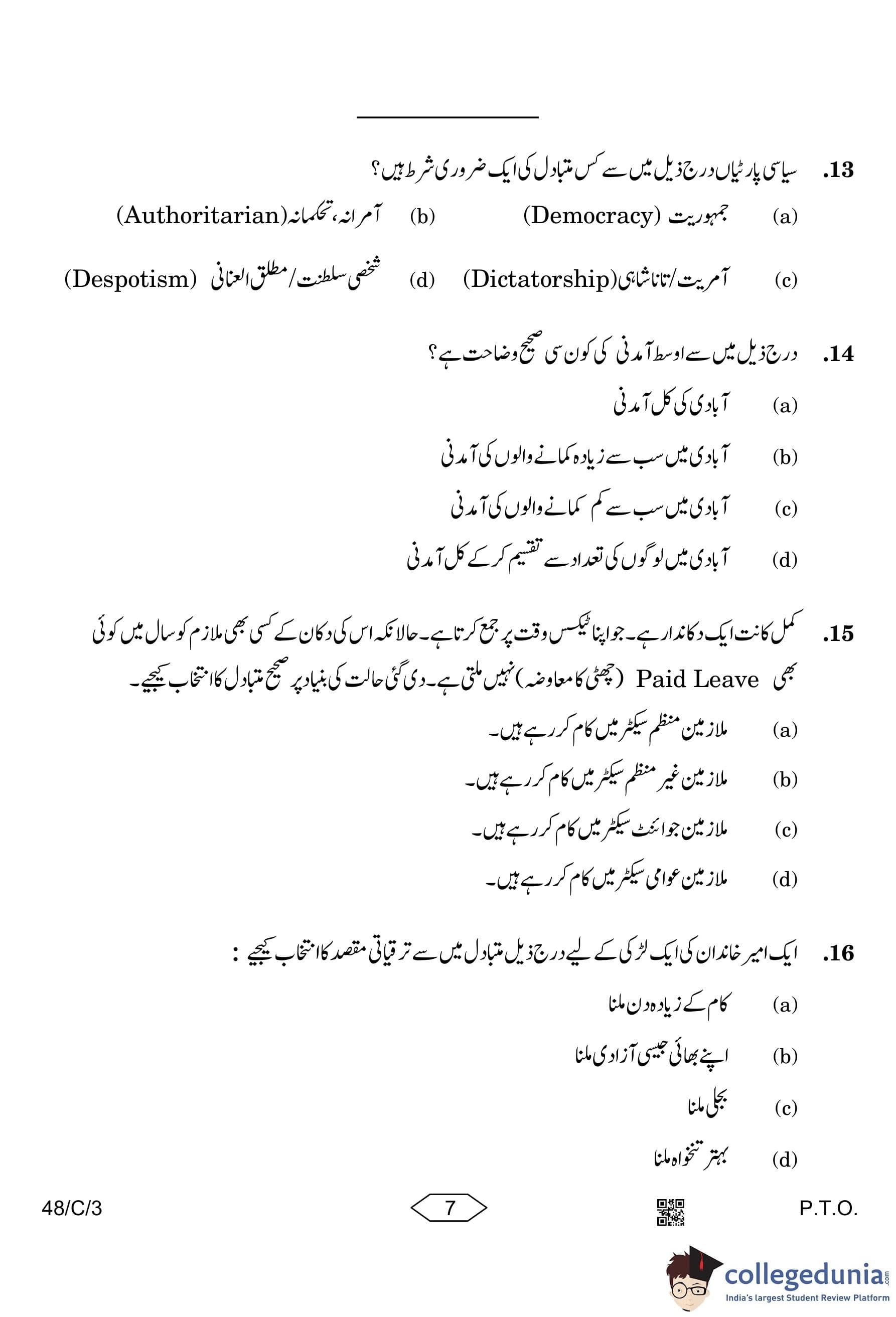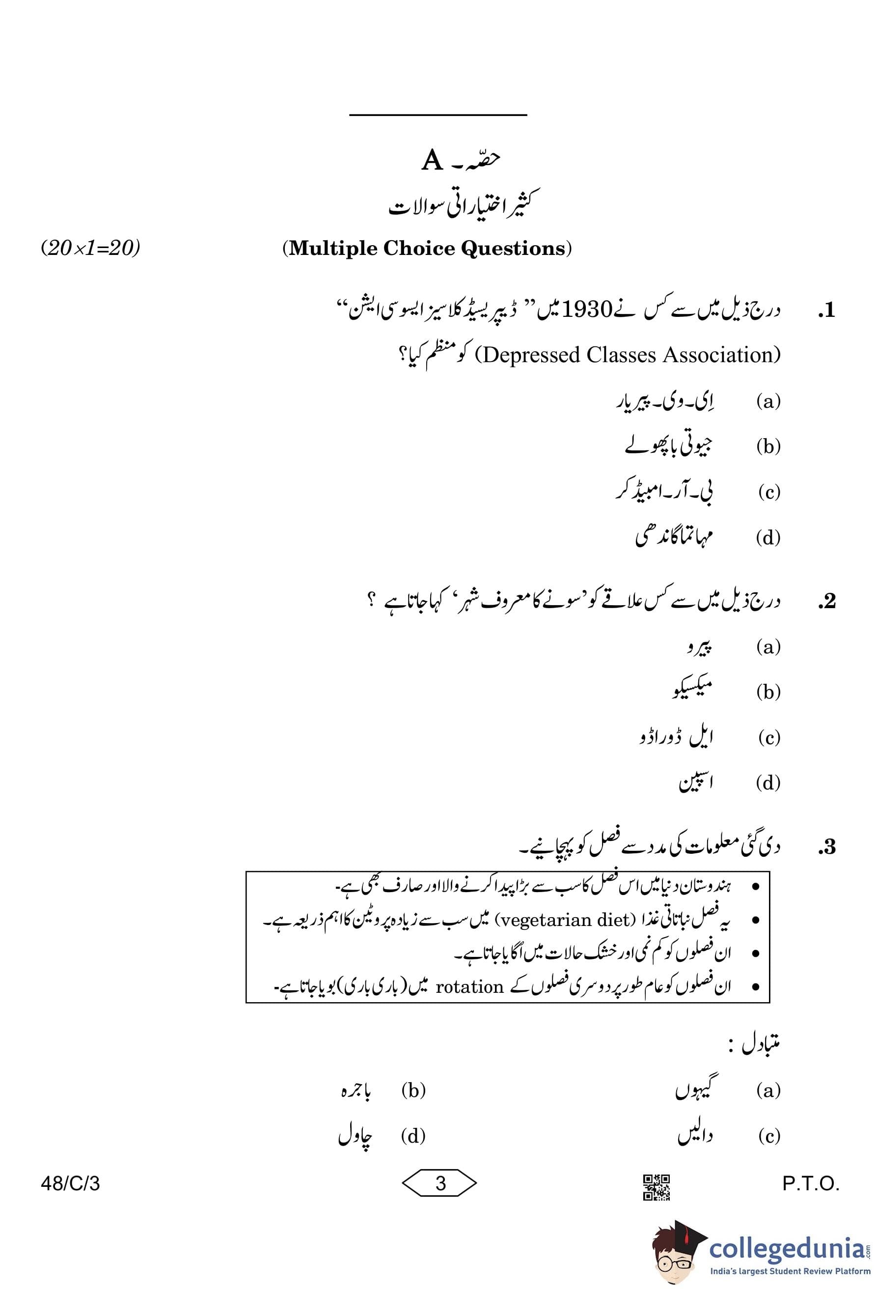 CBSE Class 10 Social Science (Urdu) (Set 3- 48/C/3) Compartment Question Paper 2023 with Answer Key