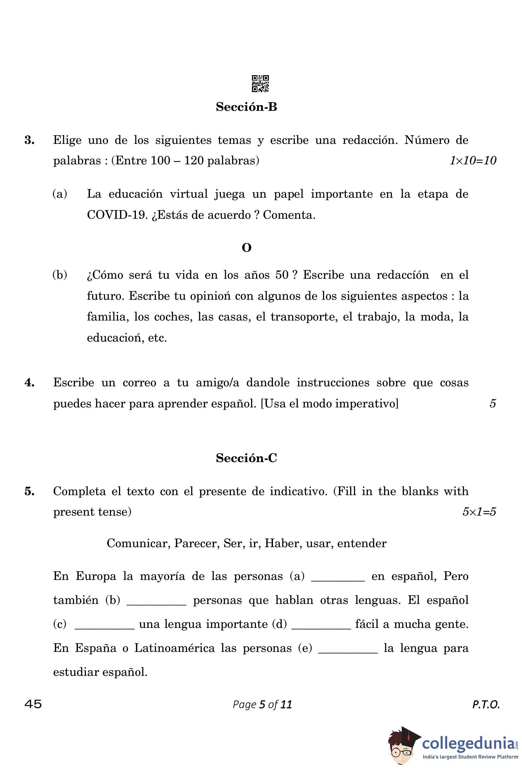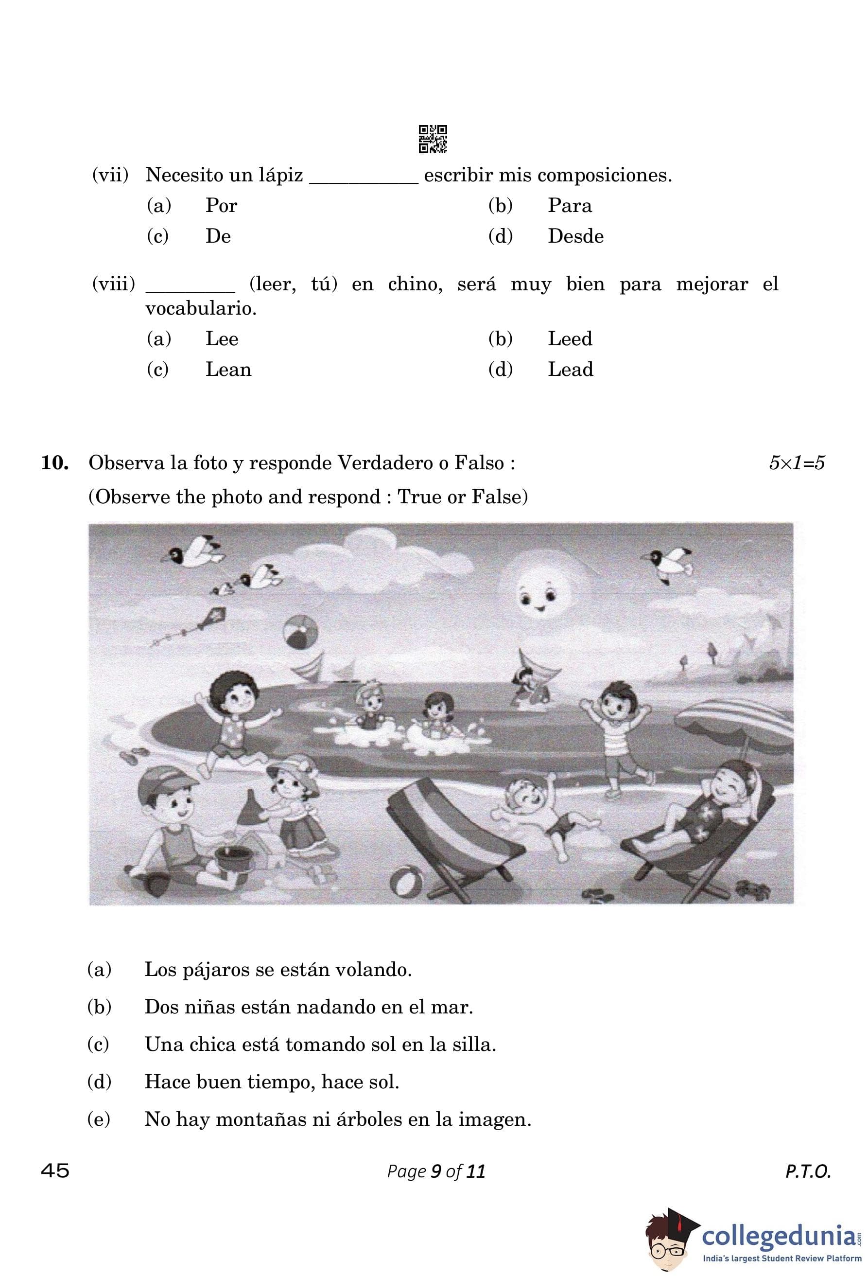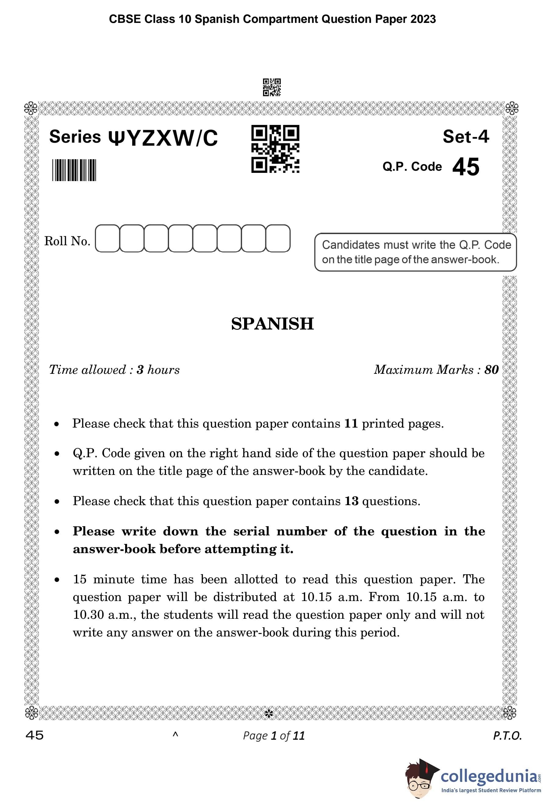 | CBSE Class 10 Spanish Question Paper 2023 PDF | CBSE Class 10 Spanish Answer Key 2023 PDF |