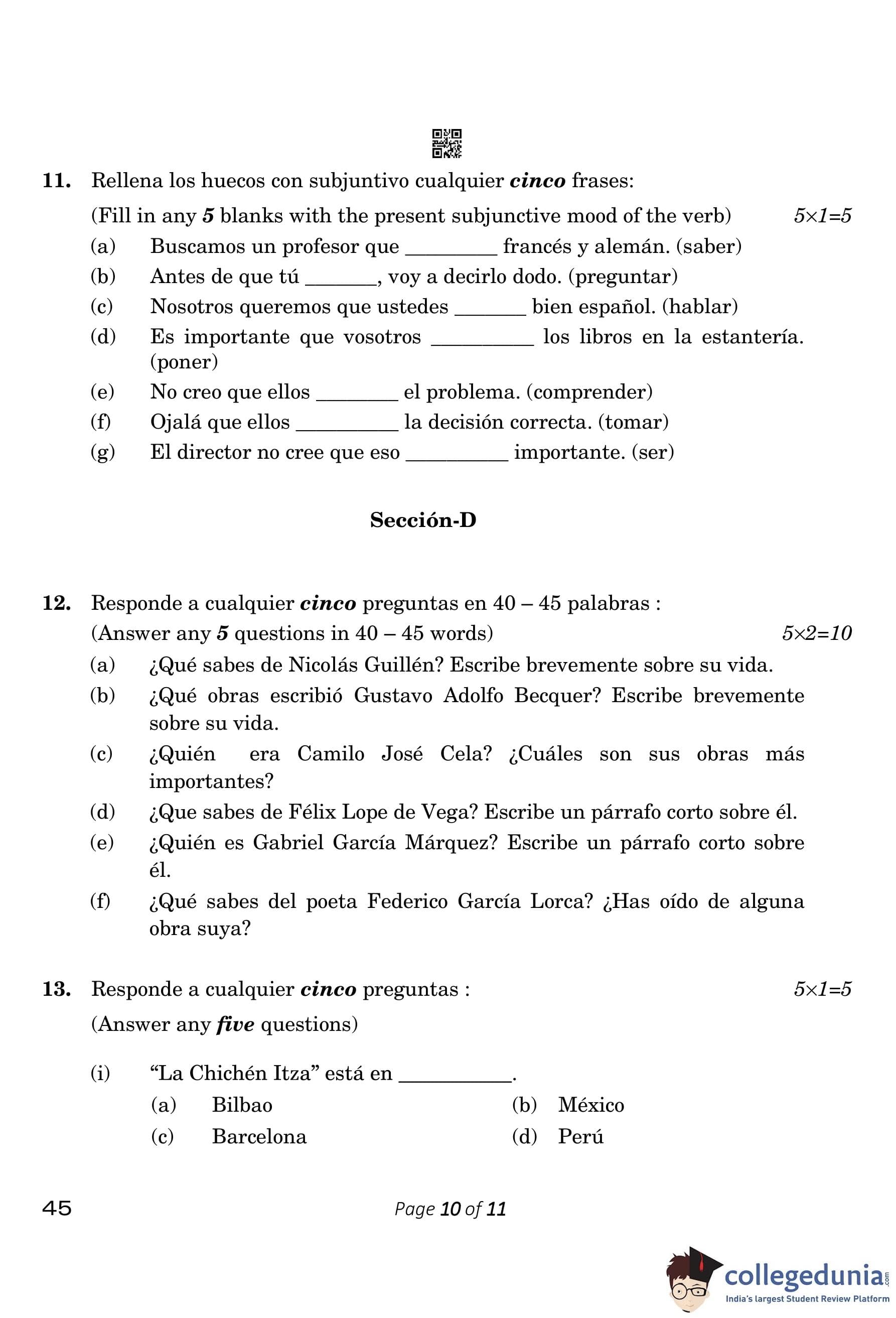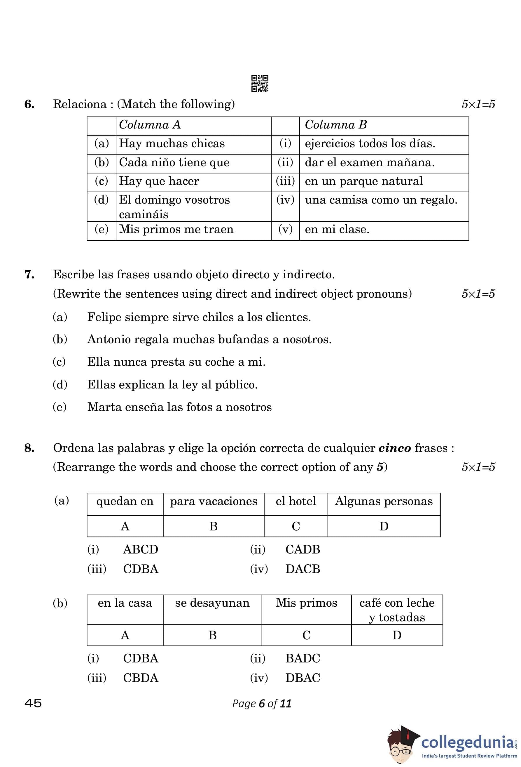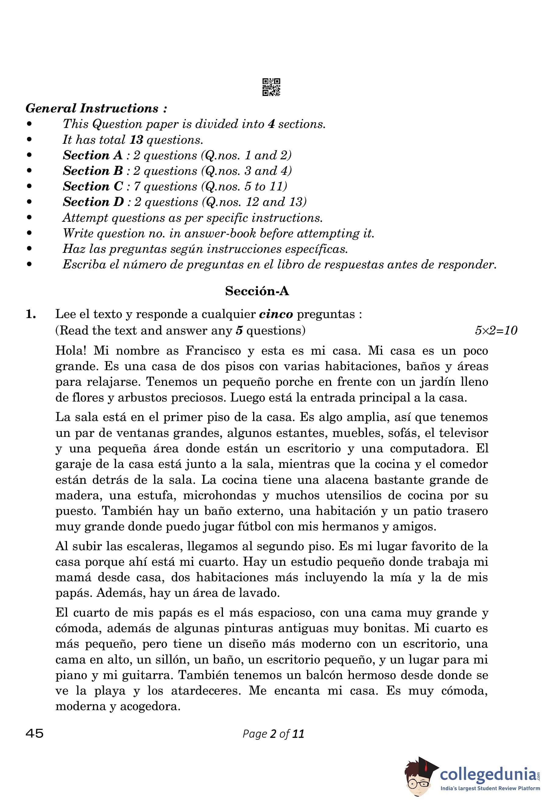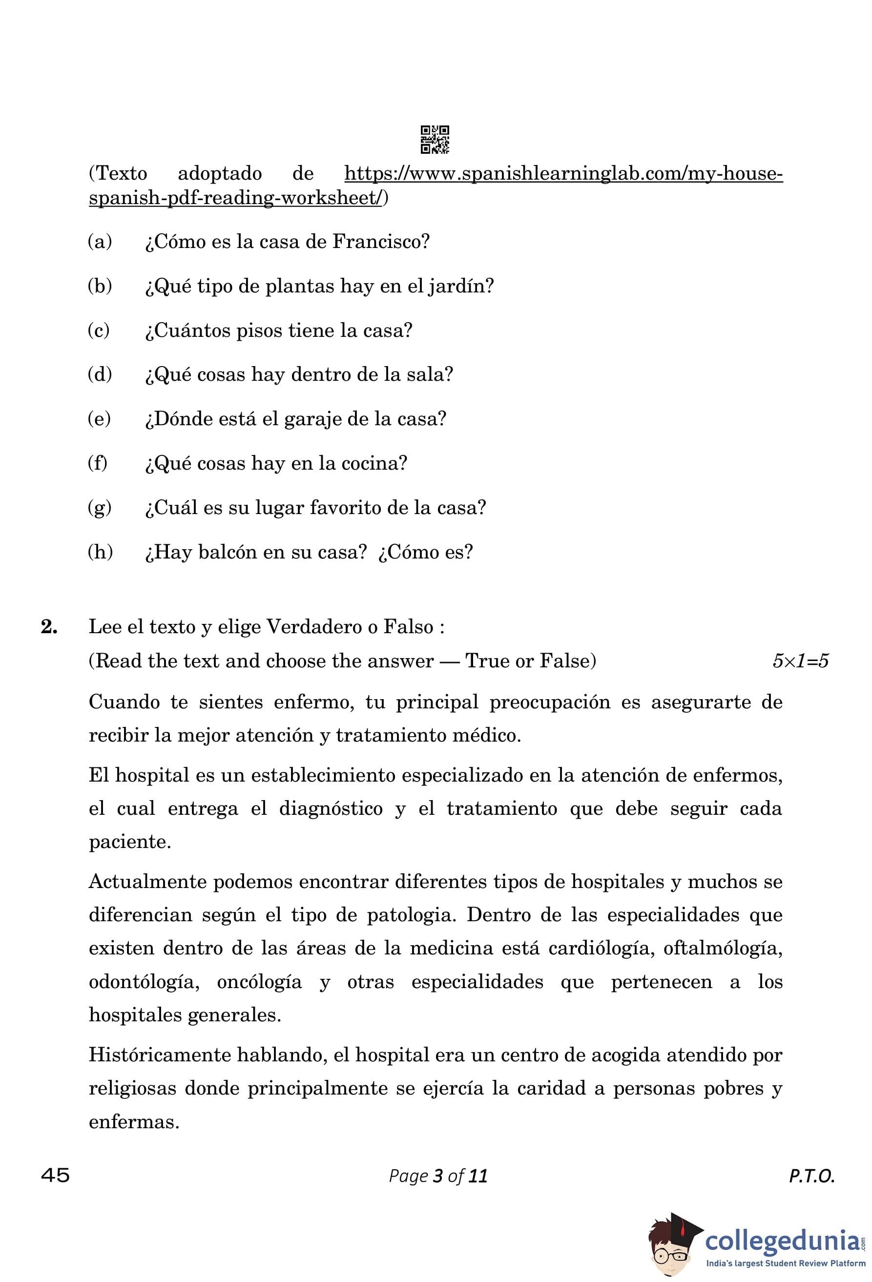 | CBSE Class 10 Spanish Question Paper 2023 PDF | CBSE Class 10 Spanish Answer Key 2023 PDF |