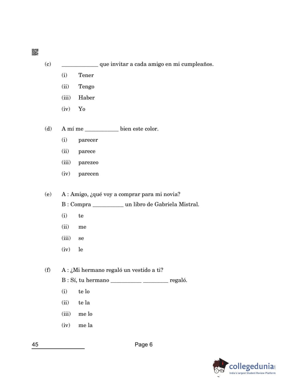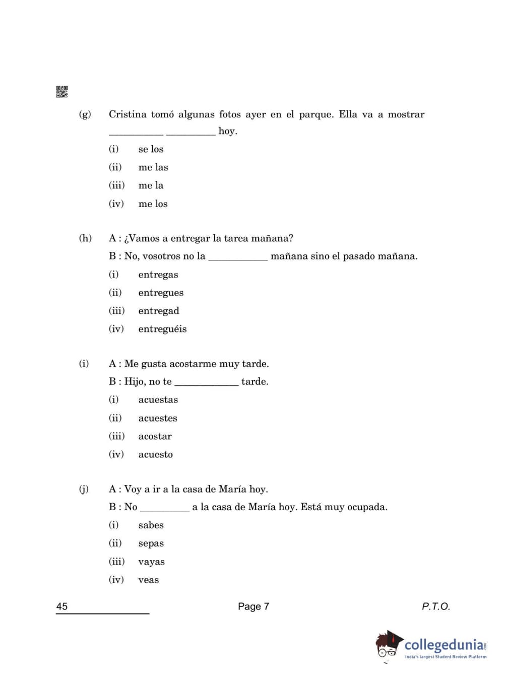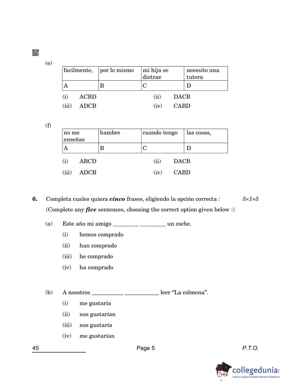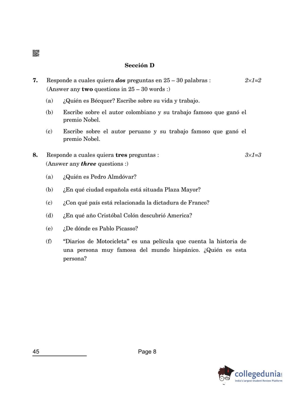 CBSE Class 10 Spanish Question Paper 2022 with Answer Key (May 17)