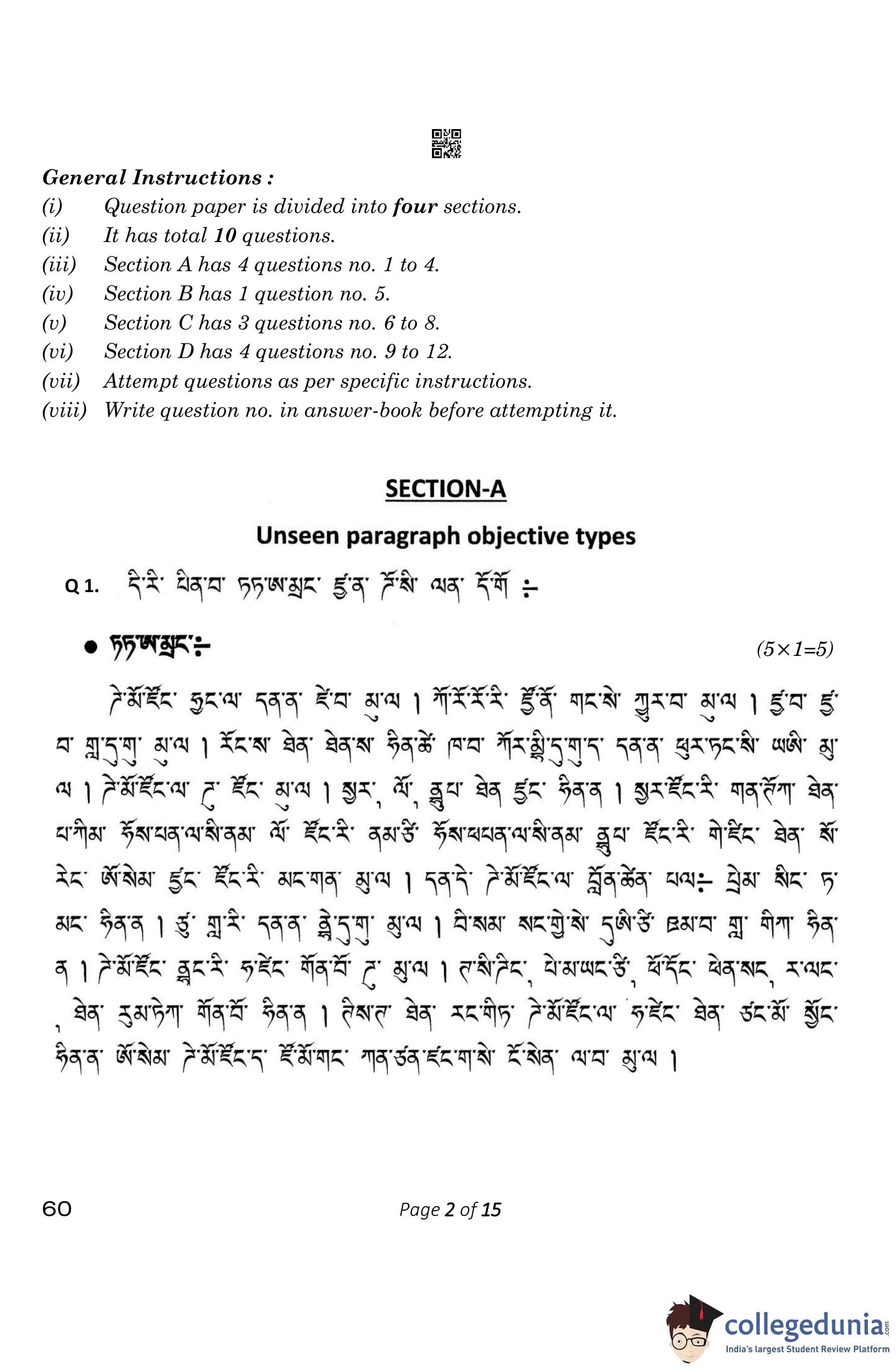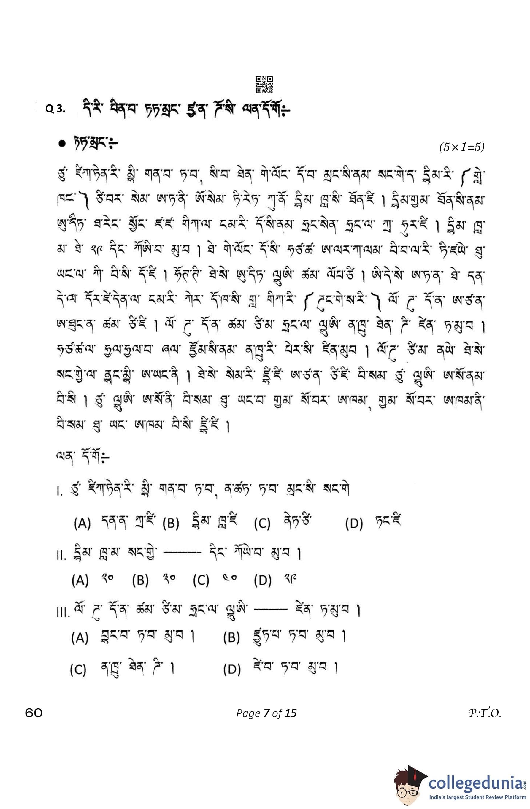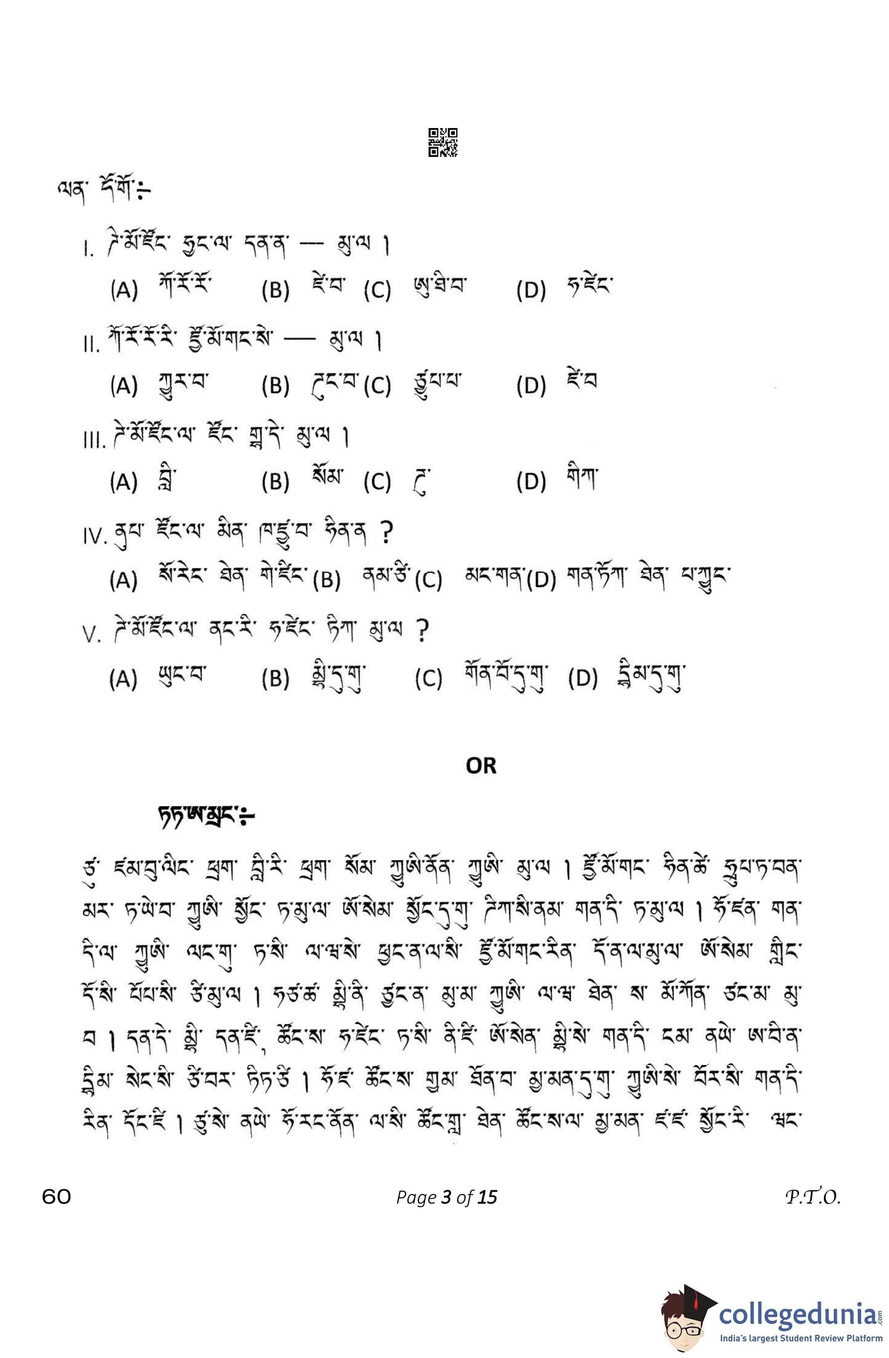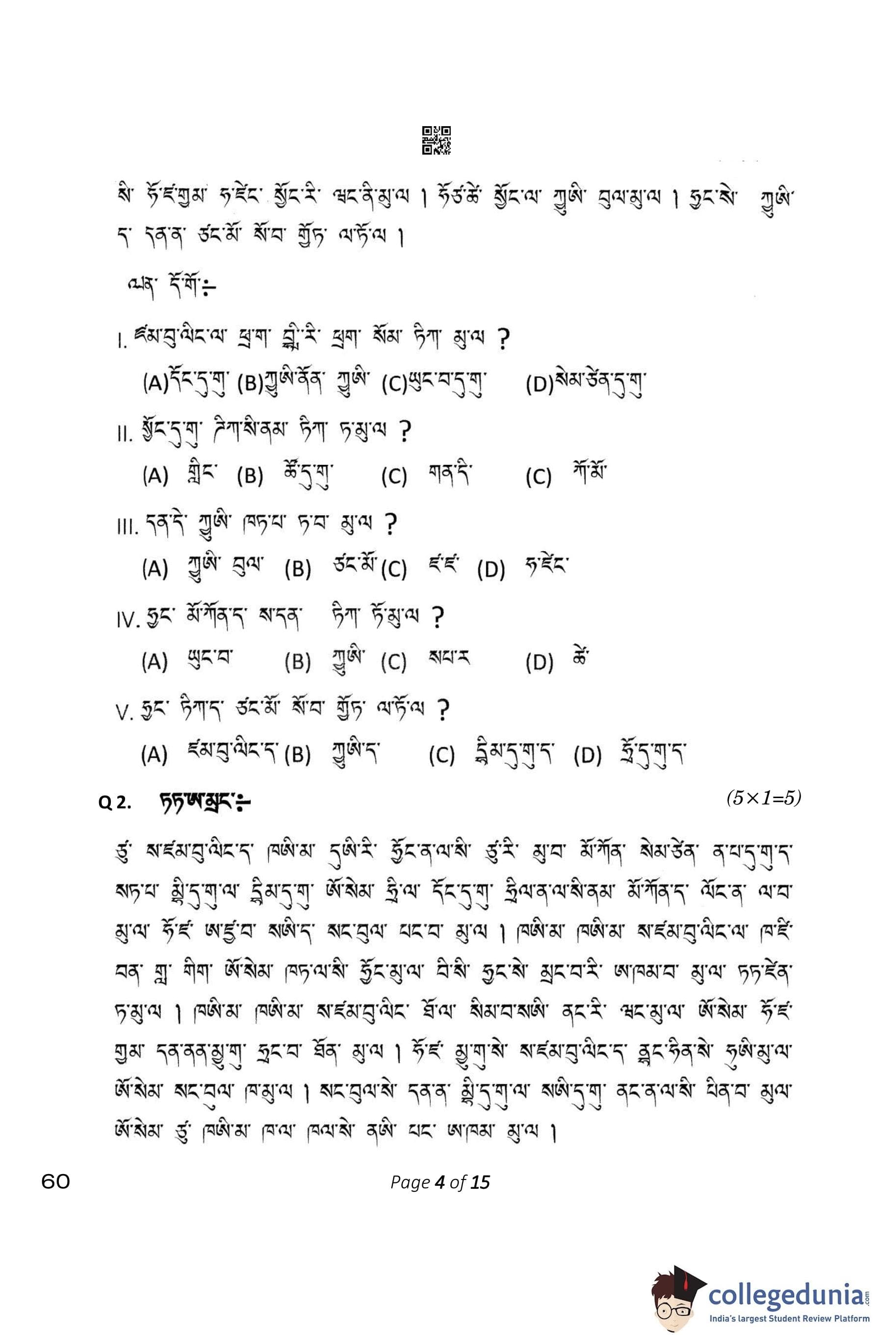 CBSE Class 10 Tamang Question Paper 2023 (Set 4- 60) with Answer Key pdf is available for download here. The exam was conducted by Central Board of Secondary Education on February 15, 2023. The question paper comprised a total of 12 questions divided among 4 sections.