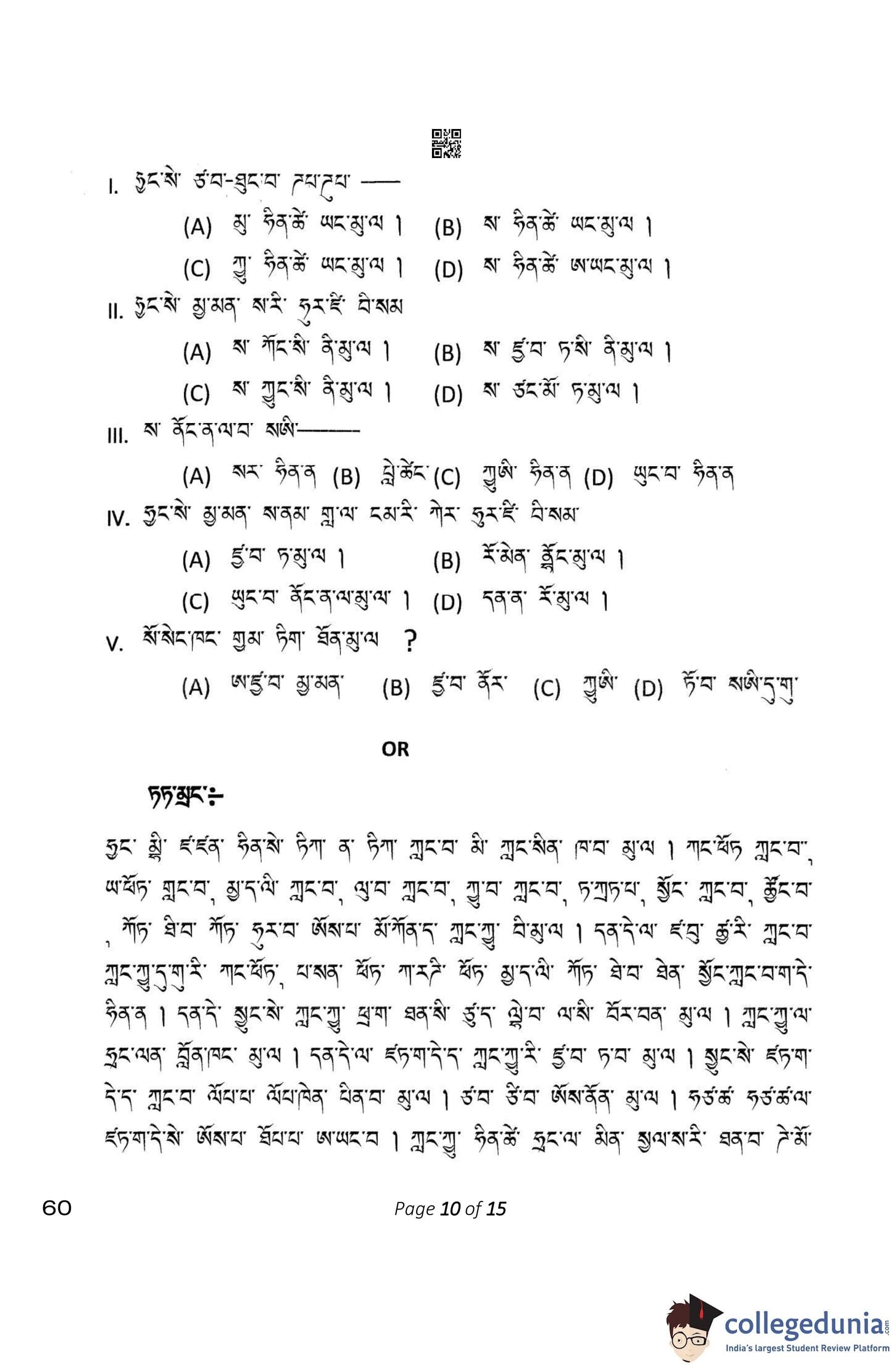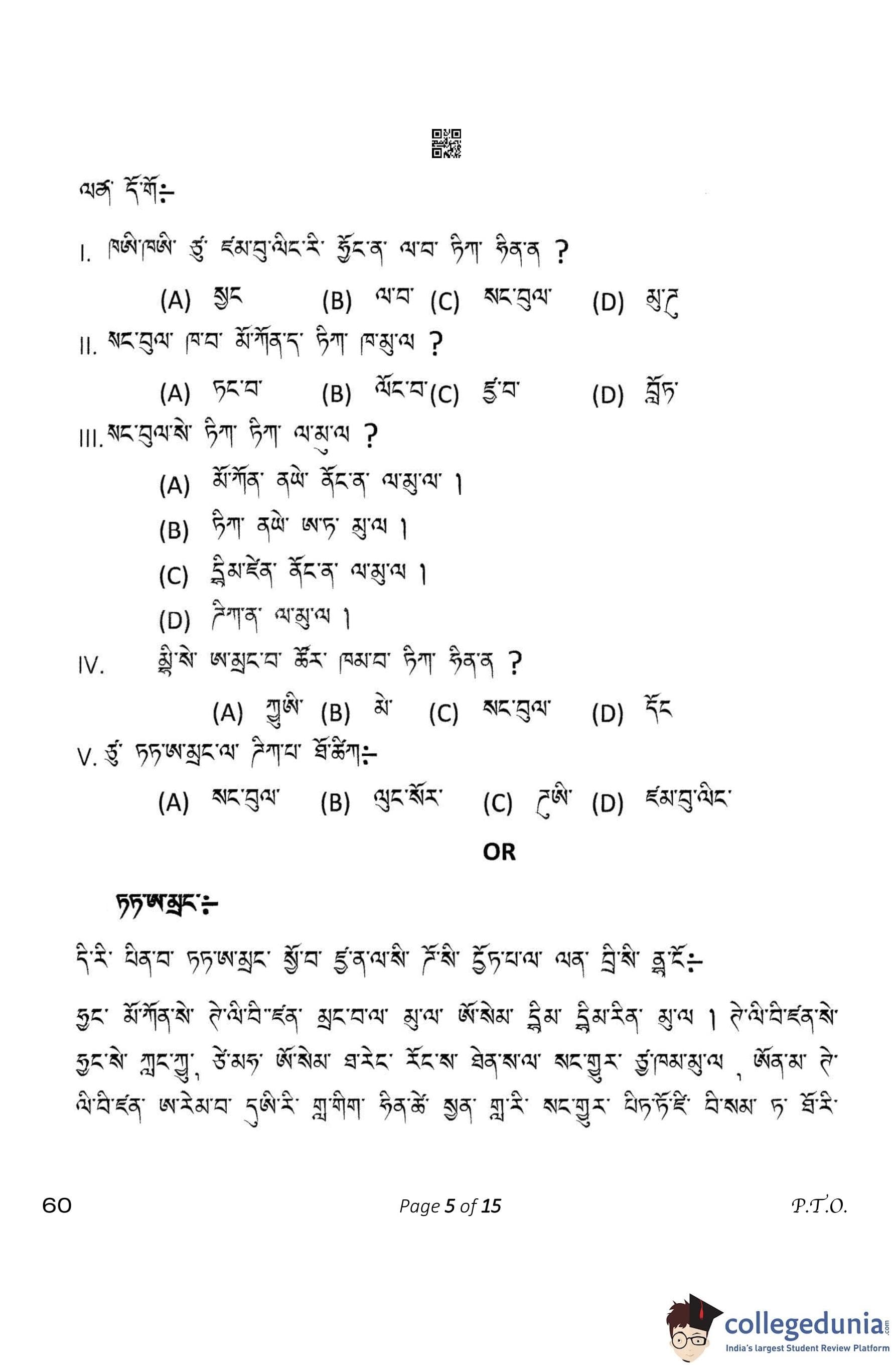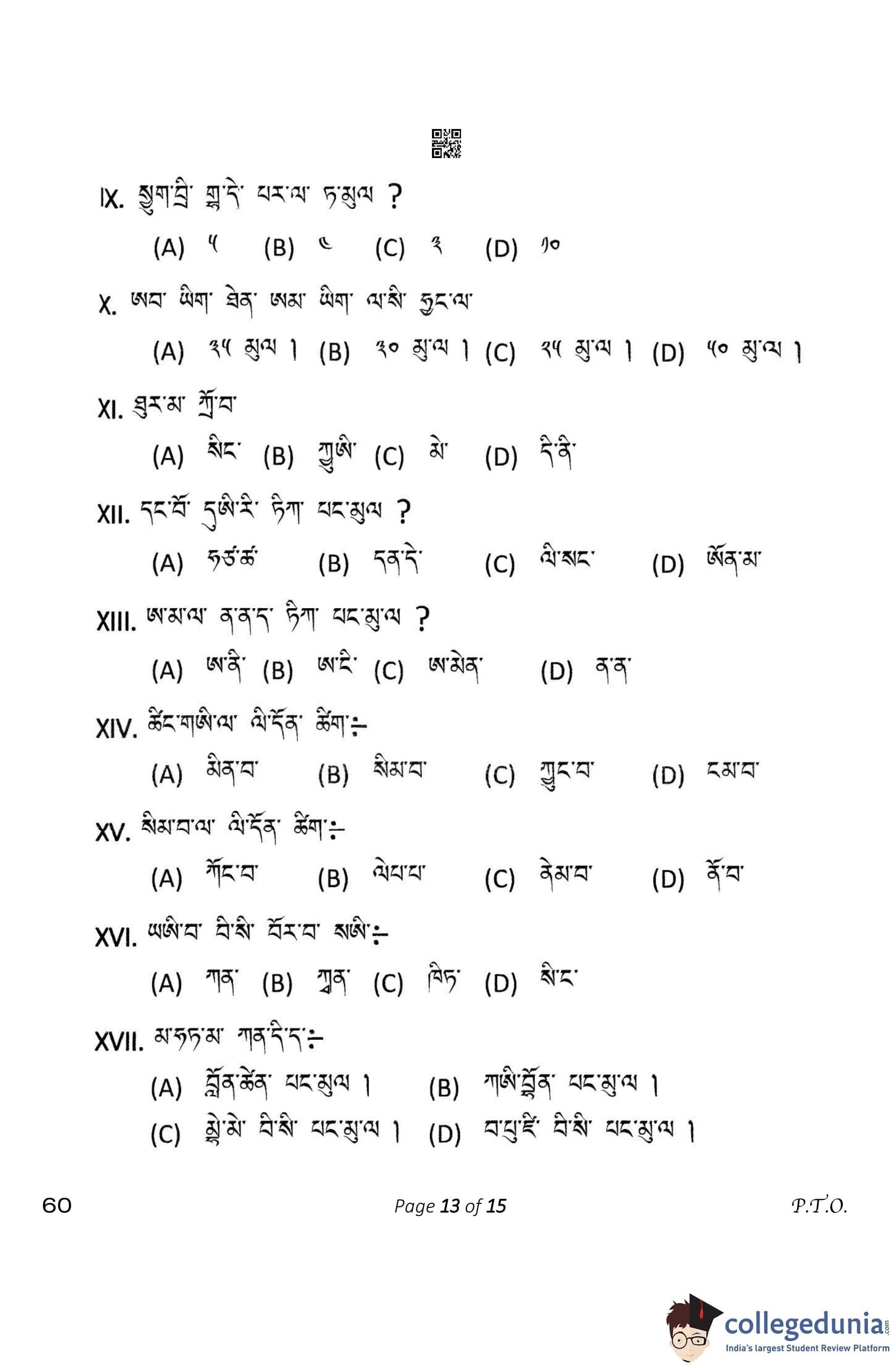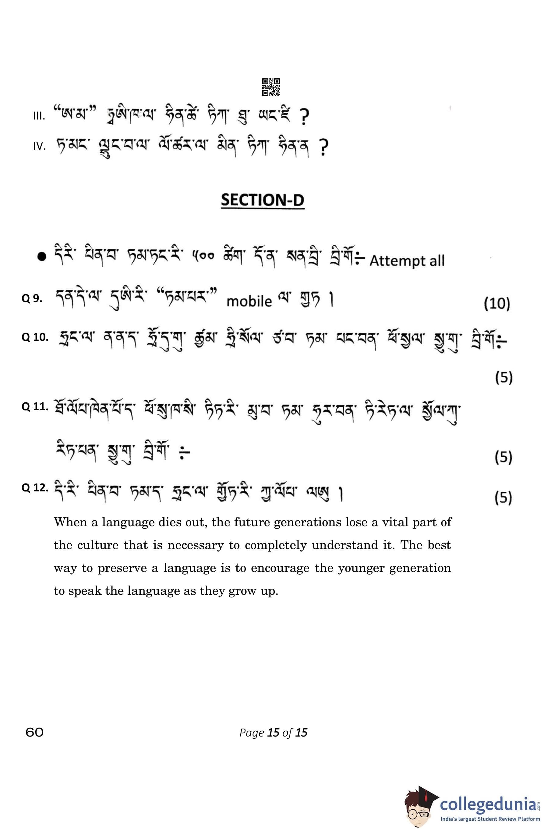 CBSE Class 10 Tamang Question Paper 2023 (Set 4- 60) with Answer Key pdf is available for download here. The exam was conducted by Central Board of Secondary Education on February 15, 2023. The question paper comprised a total of 12 questions divided among 4 sections.