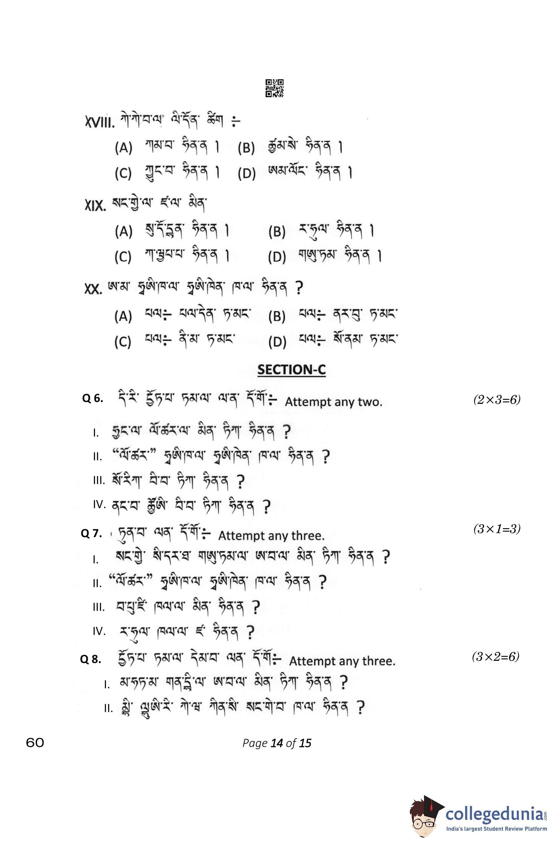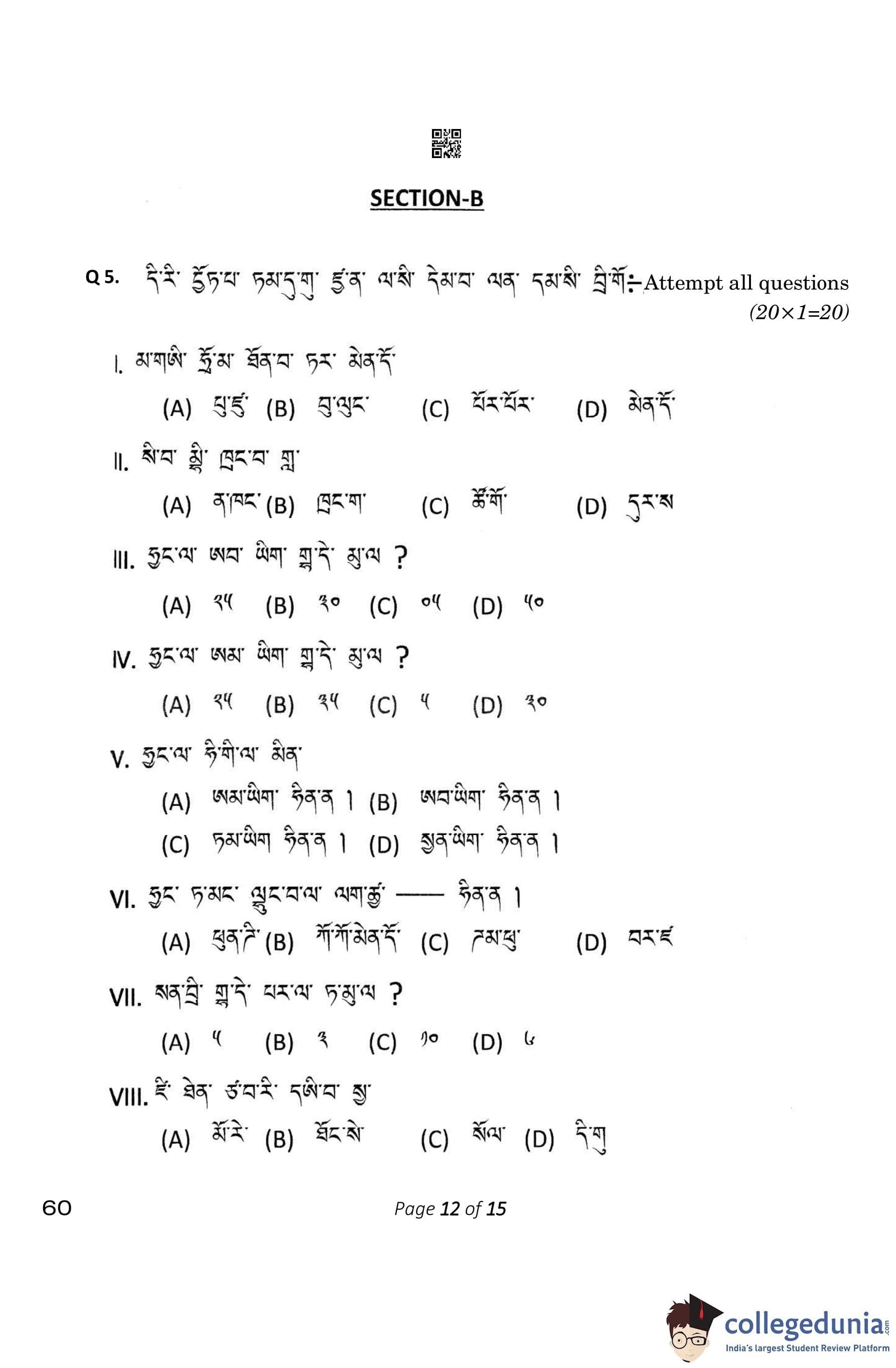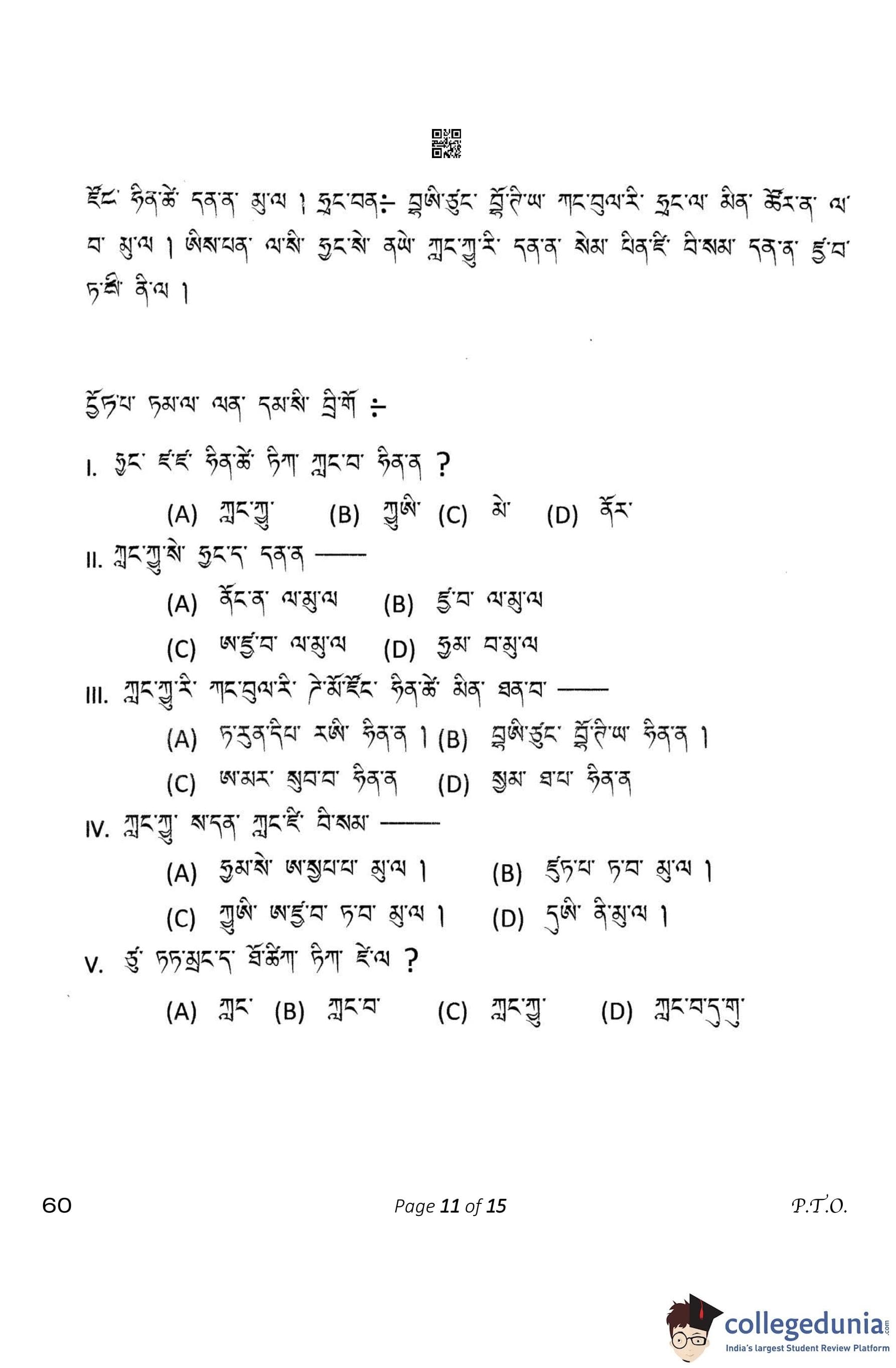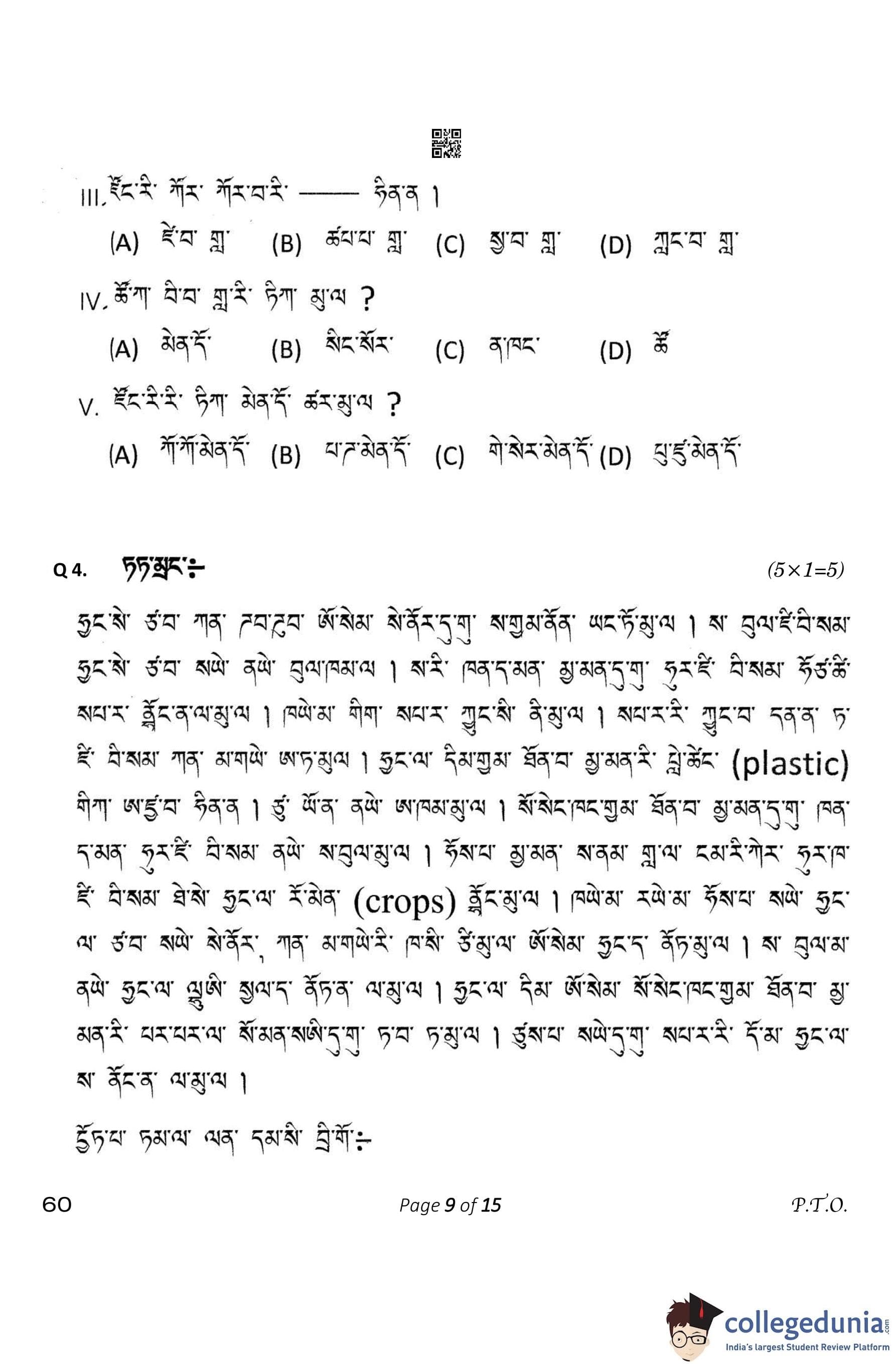 CBSE Class 10 Tamang Question Paper 2023 (Set 4- 60) with Answer Key pdf is available for download here. The exam was conducted by Central Board of Secondary Education on February 15, 2023. The question paper comprised a total of 12 questions divided among 4 sections.