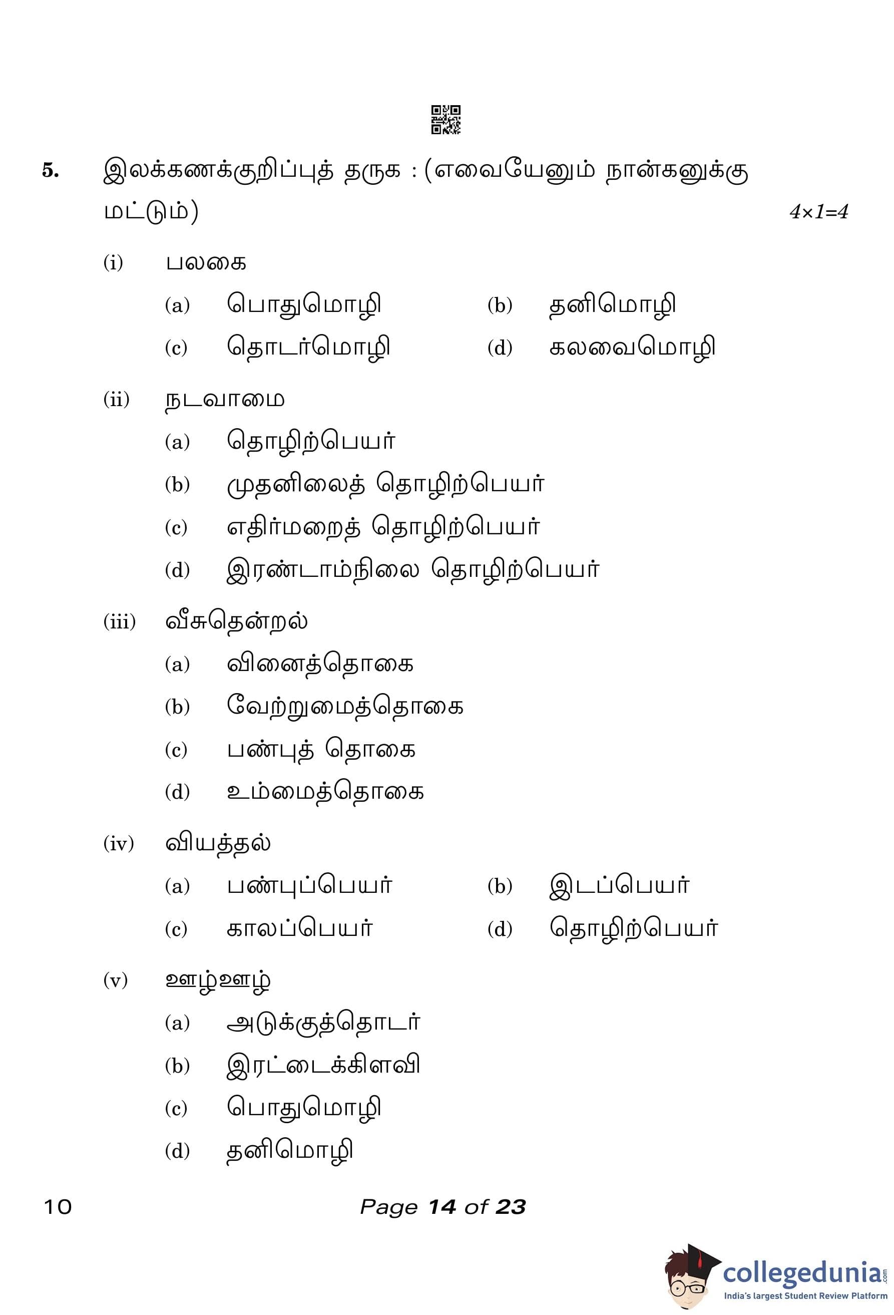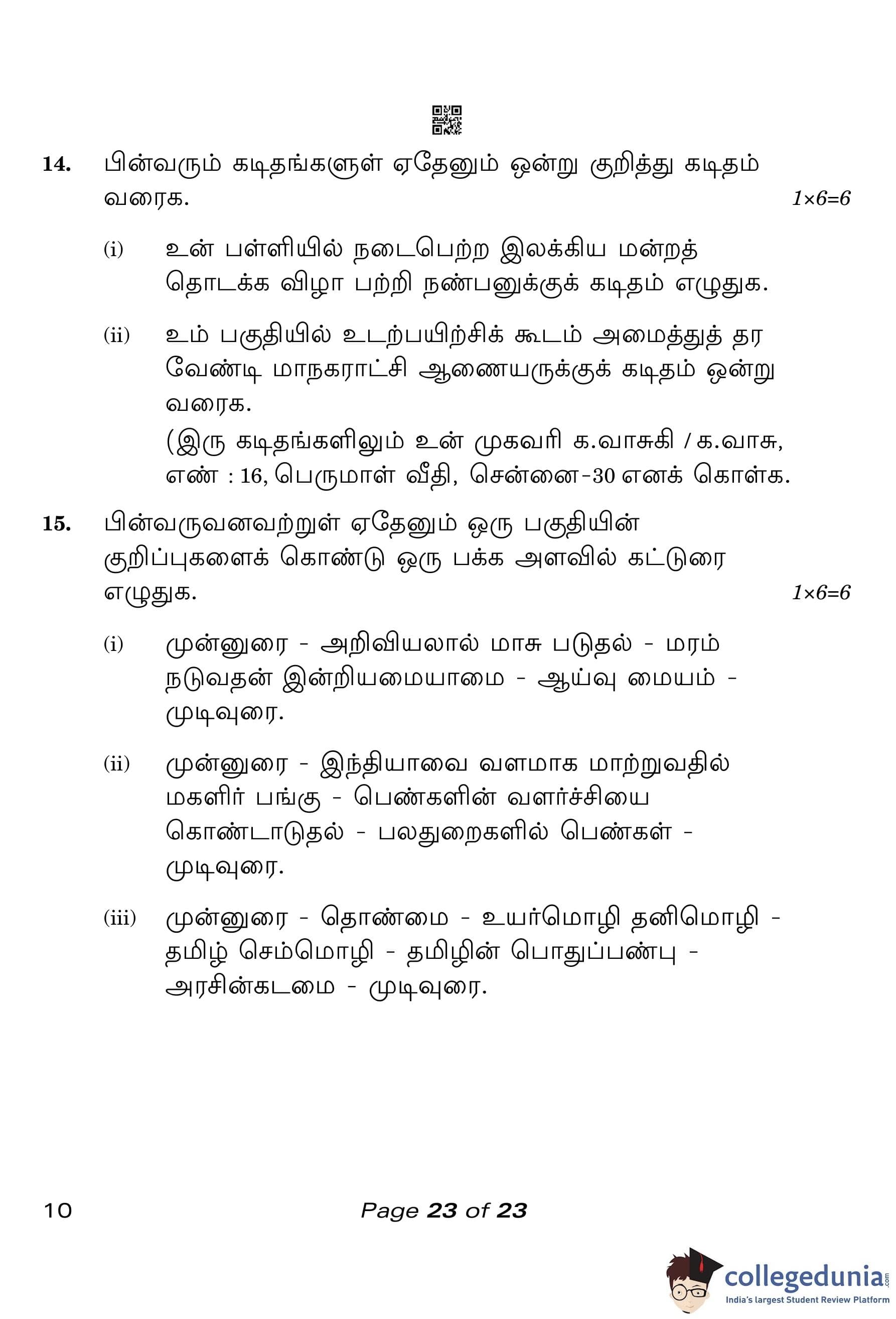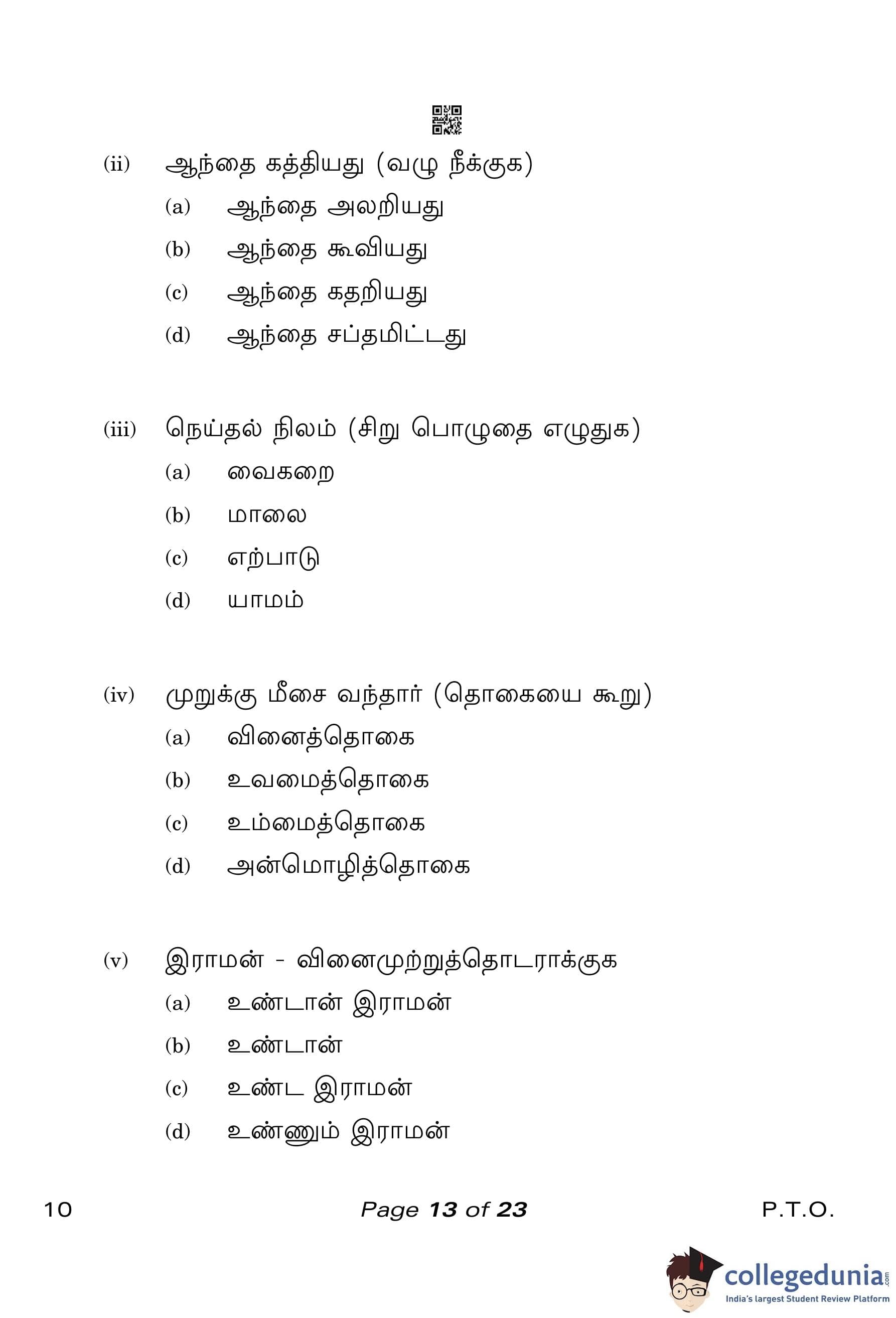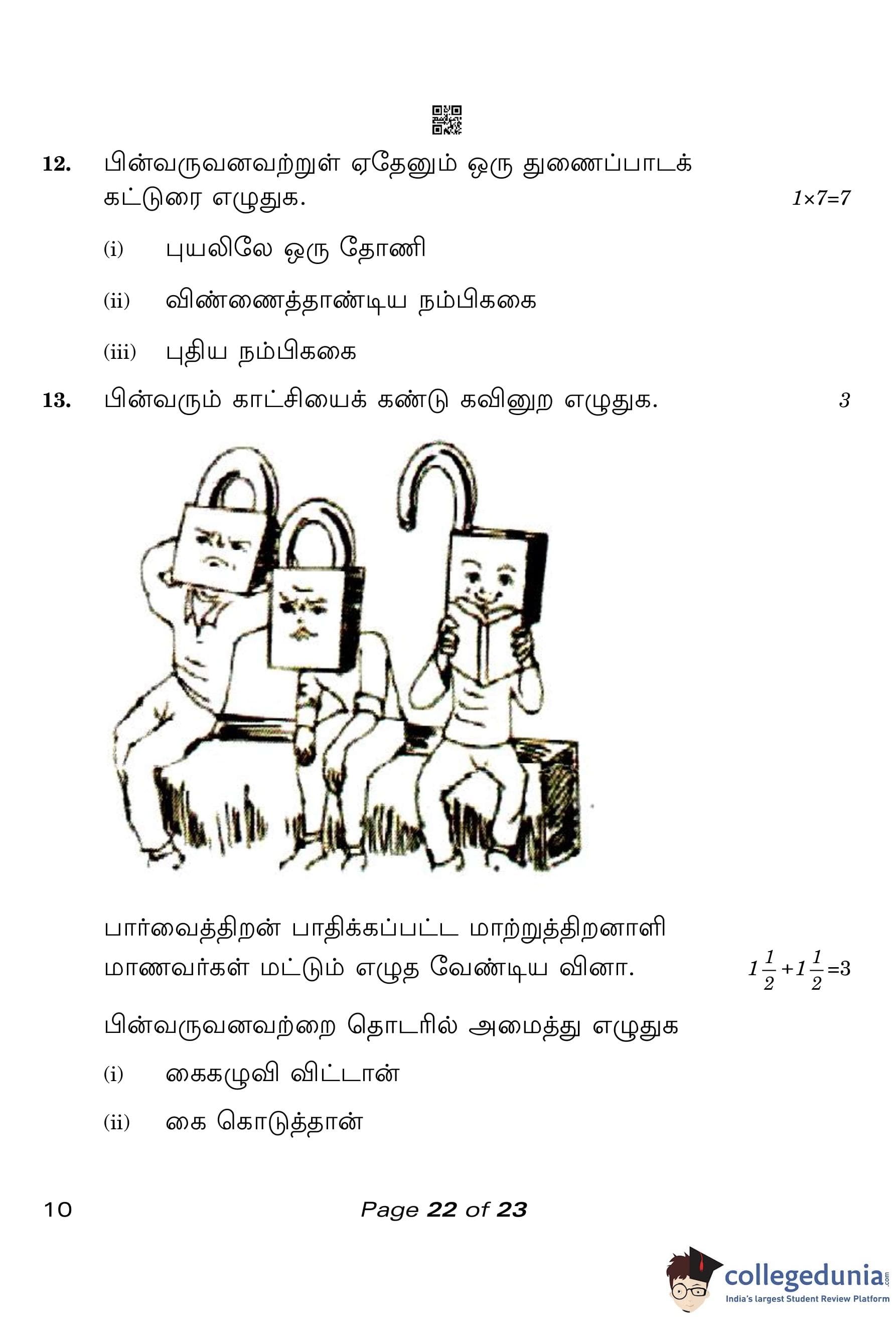 CBSE Class 10 Tamil Compartment Question Paper 2023 with Answer Key