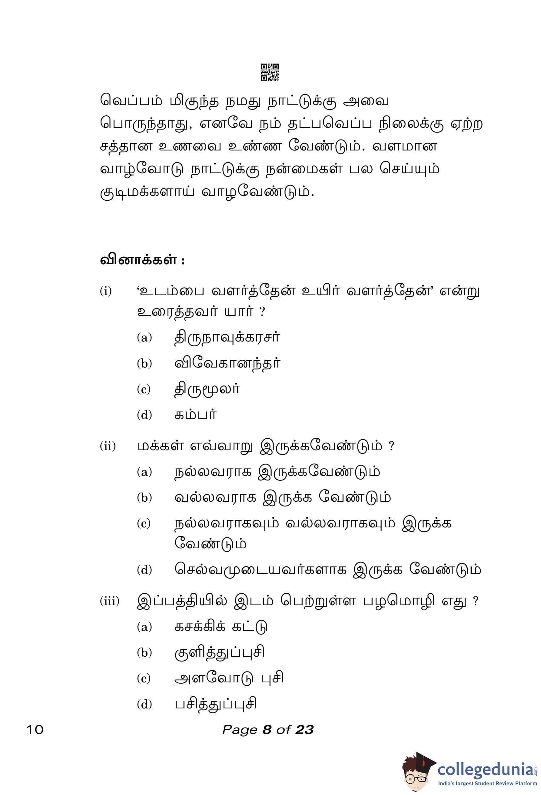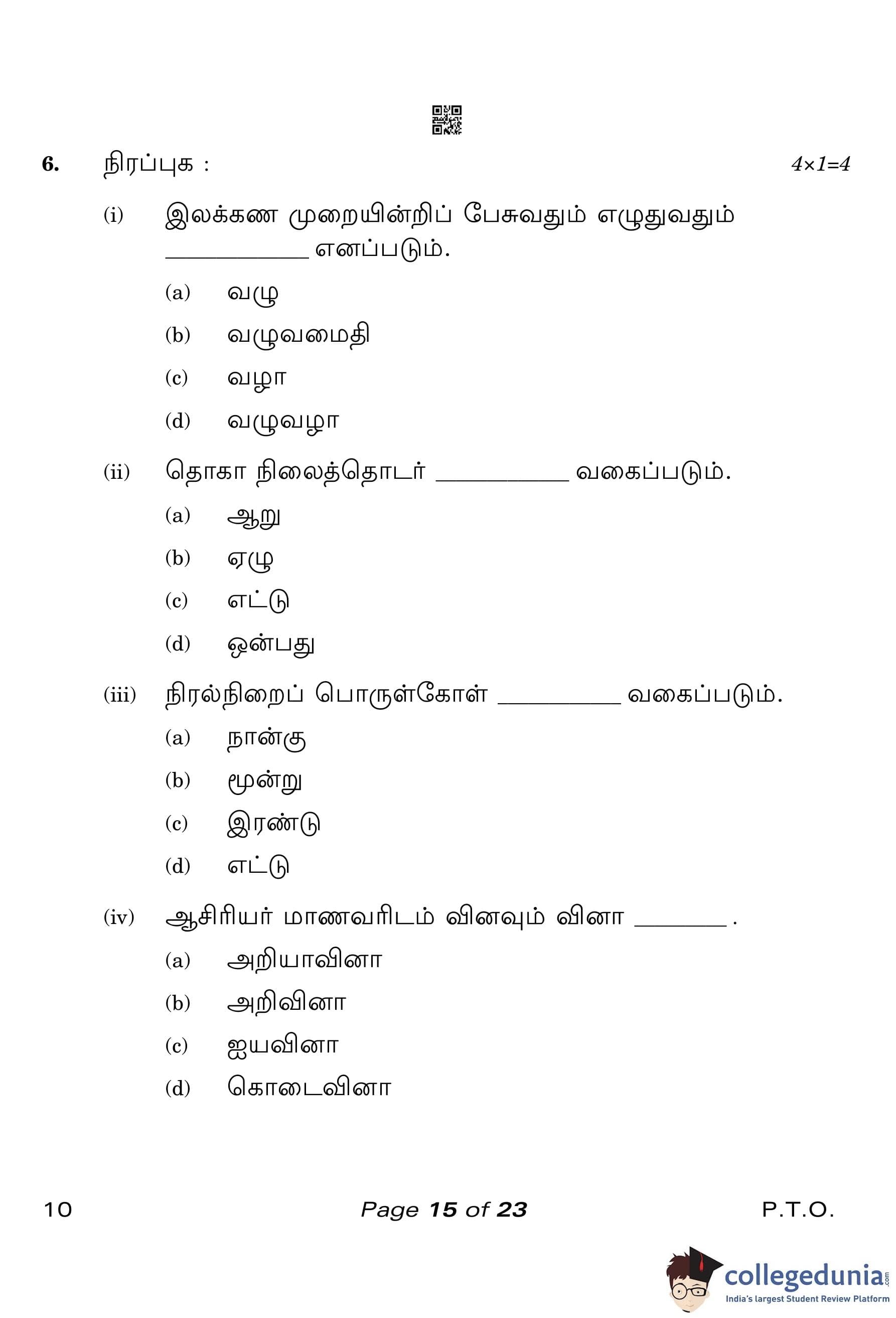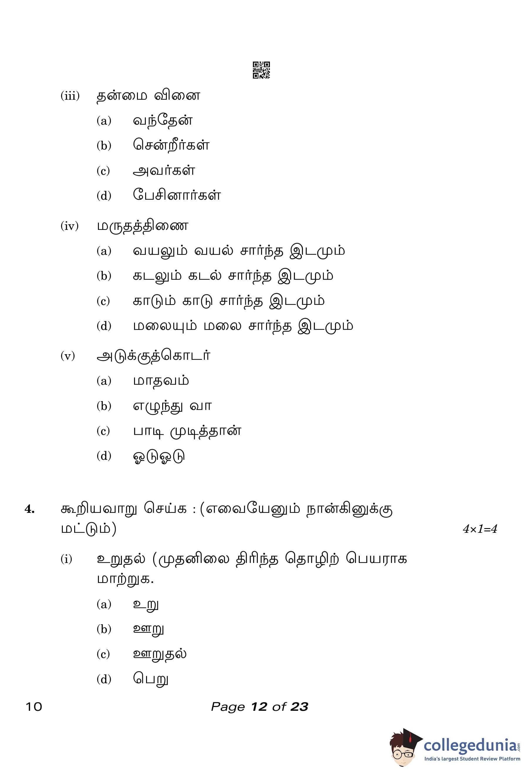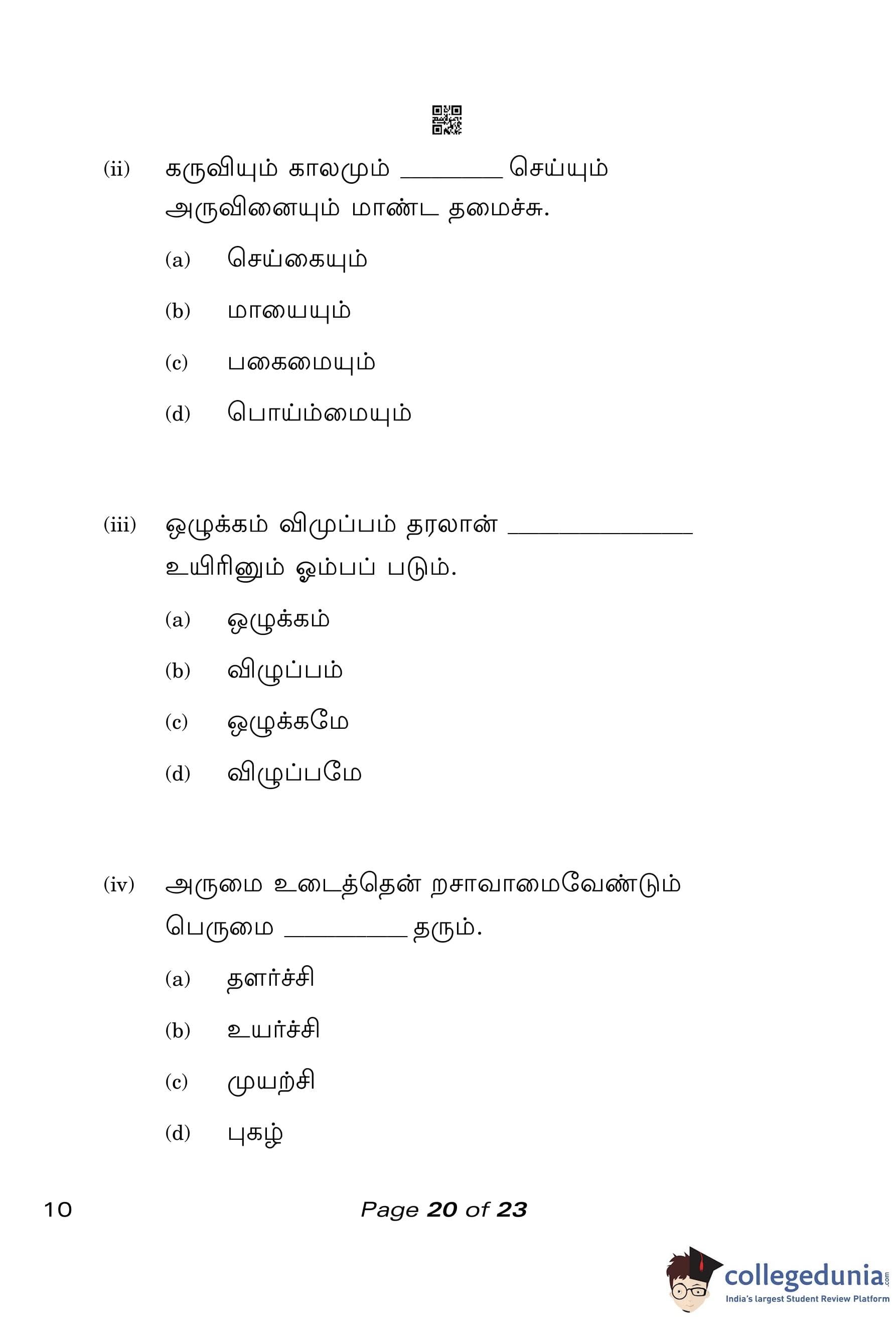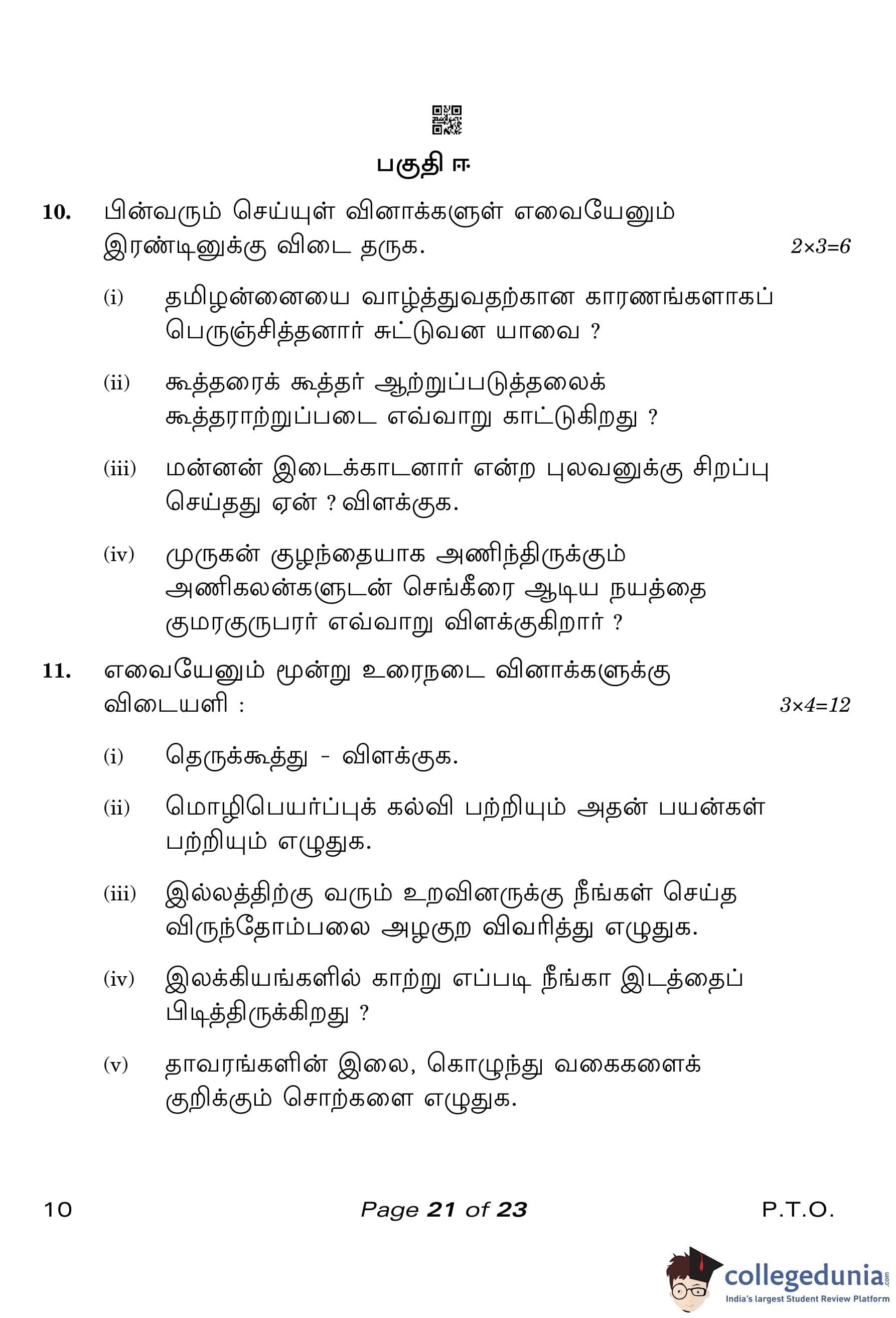 CBSE Class 10 Tamil Compartment Question Paper 2023 with Answer Key