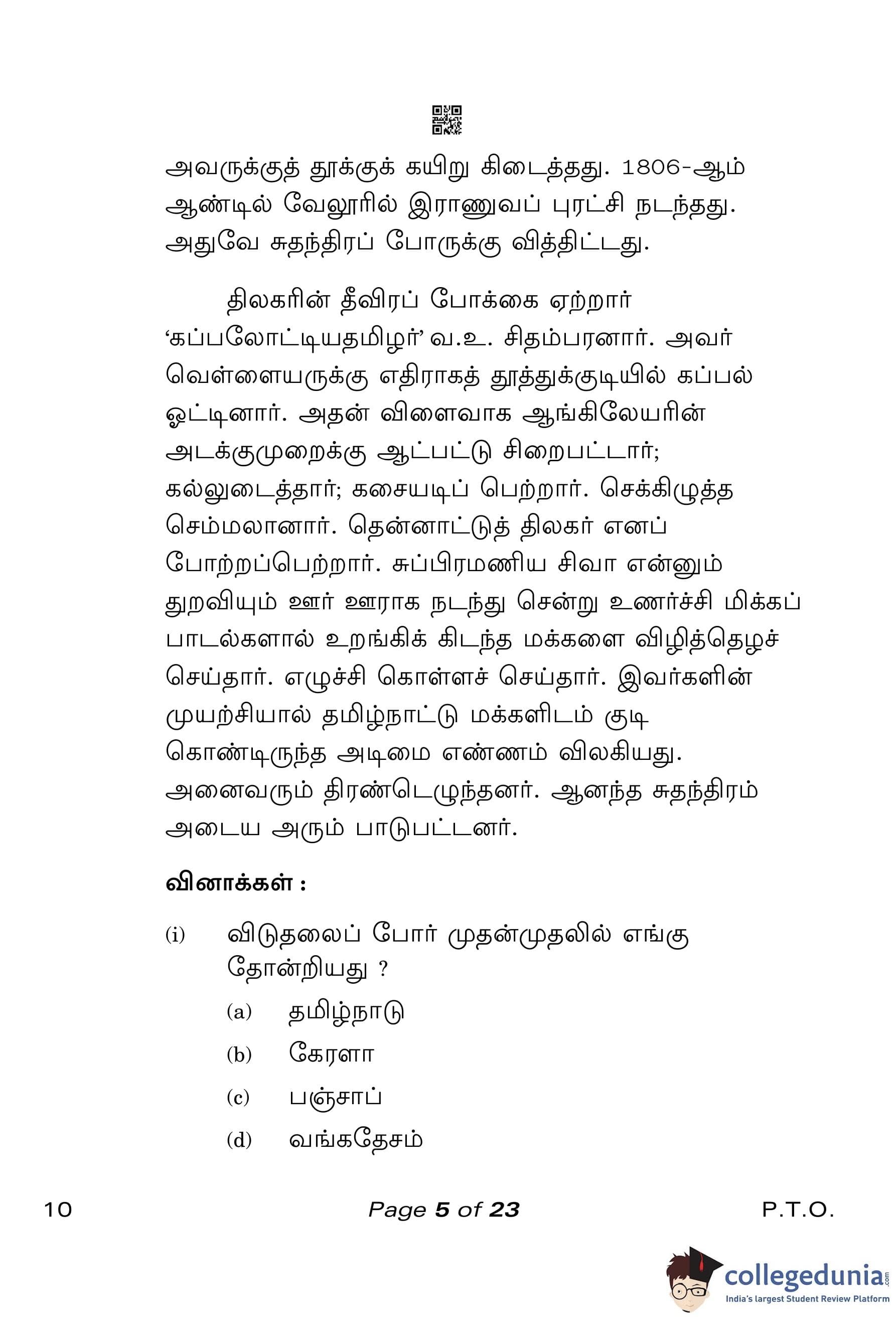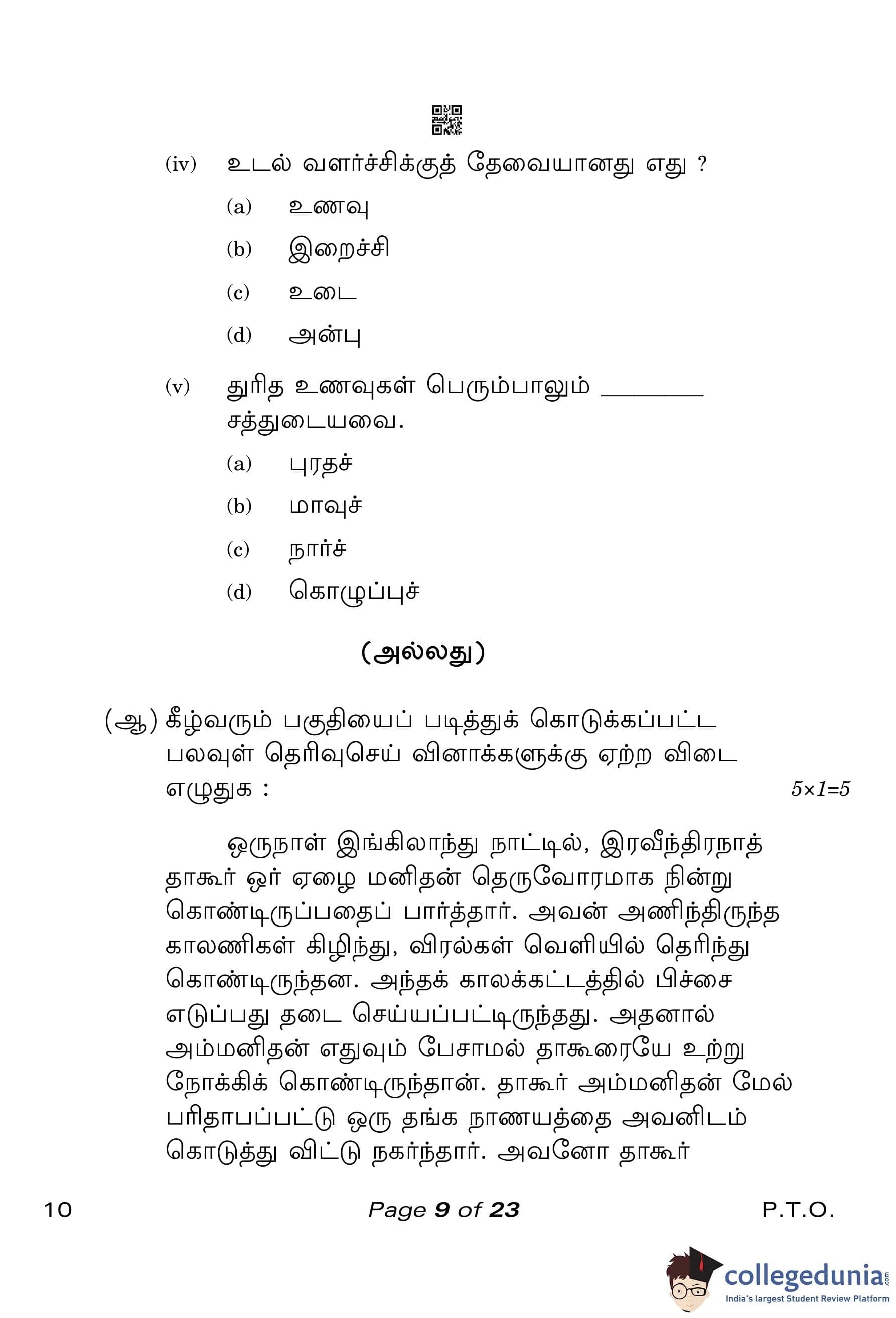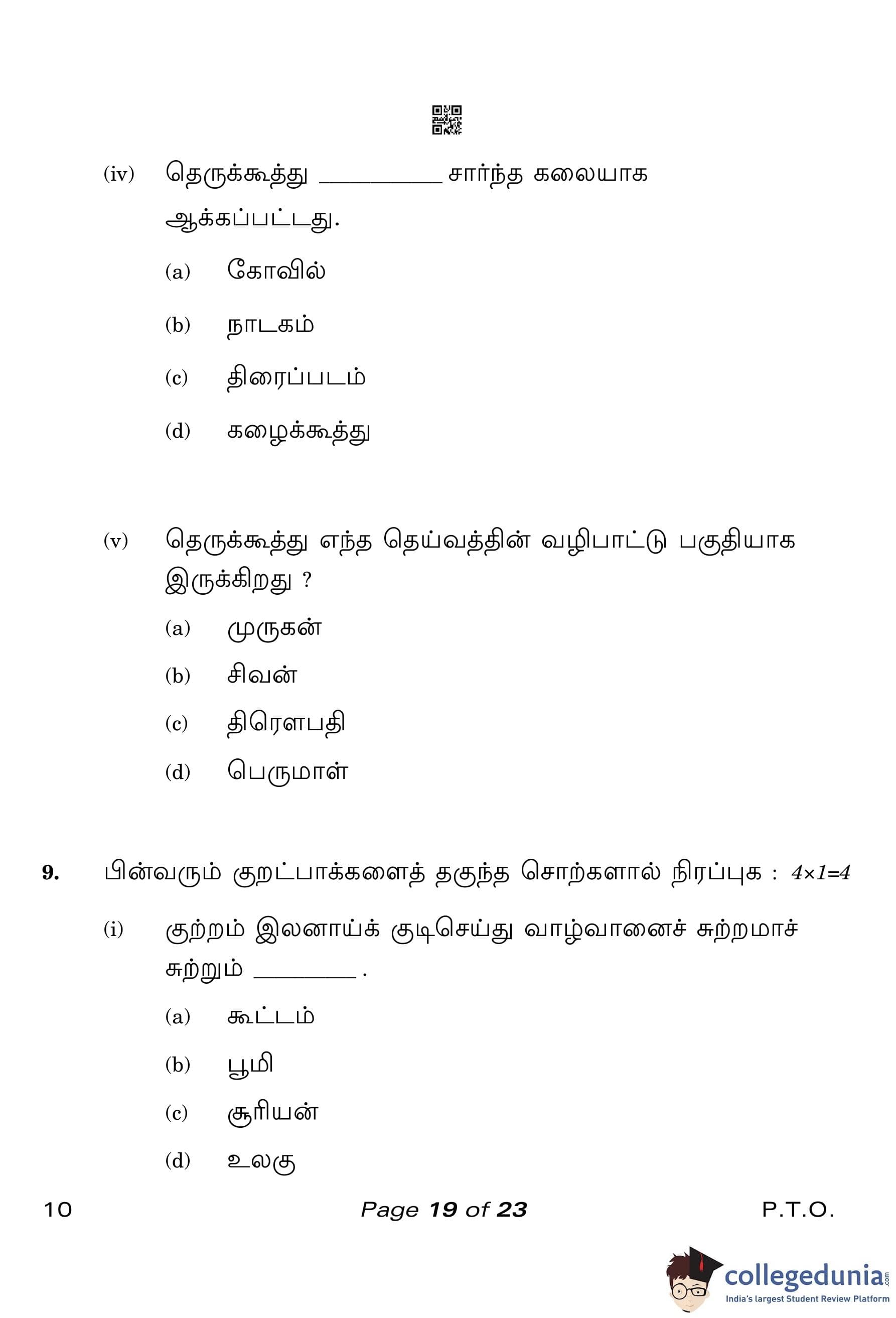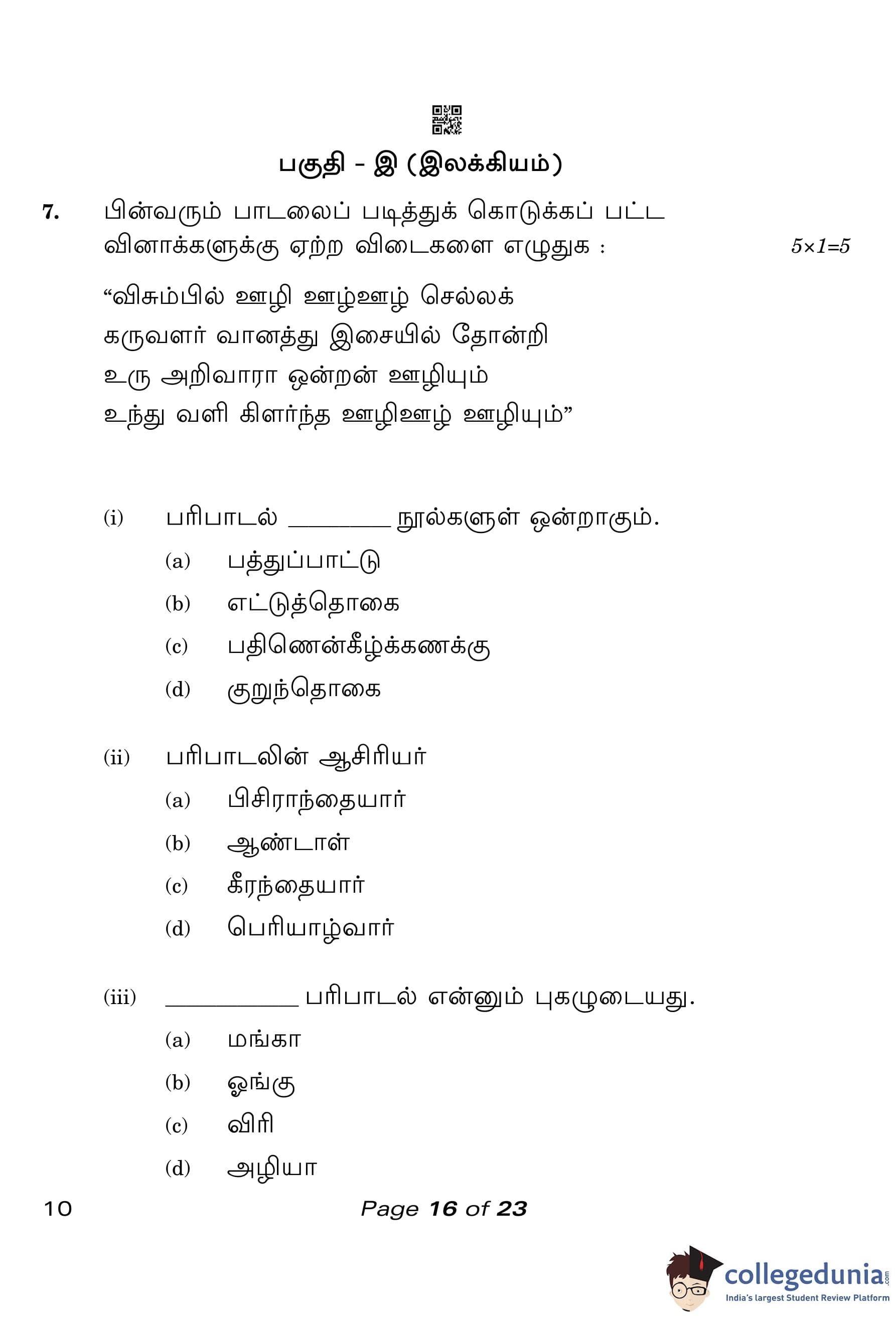 CBSE Class 10 Tamil Compartment Question Paper 2023 with Answer Key