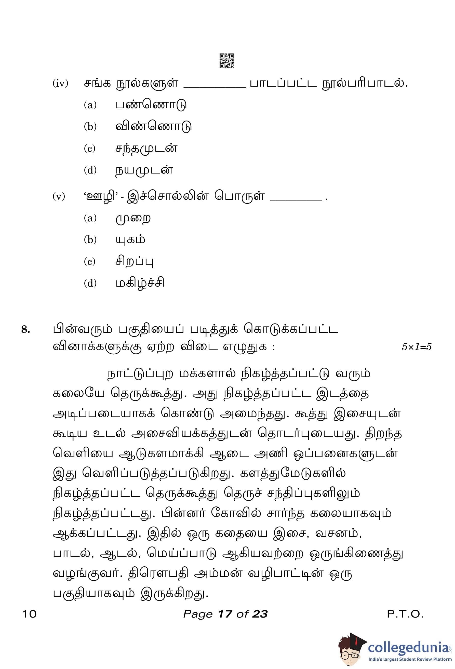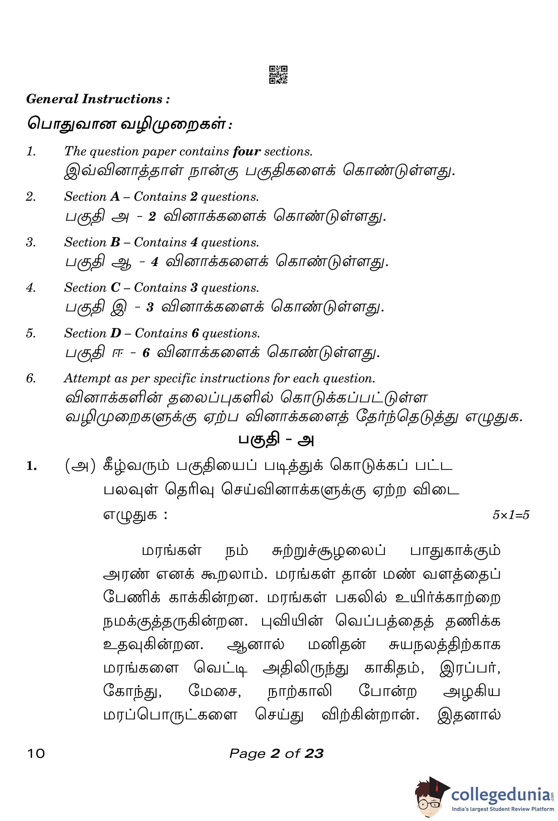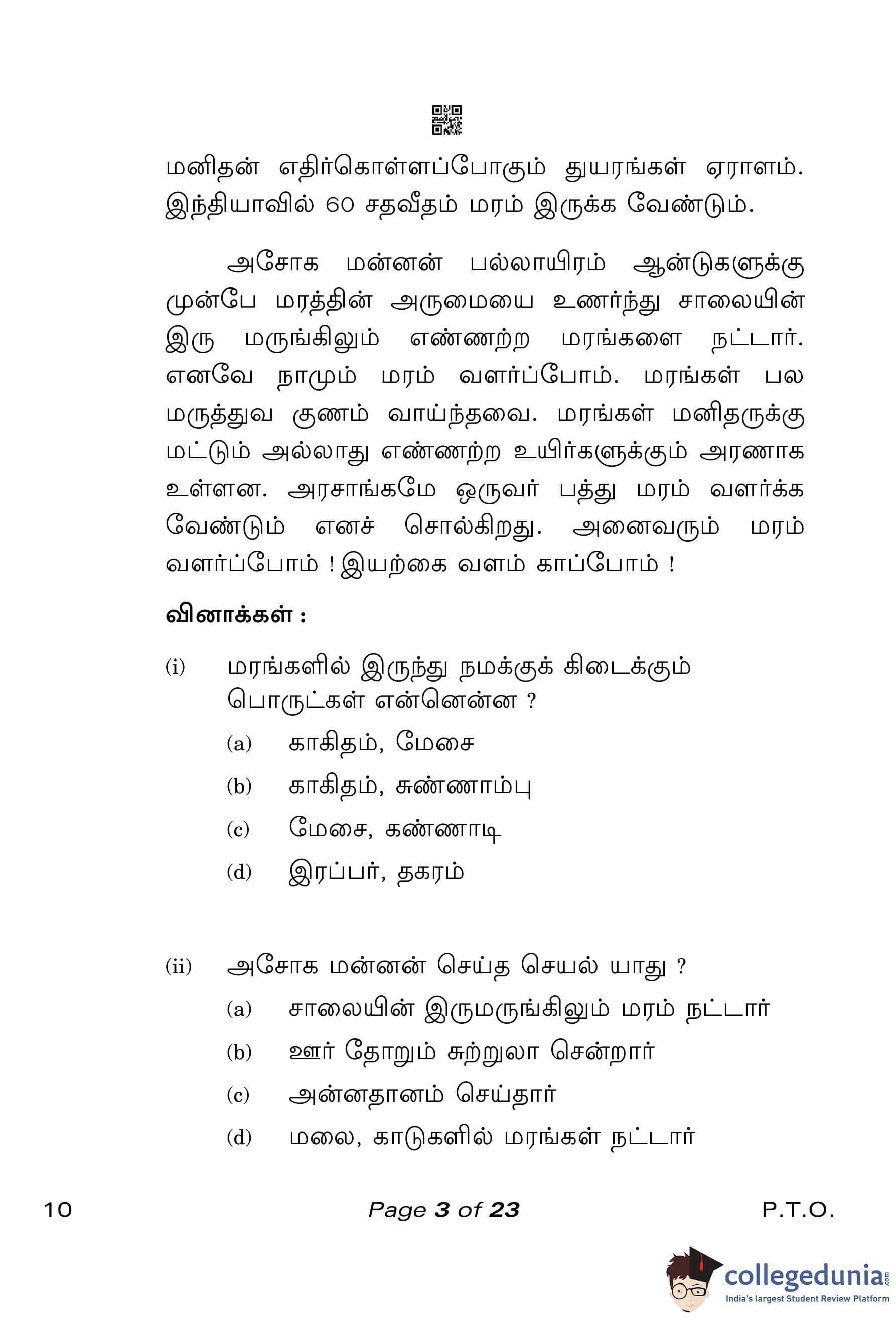| CBSE Class 10 Tamil Question Paper 2023 PDF | CBSE Class 10 Tamil Answer Key 2023 PDF |