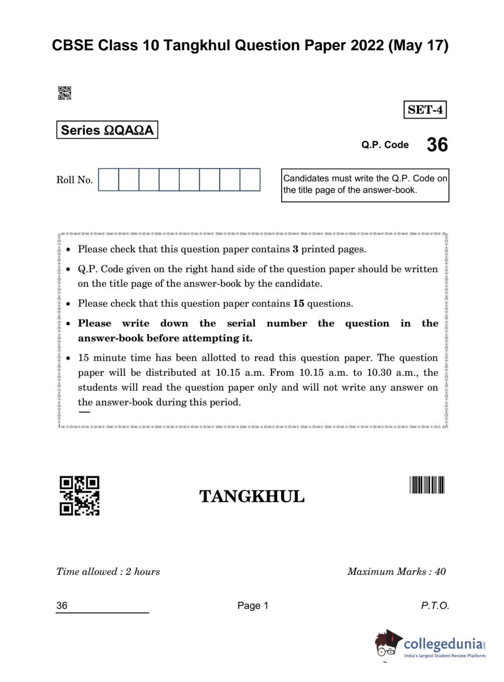 | CBSE Class 10 Tangkhul Question Paper 2022 PDF | CBSE Class 10 Tangkhul Answer Key 2022 PDF |