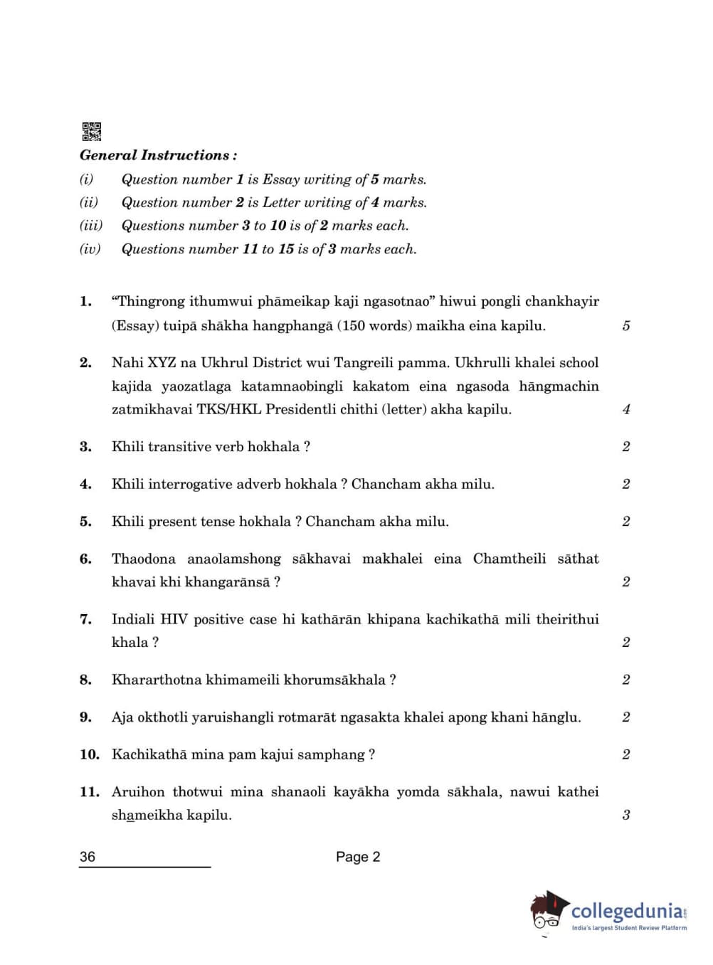 CBSE Class 10 Tangkhul Question Paper 2022 with Answer Key (May 17)