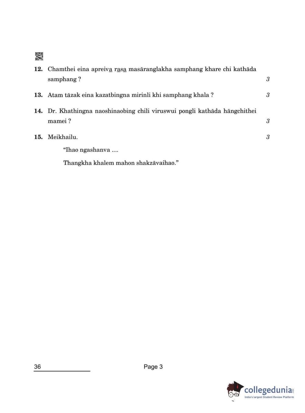 CBSE Class 10 Tangkhul Question Paper 2022 with Answer Key Set 4 is available for download. The exam was conducted by the Central Board of Secondary Education on May 17, 2022 in the Morning Session 10:30 AM to 12:30 PM. The medium of paper was Tangkhul. The question paper comprised a total of 15 questions.