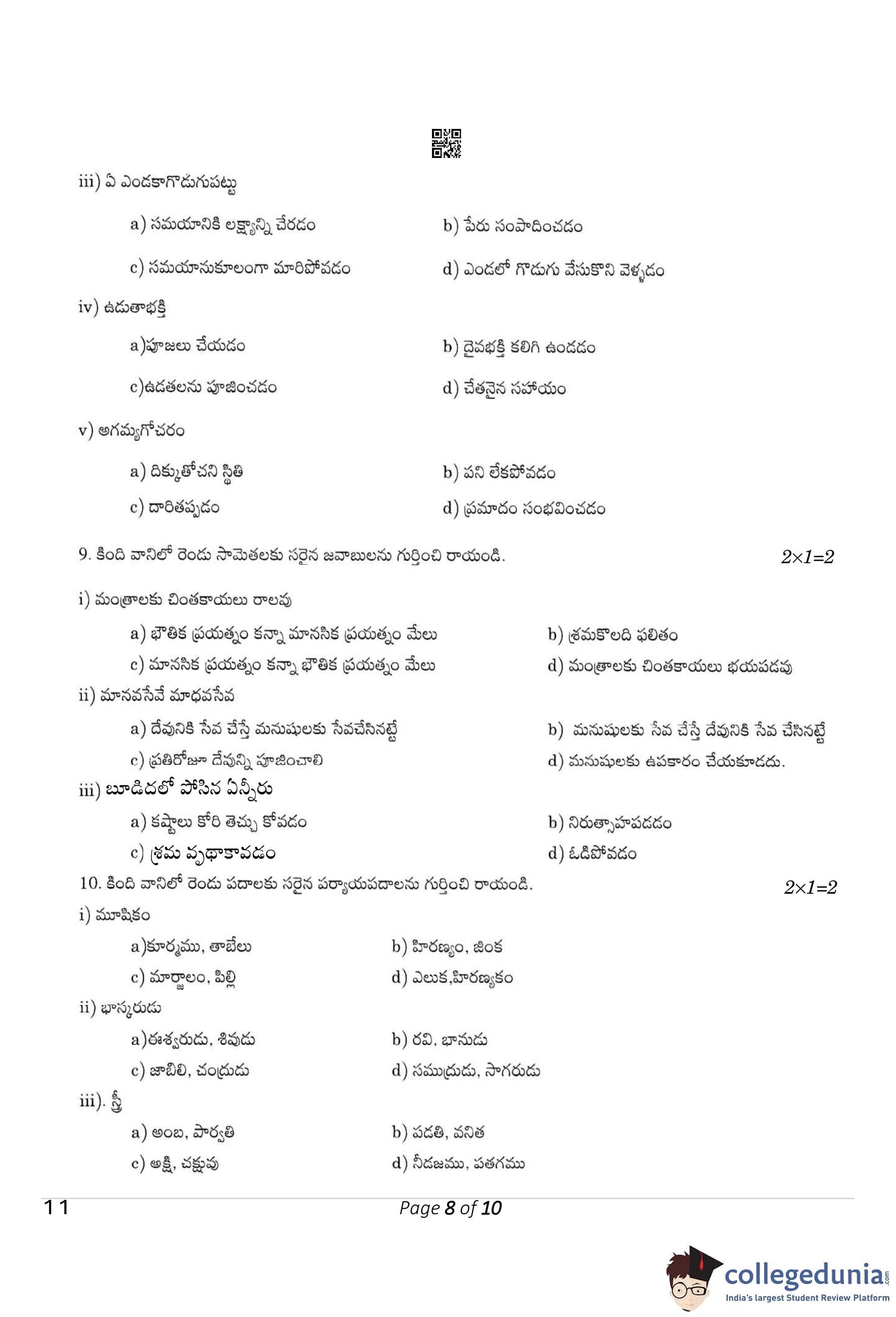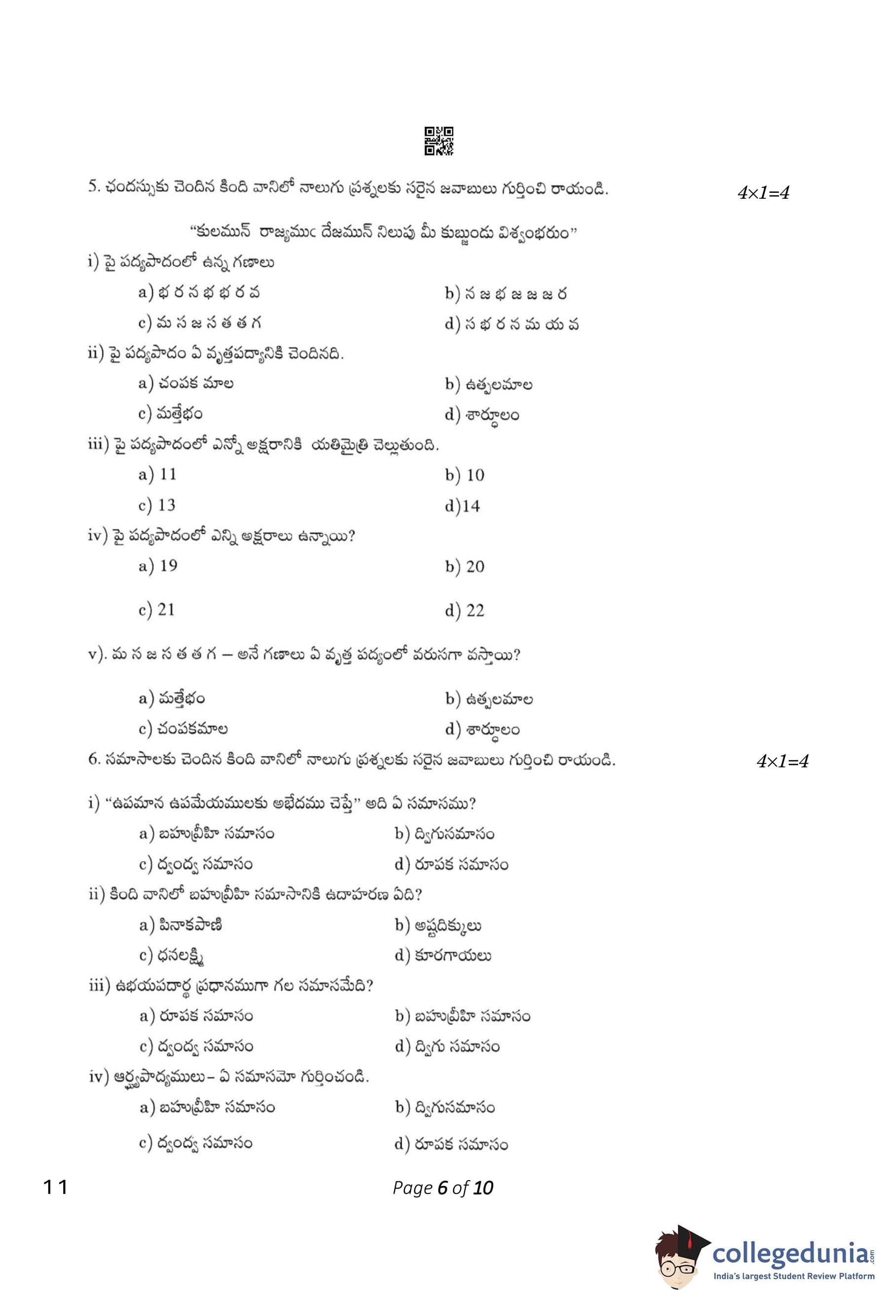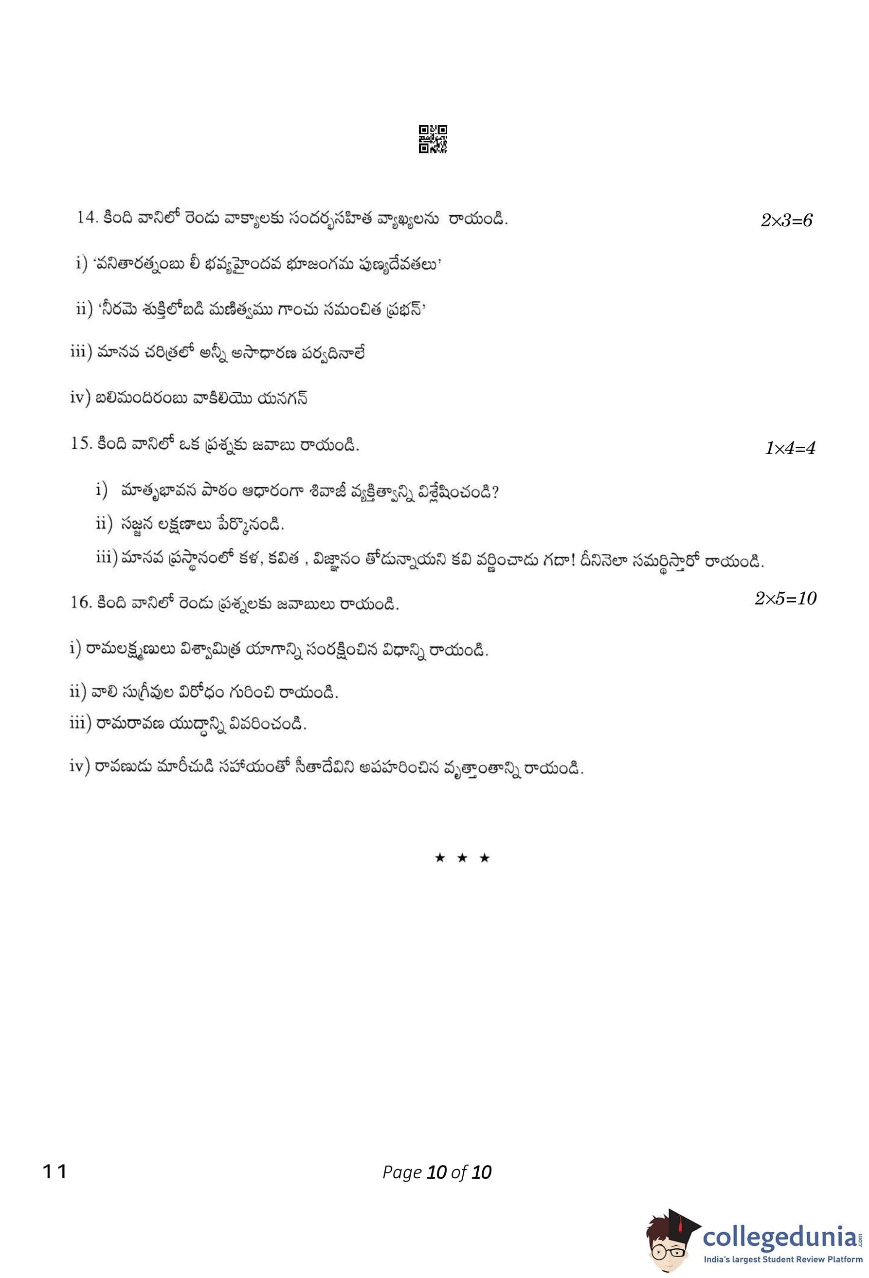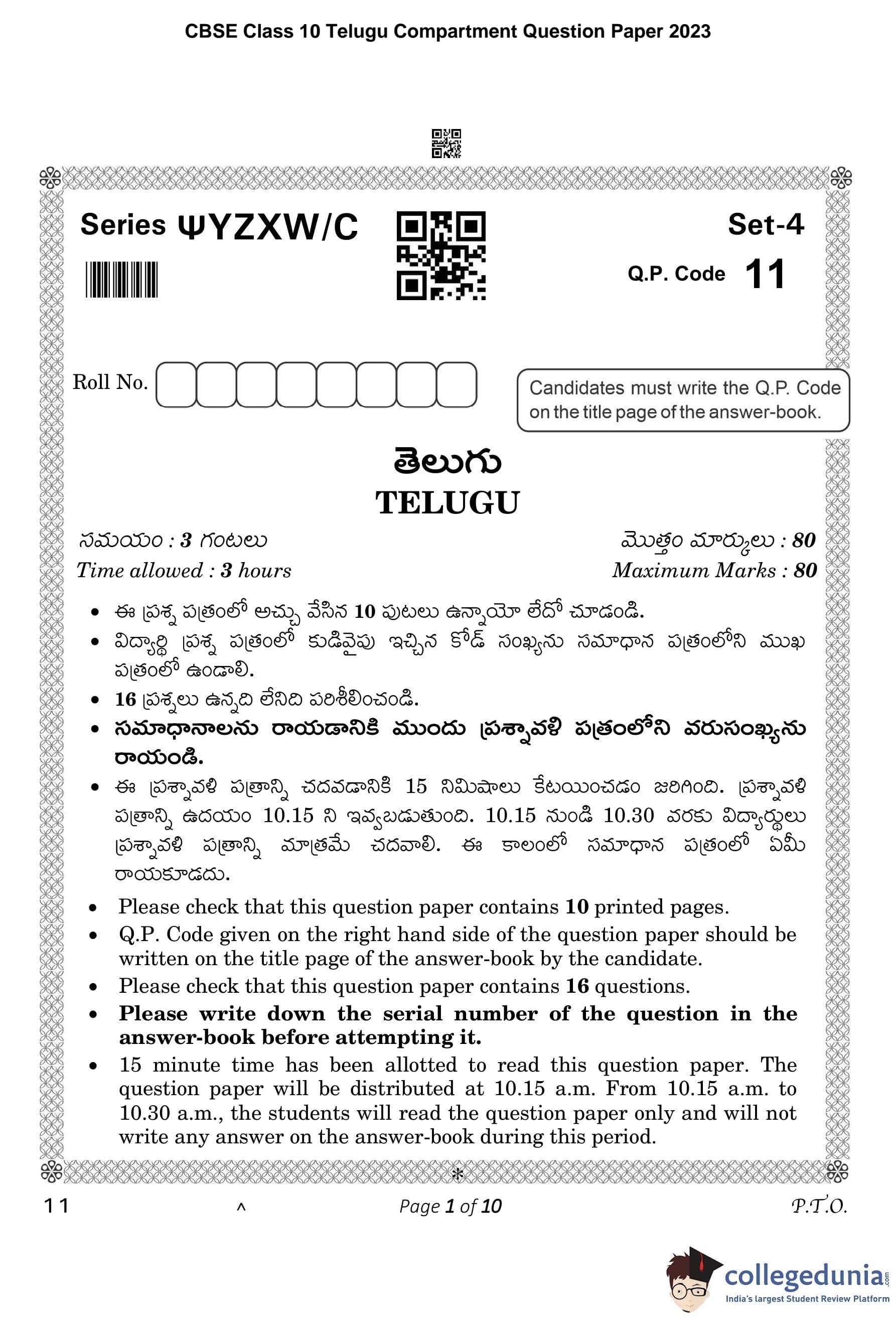 CBSE Class 10 Telugu Compartment Question Paper 2023 with Answer Key