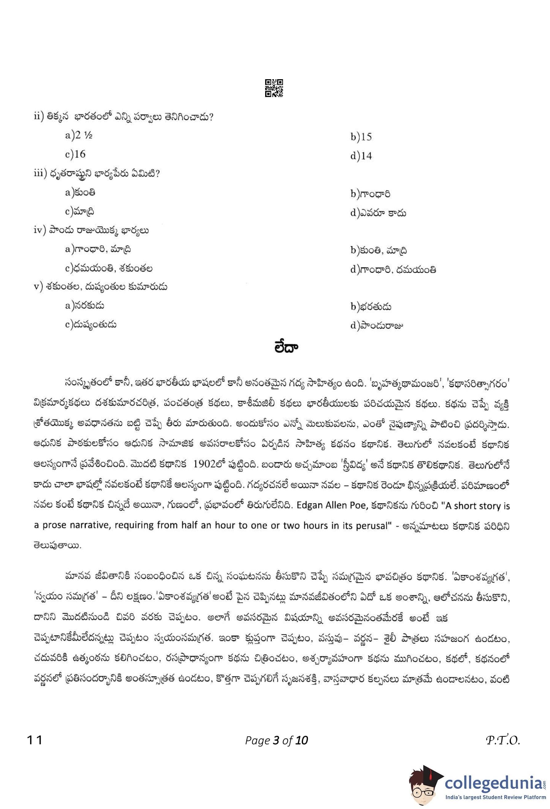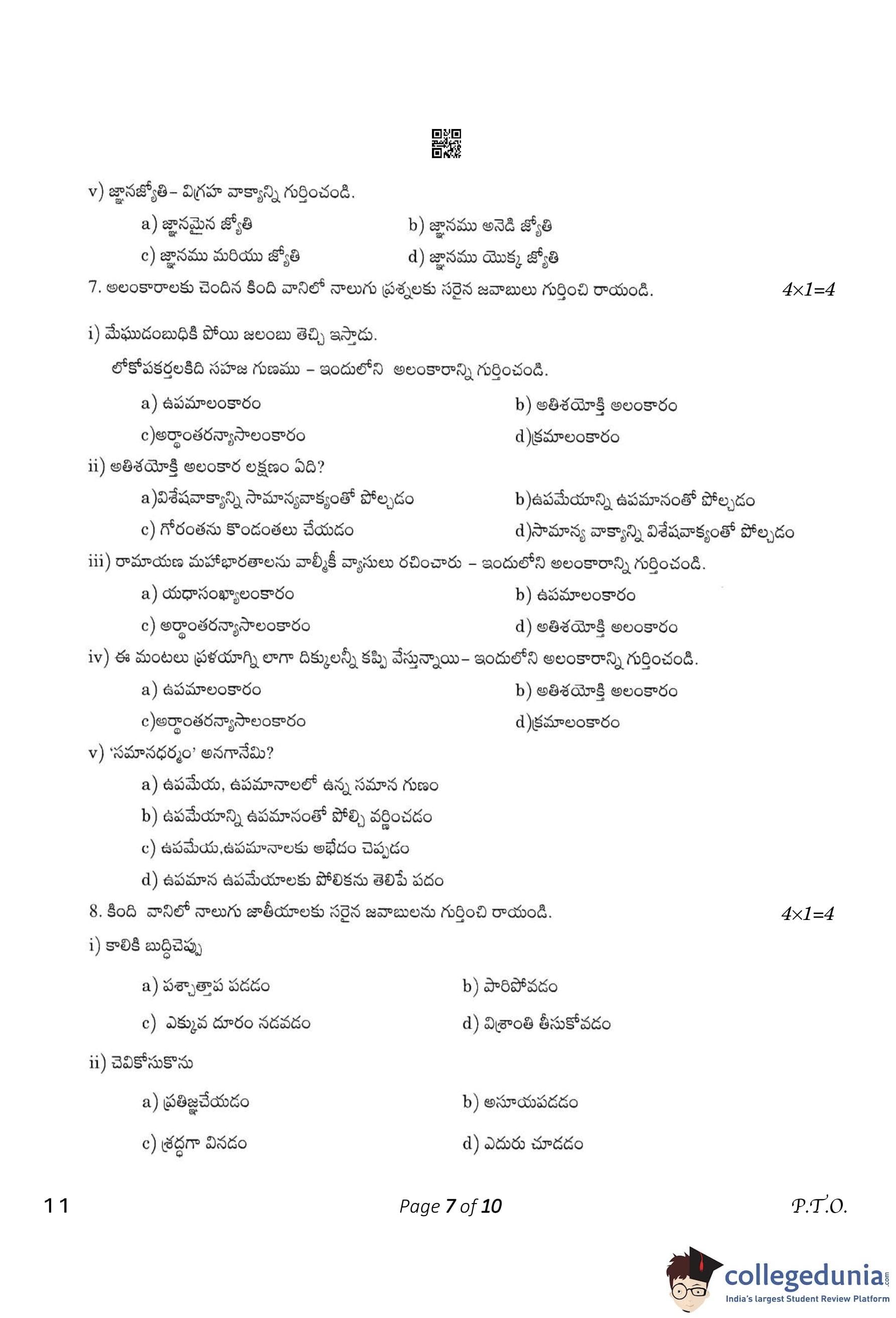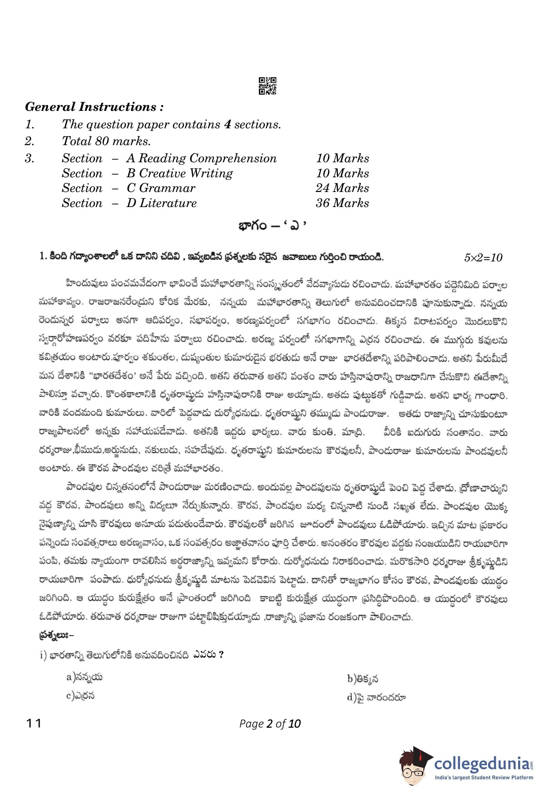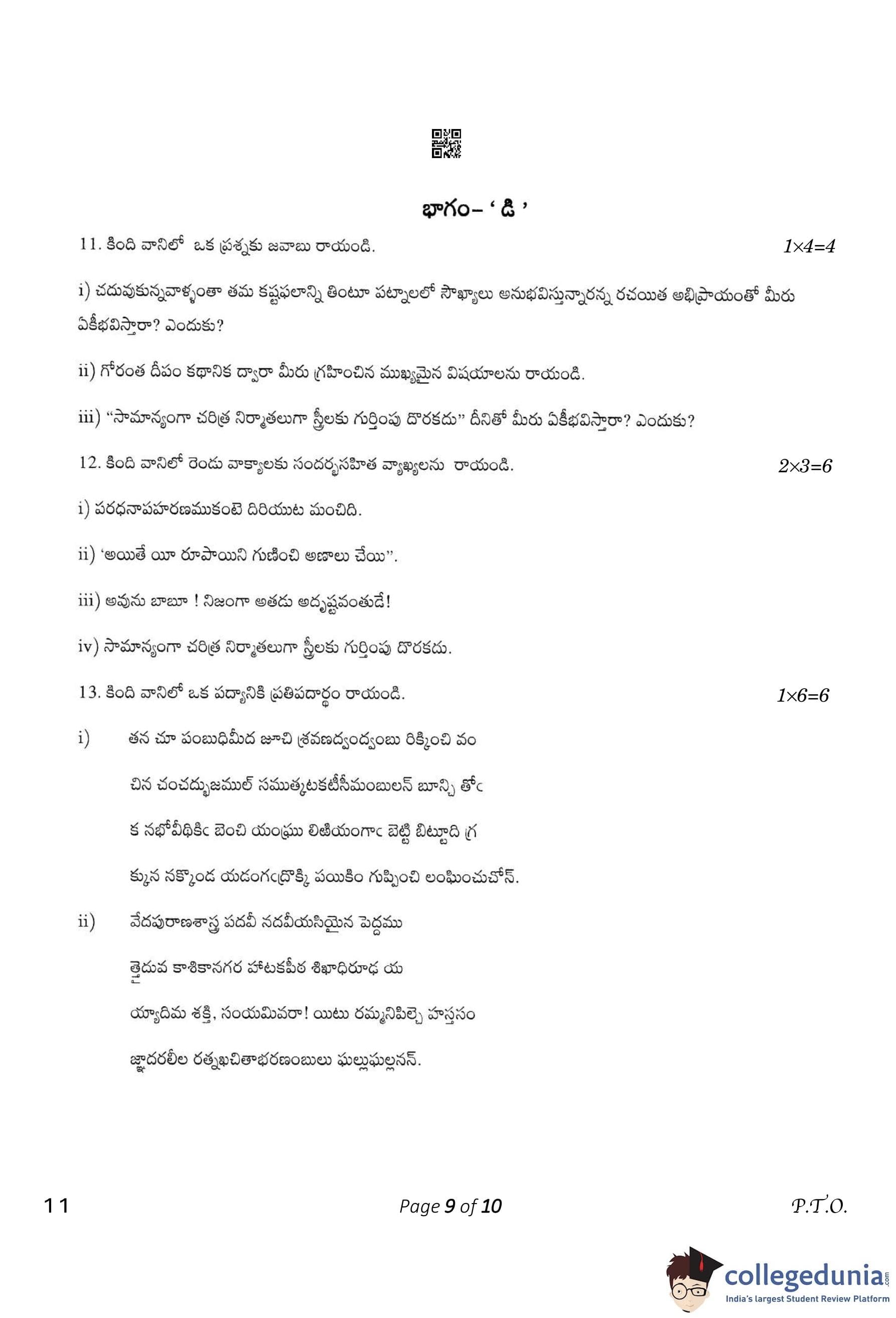 CBSE Class 10 Telugu Compartment Question Paper 2023 with Answer Key