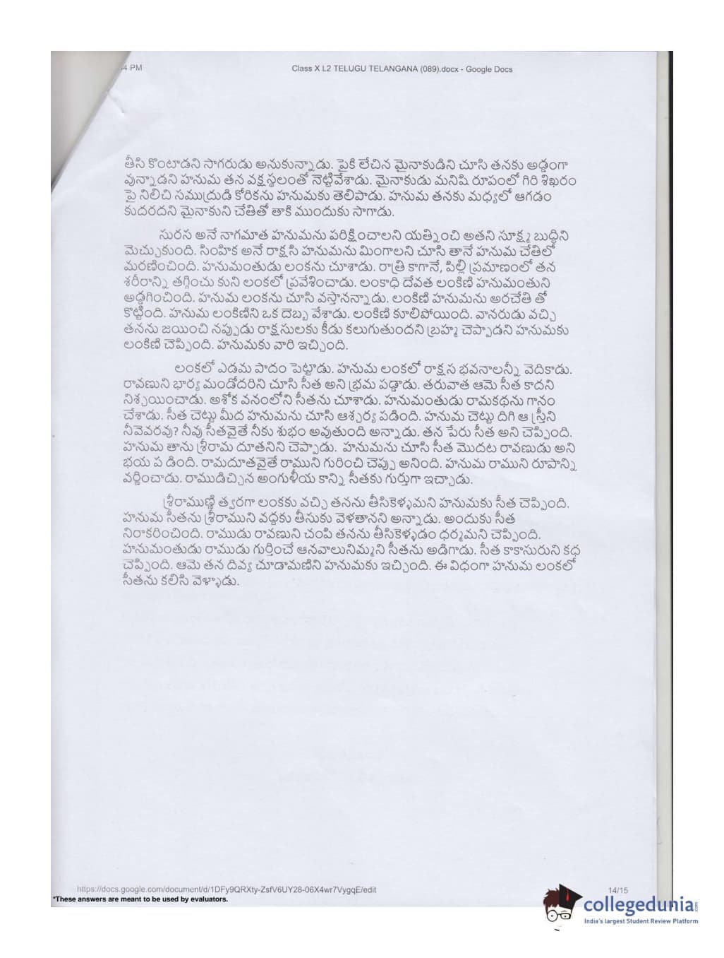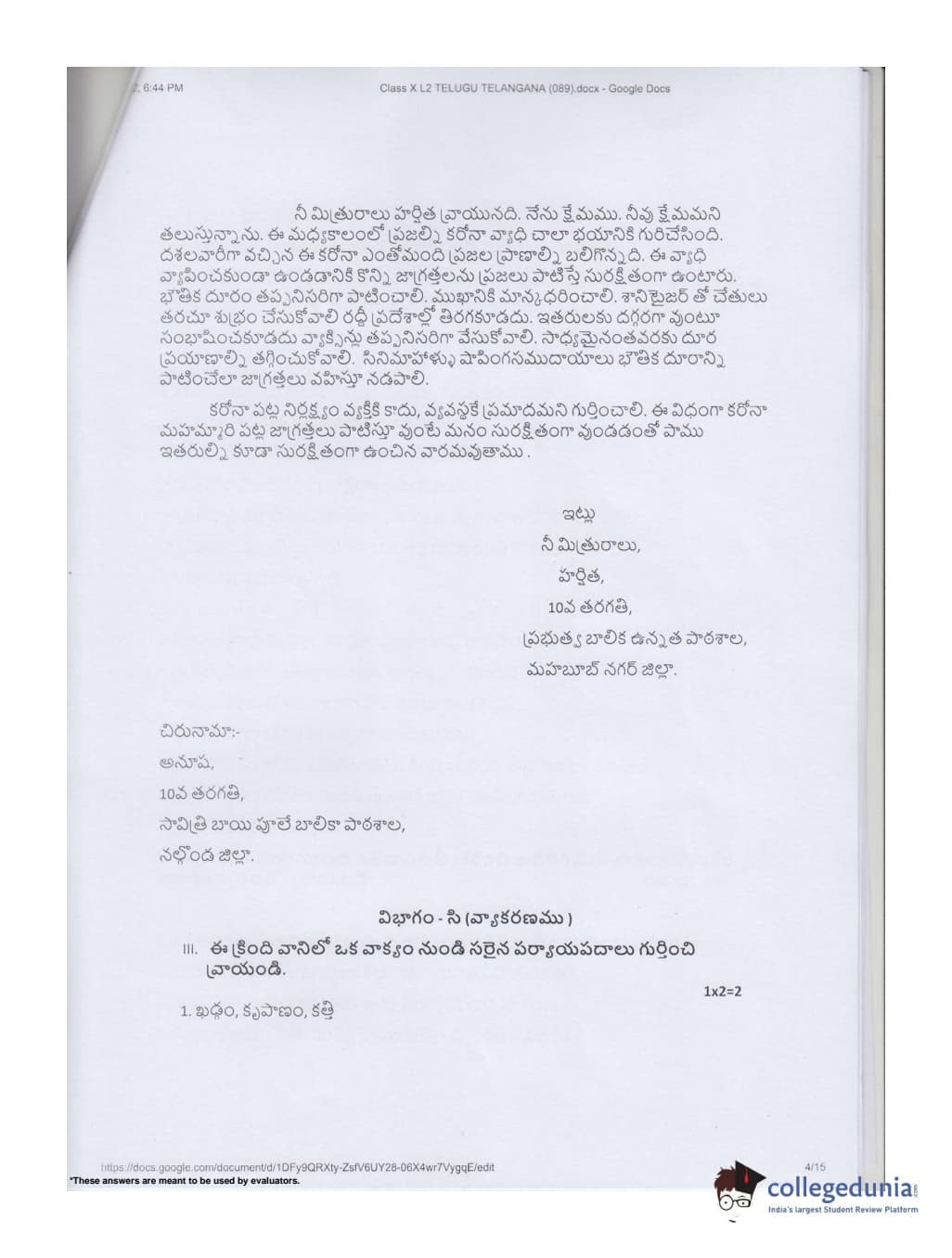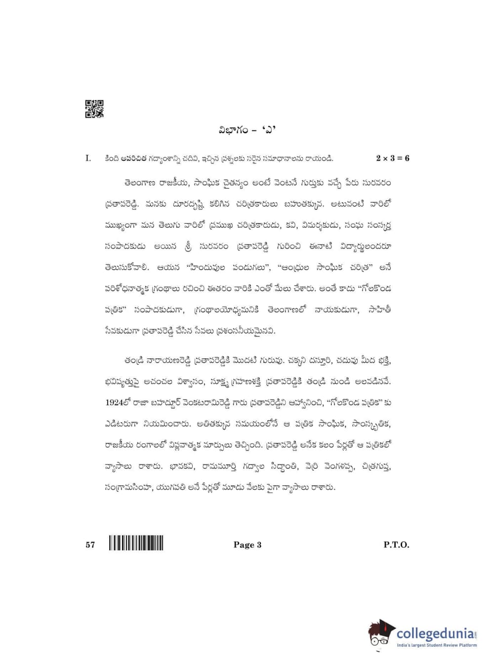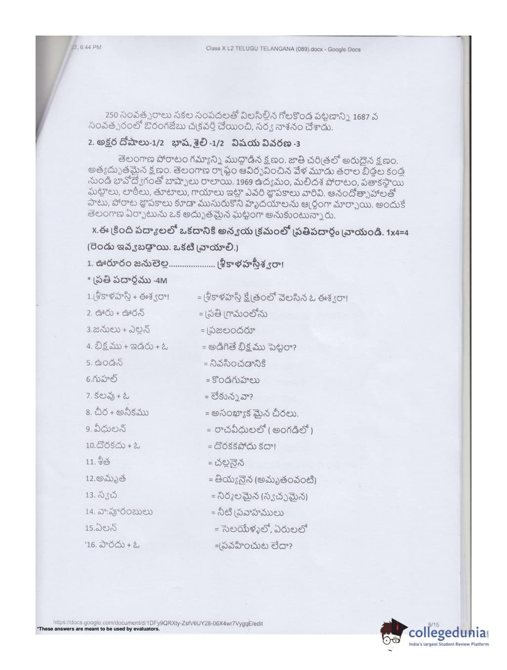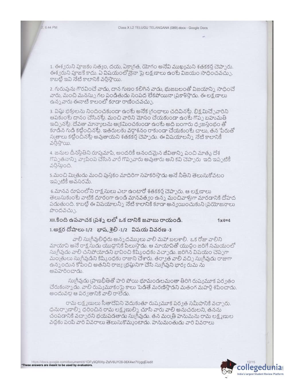 CBSE Class 10 Telugu Telangana Question Paper 2022 with Answer Key (May 12)