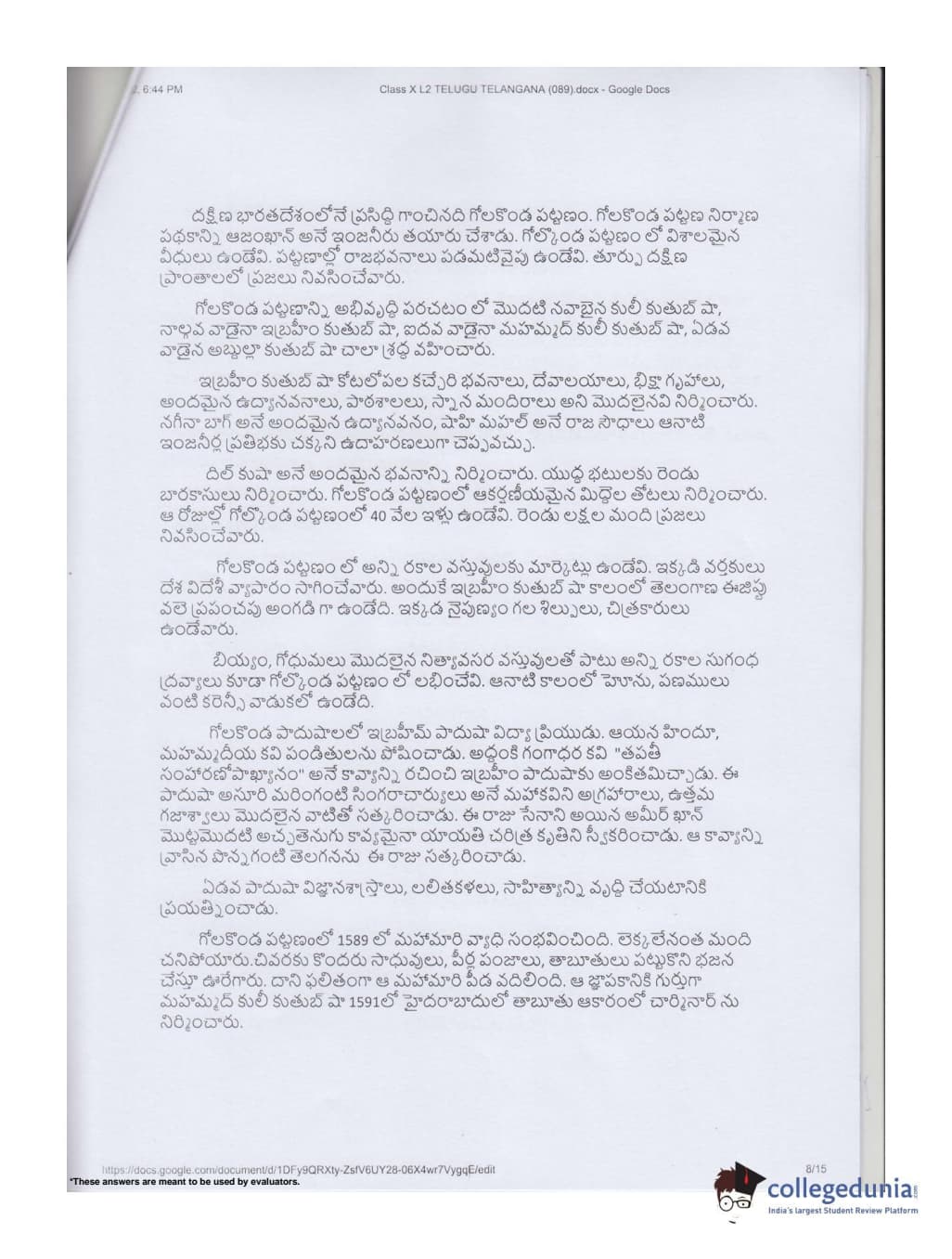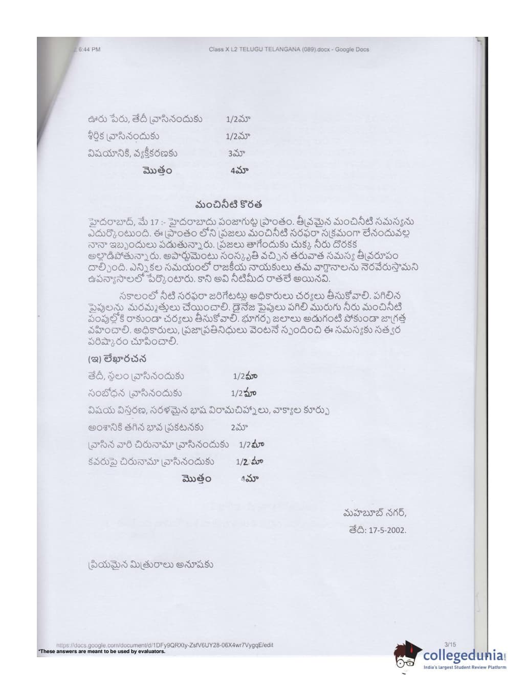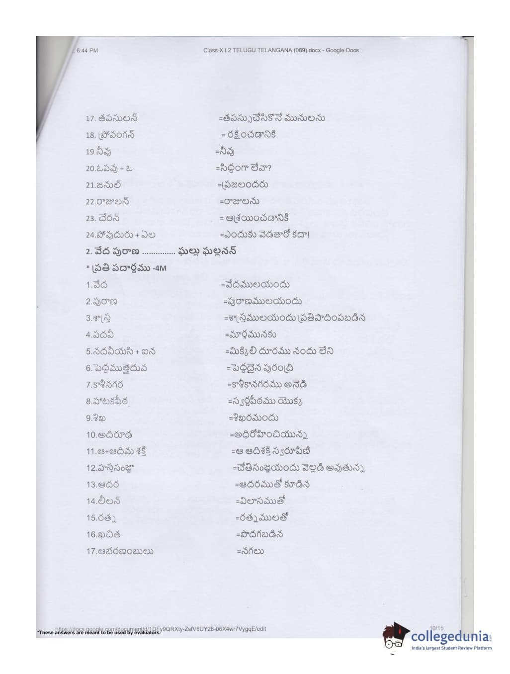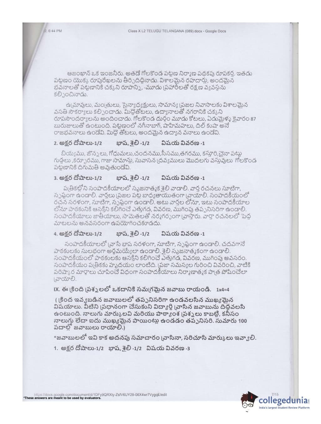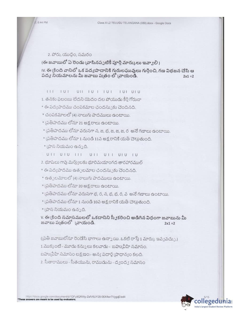 CBSE Class 10 Telugu Telangana Question Paper 2022 with Answer Key (May 12)