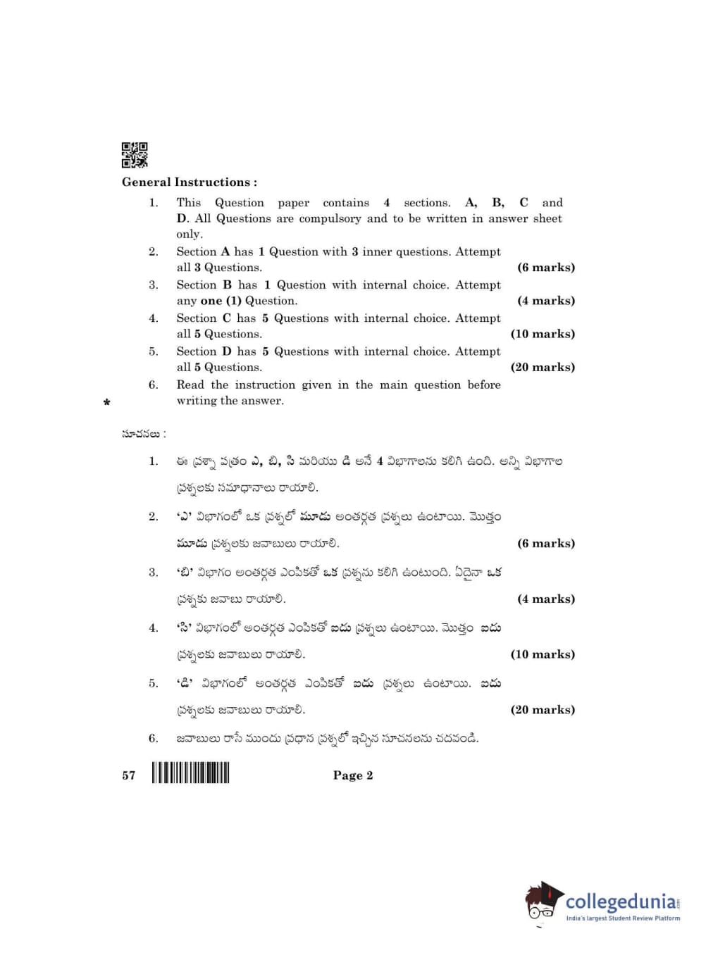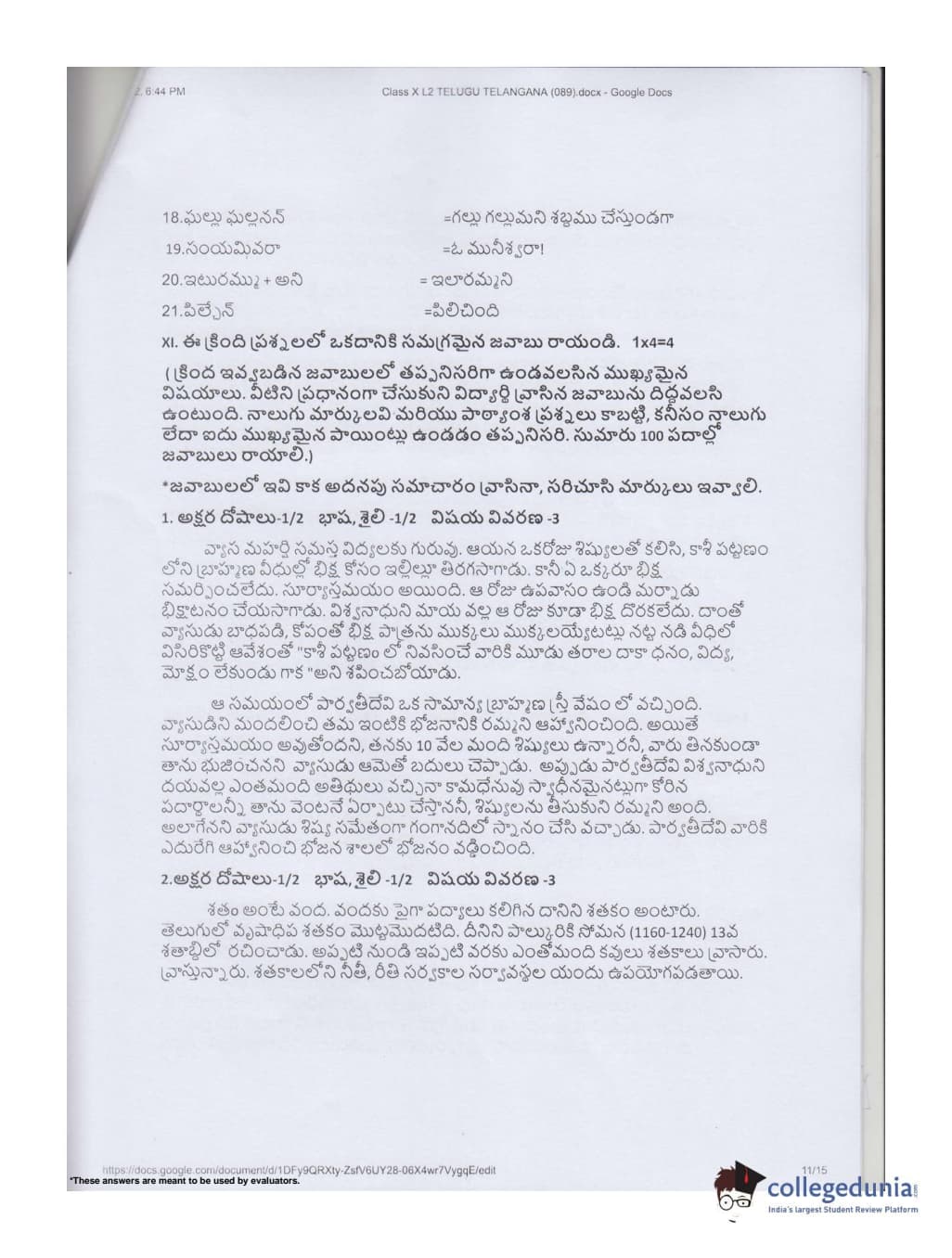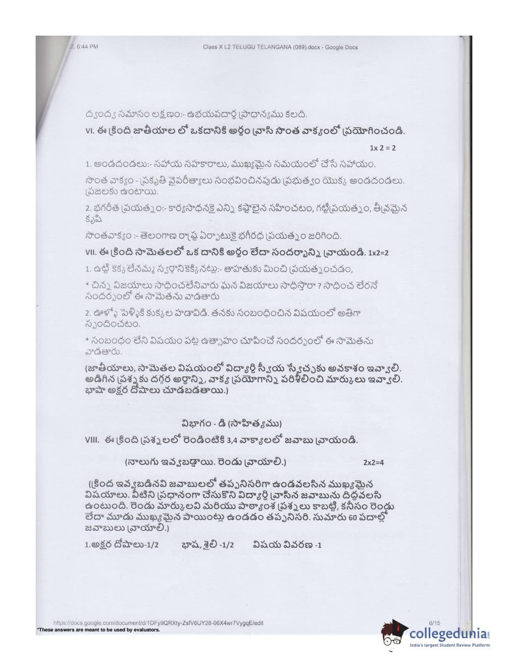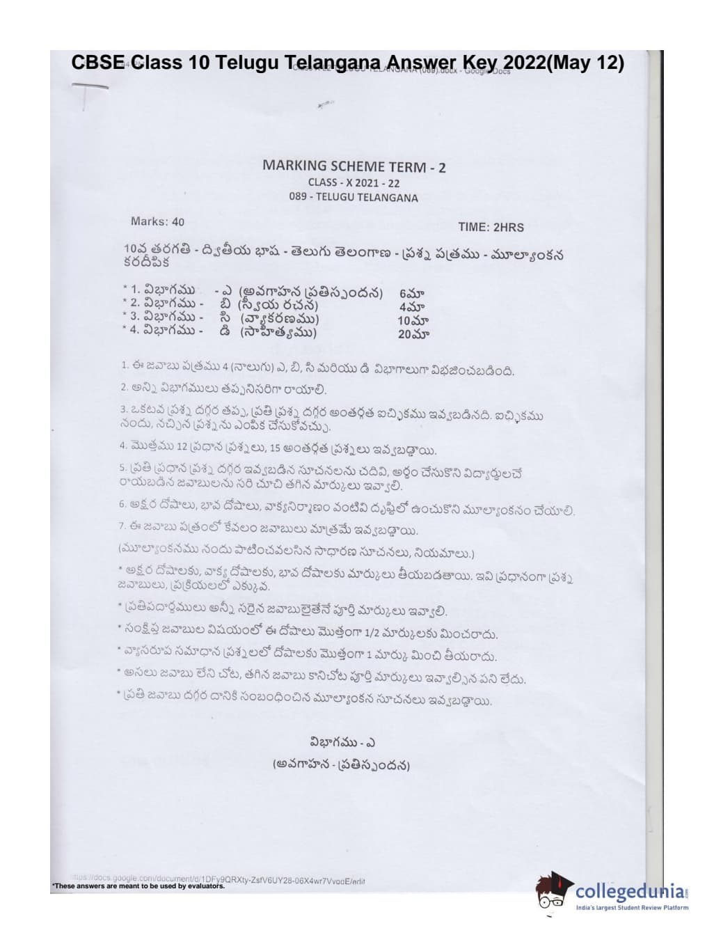 | CBSE Class 10 Telugu Telangana Question Paper 2022 PDF | CBSE Class 10 Telugu Telangana Answer Key 2022 PDF | Detailed Solutions |