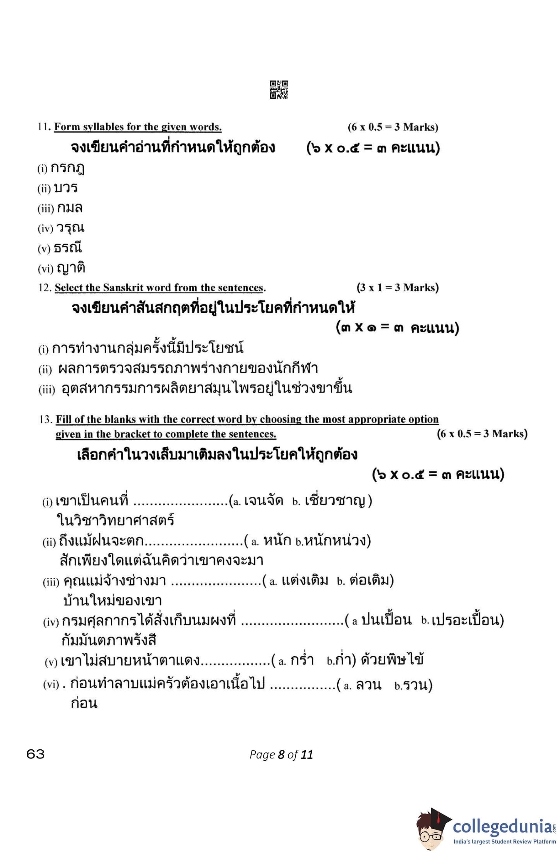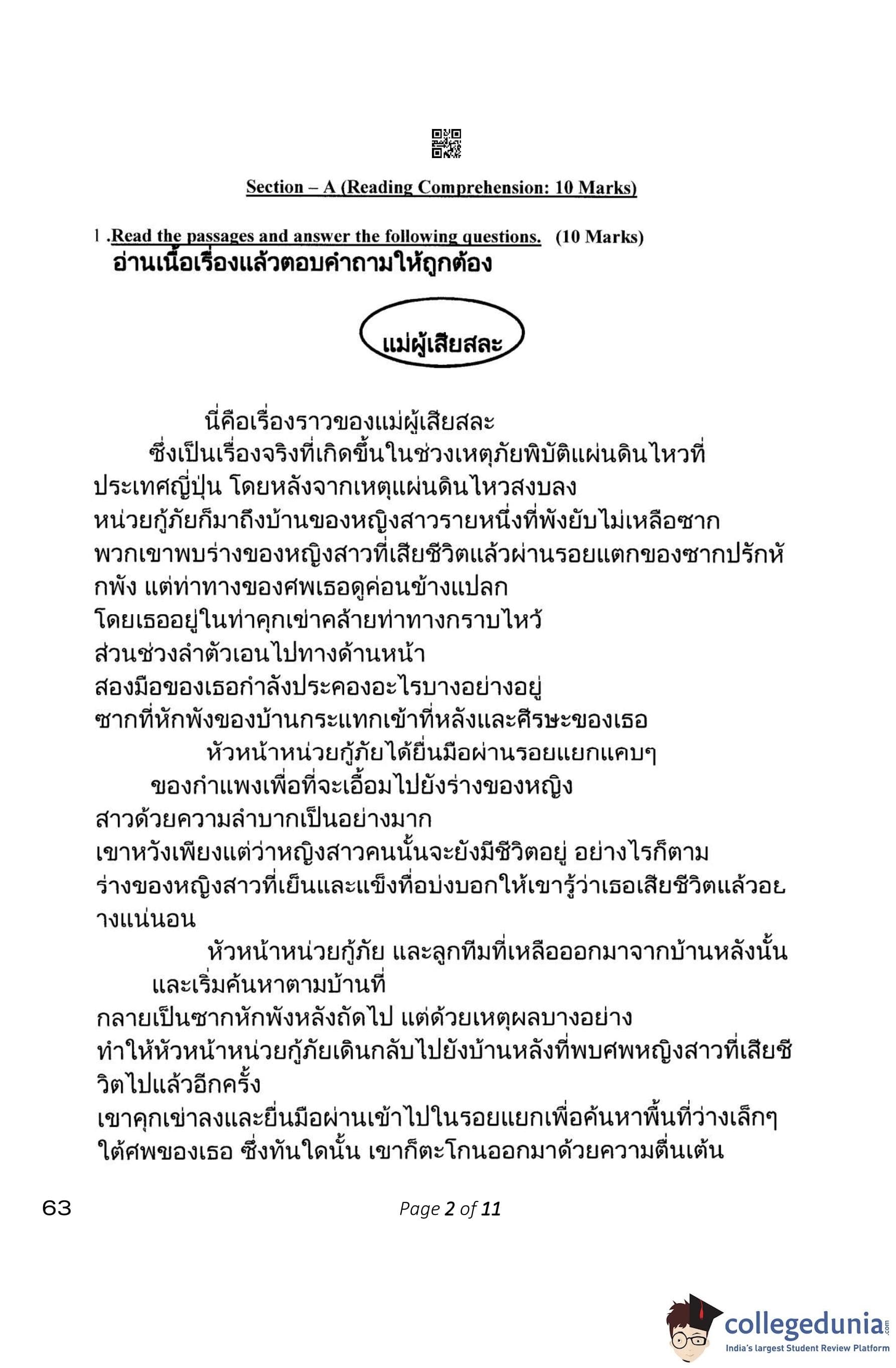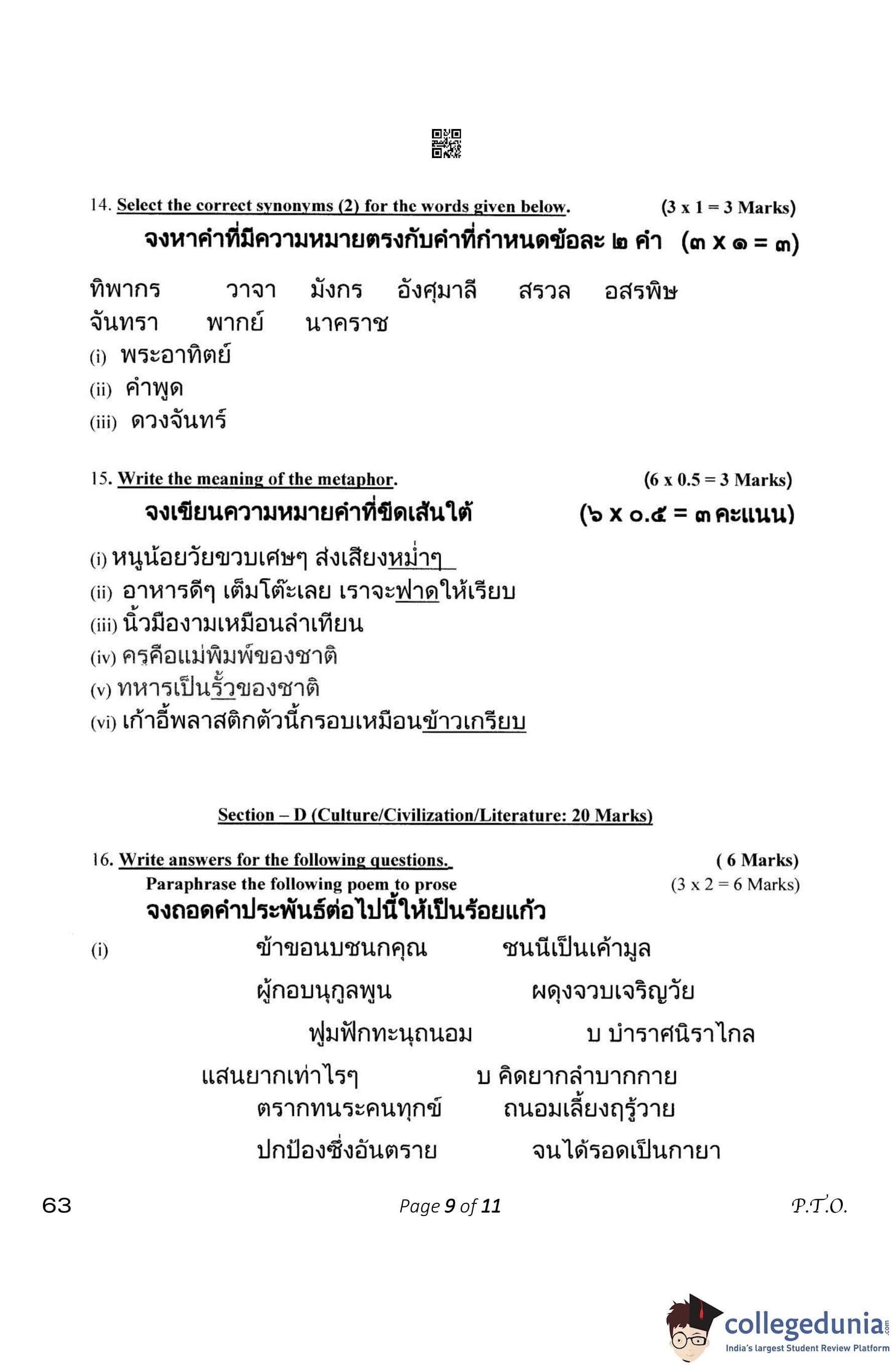 CBSE Class 10 Thai Question Paper 2023 with Answer Key