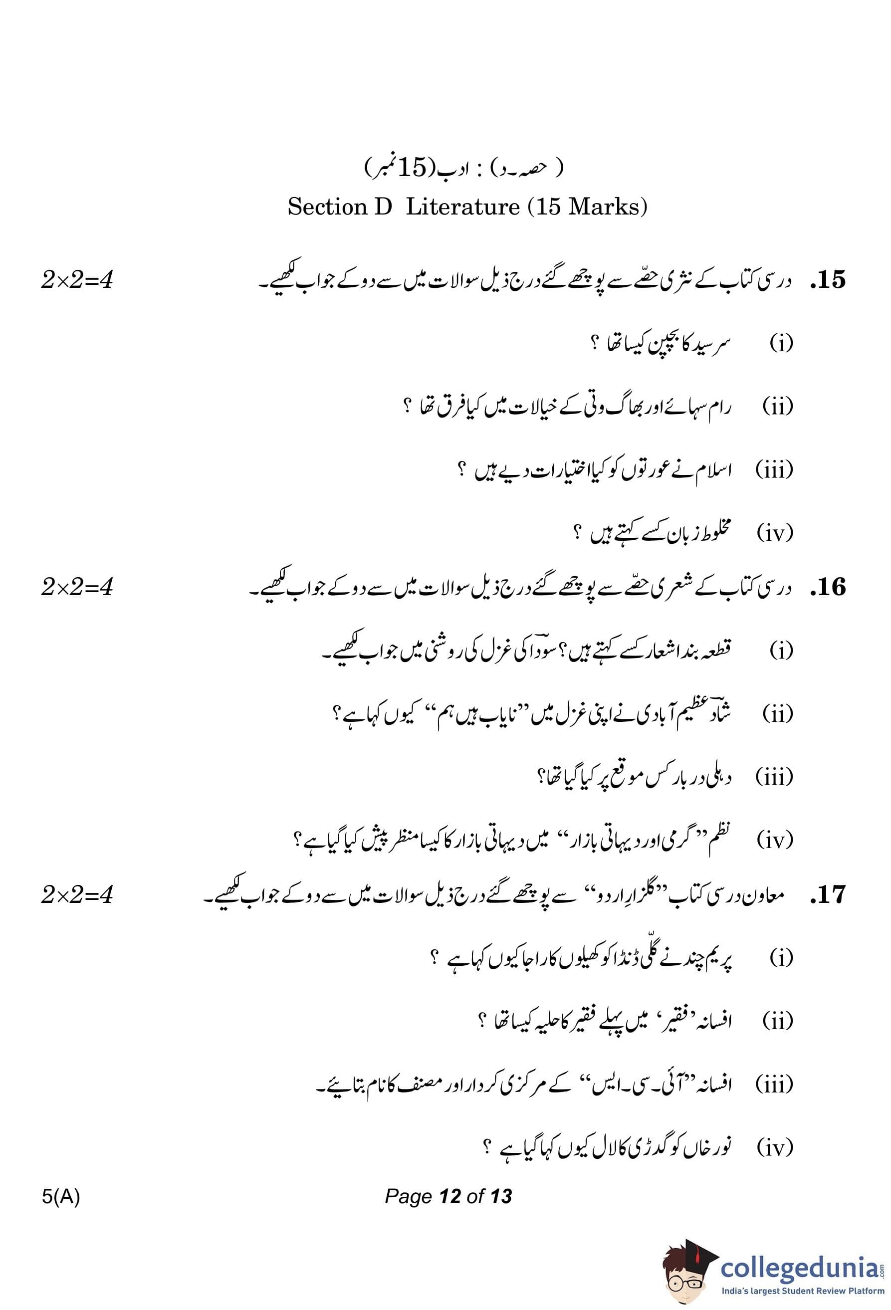 | CBSE Class 10 Urdu A Question Paper 2023 PDF | CBSE Class 10 Urdu A Answer Key 2023 PDF |