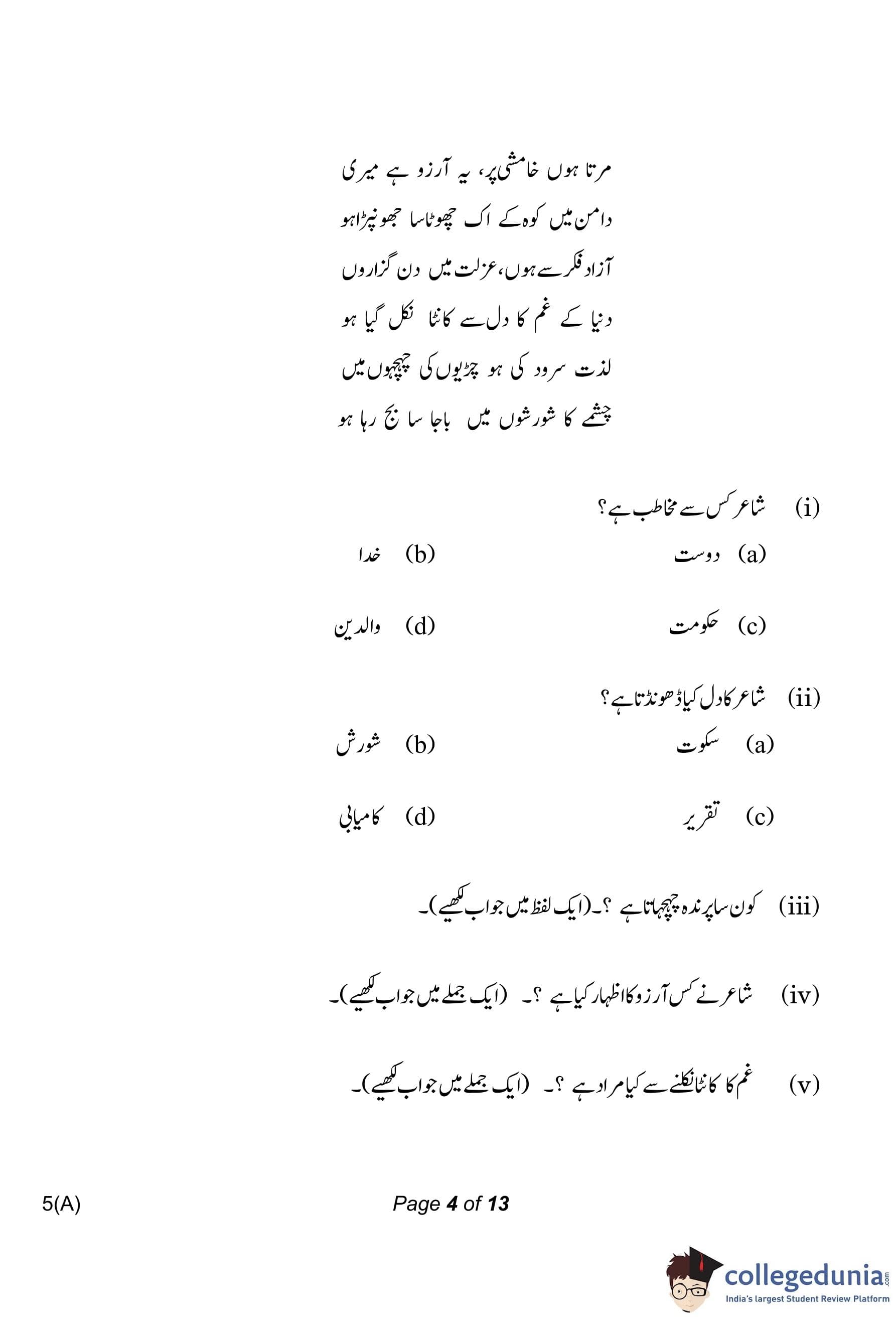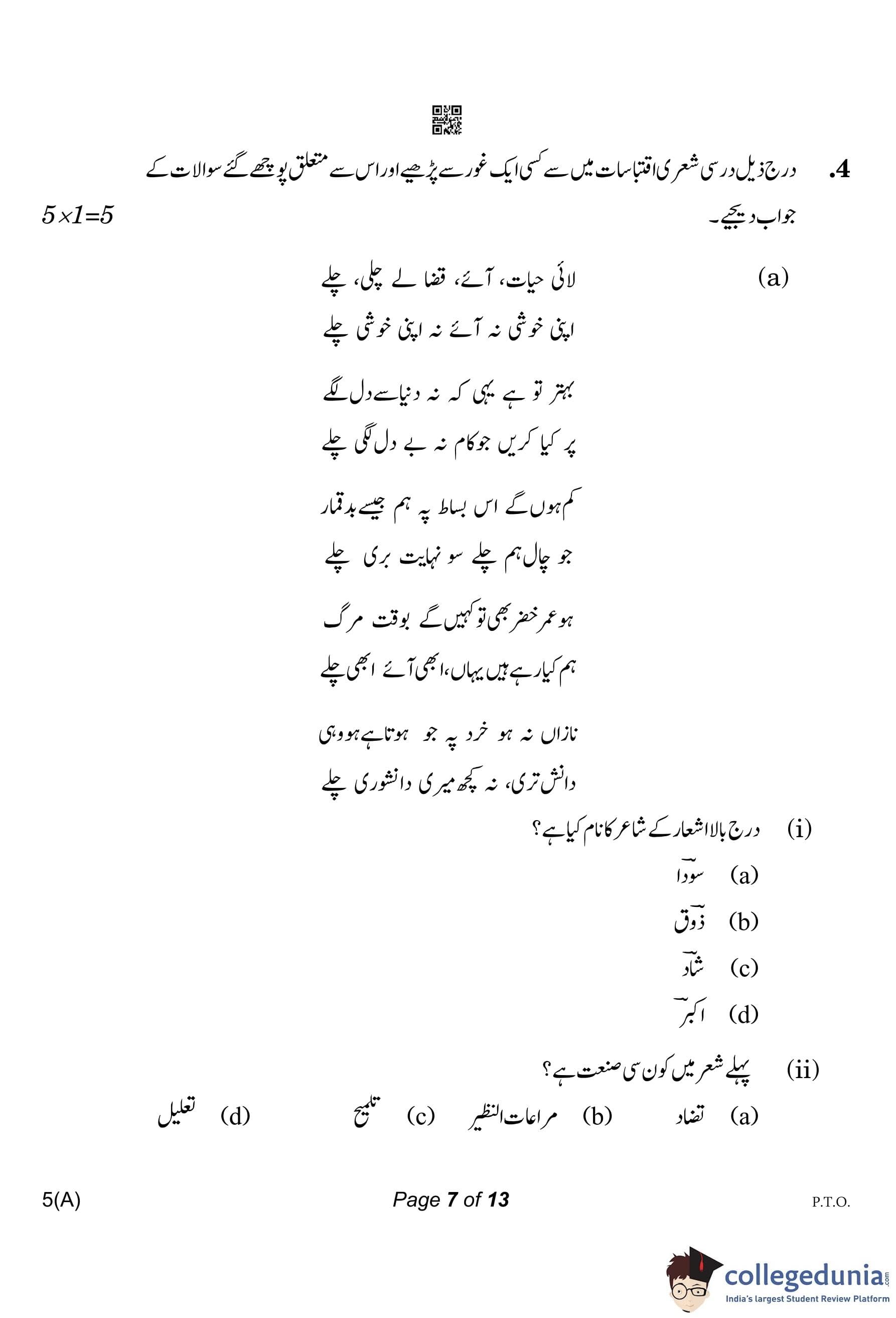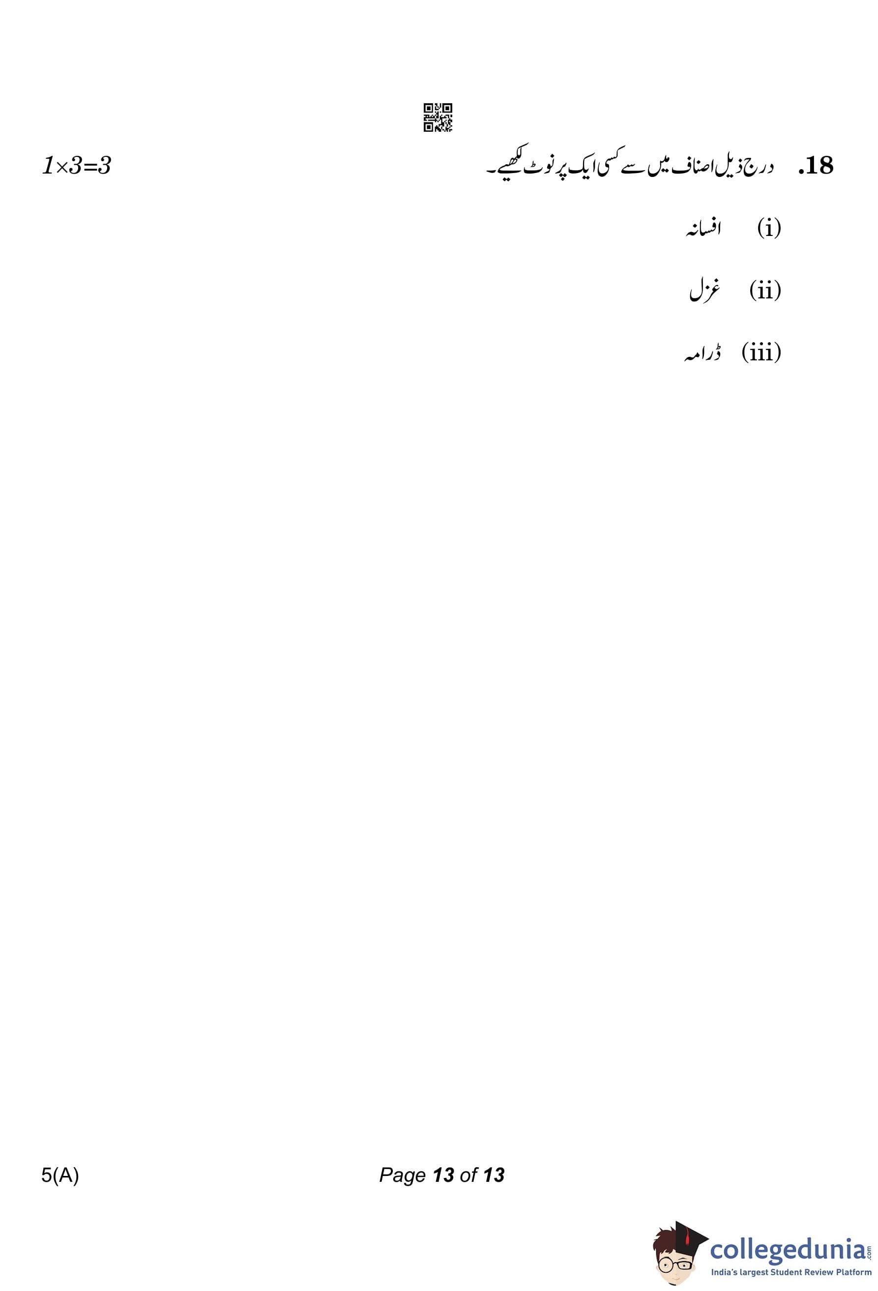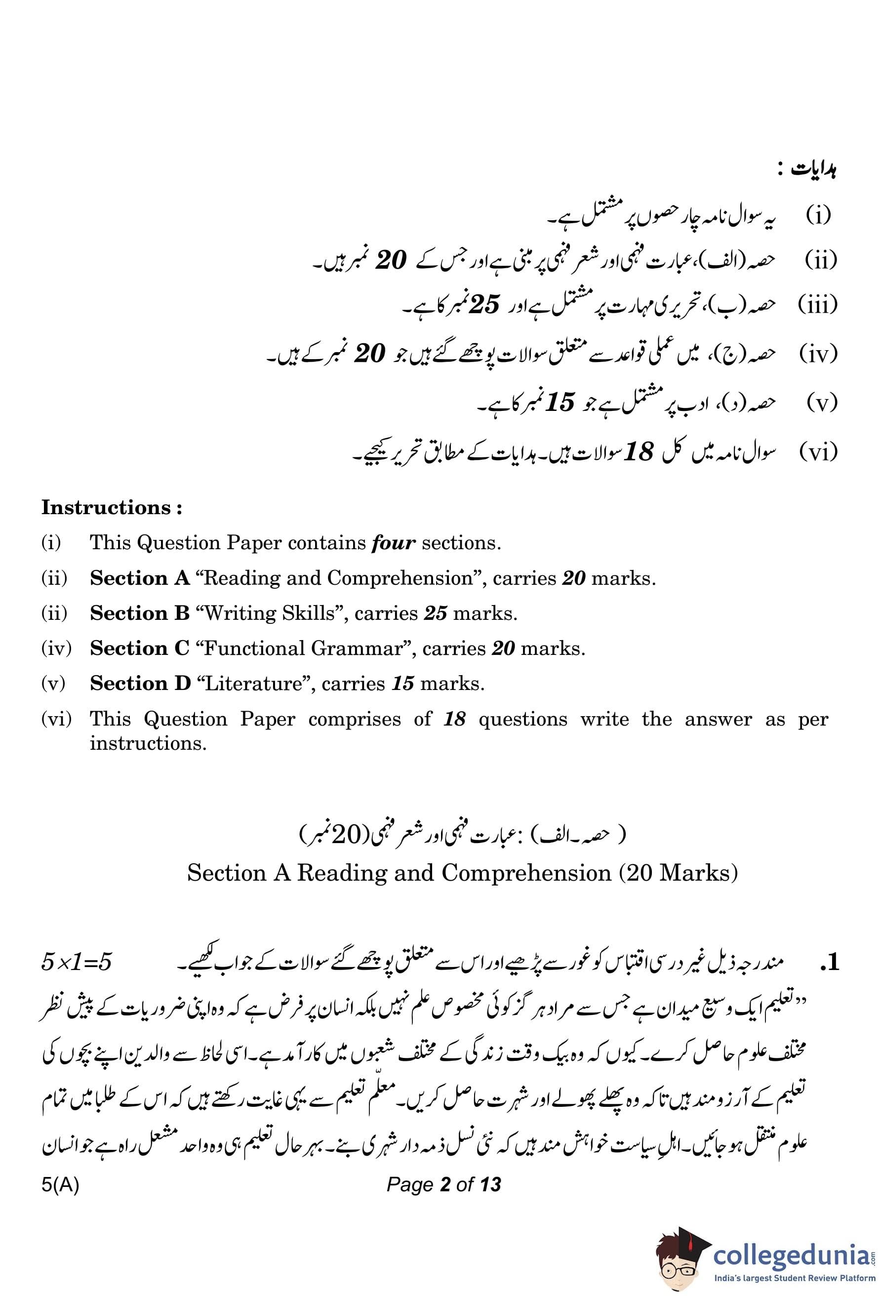 CBSE Class 10 Urdu A Compartment Question Paper 2023 with Answer Key