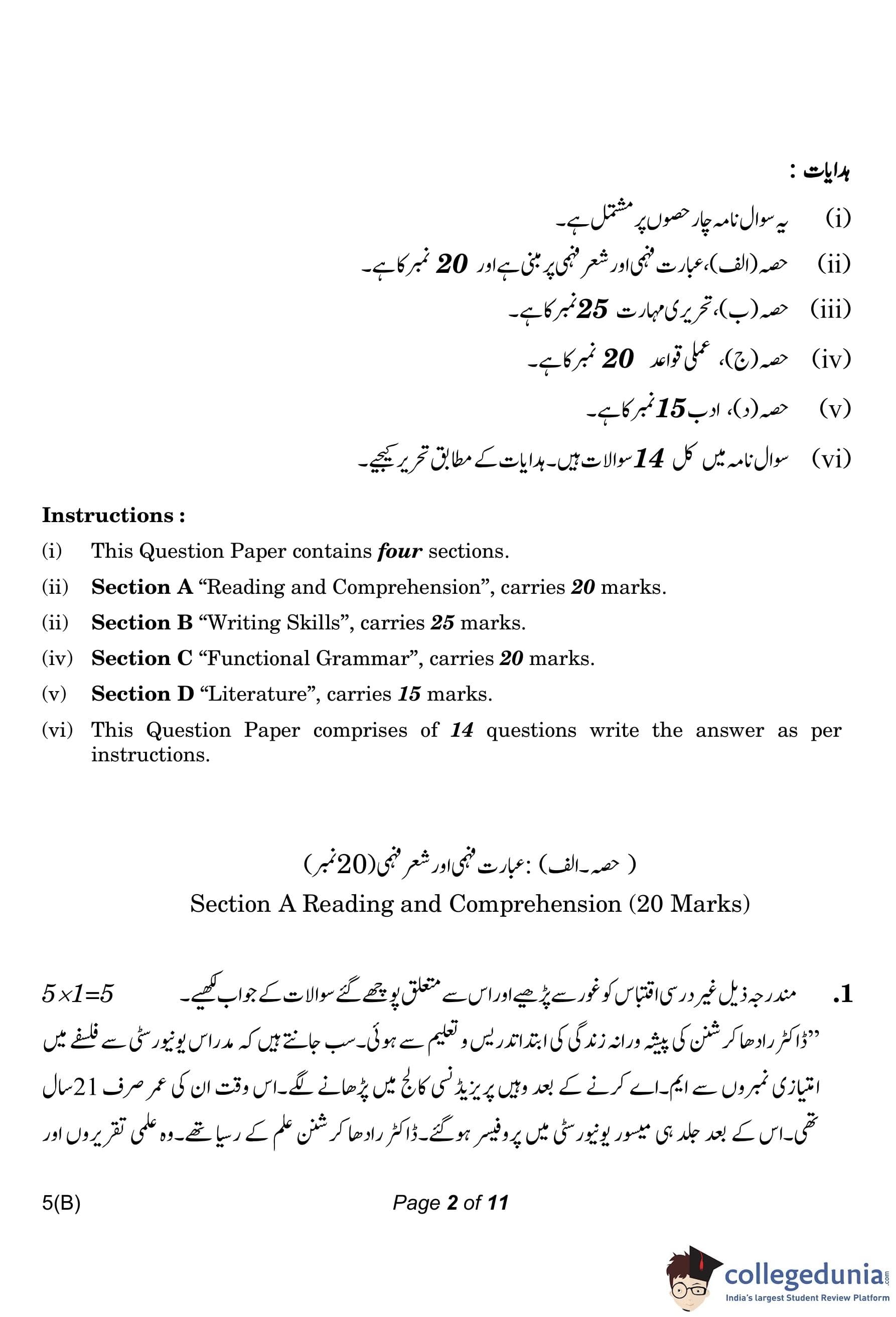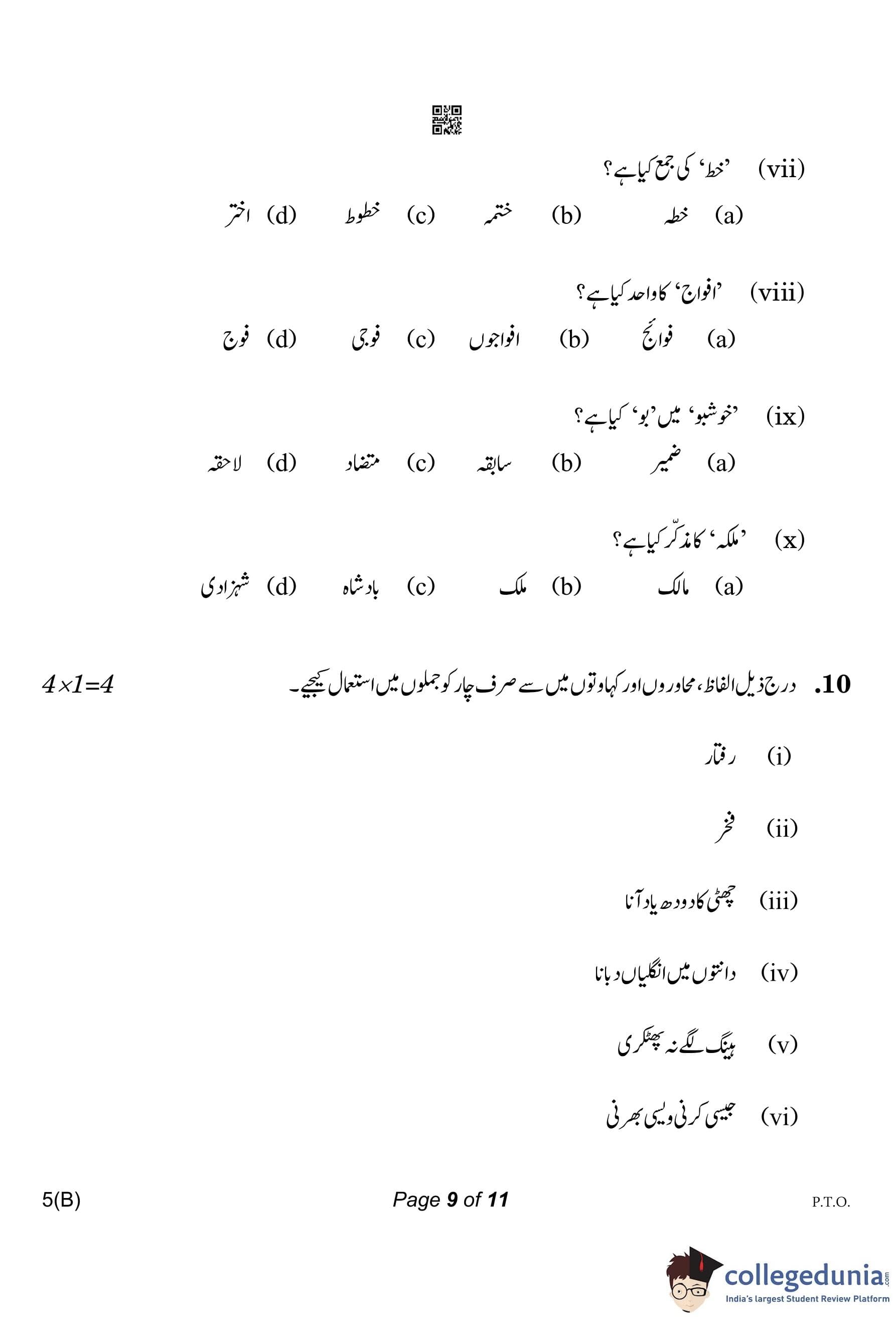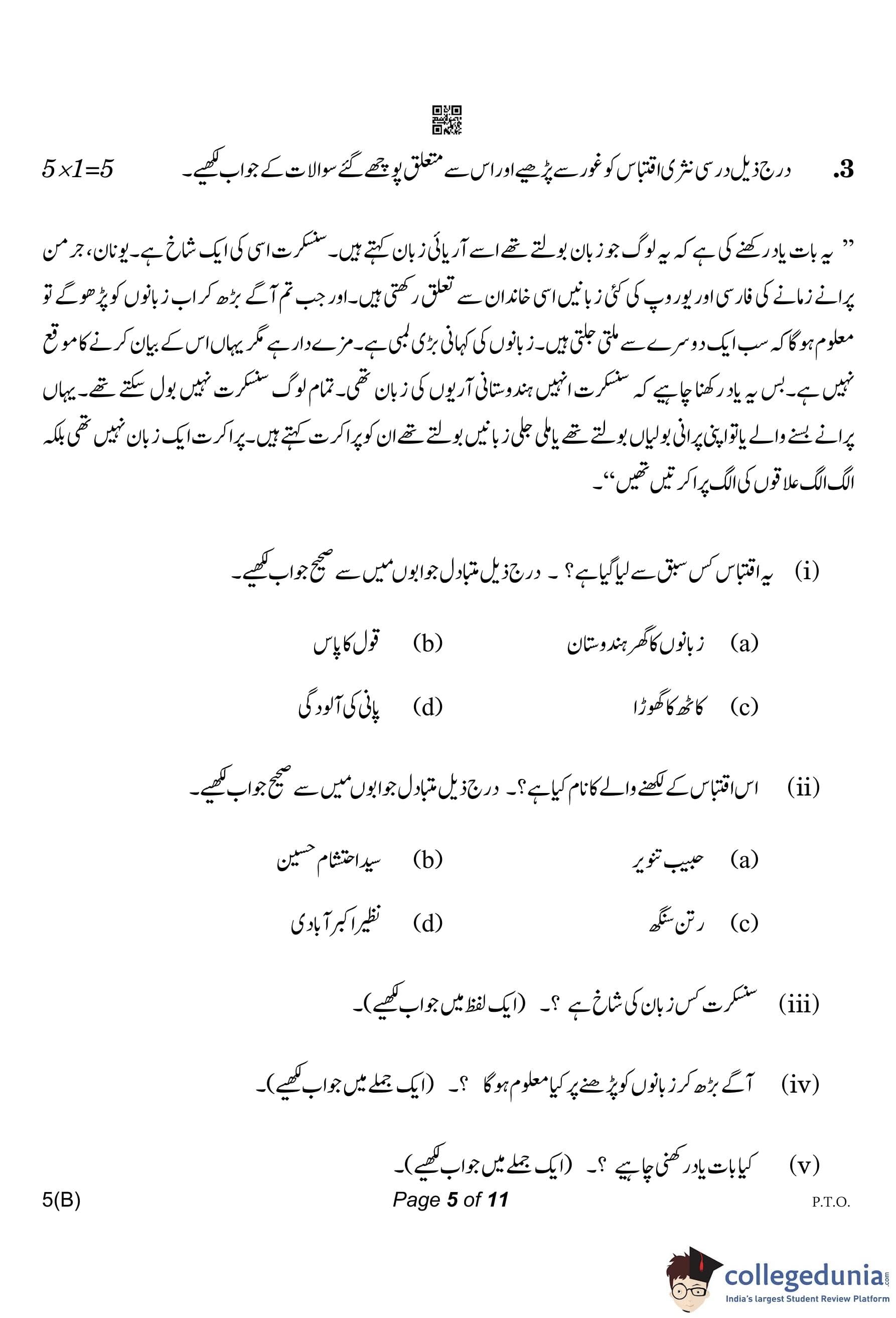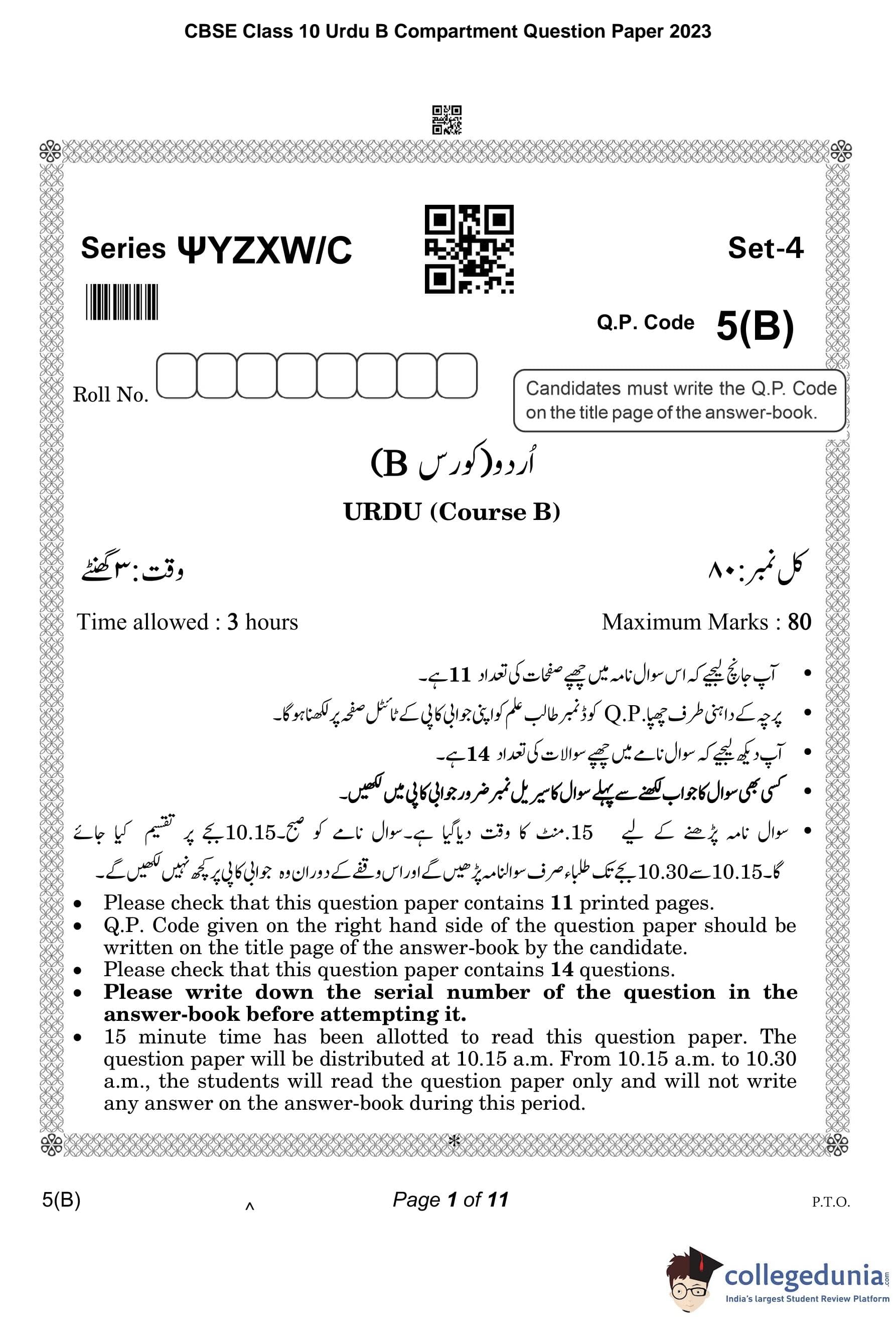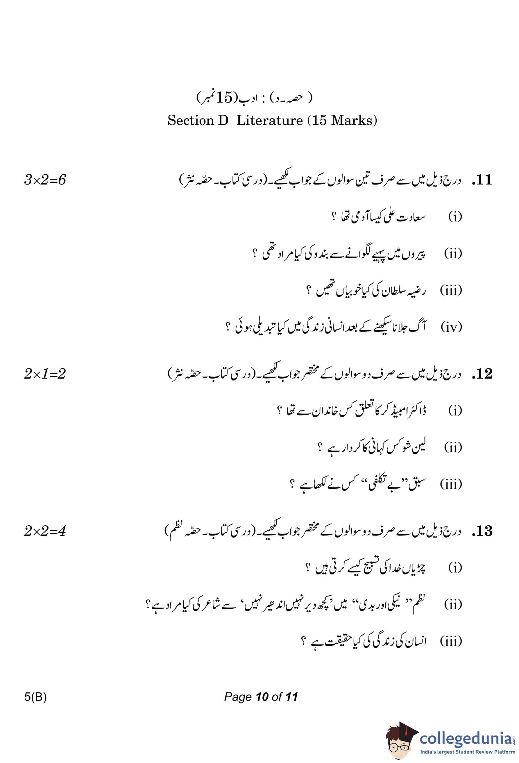 | CBSE Class 10 Urdu B Question Paper 2023 PDF | CBSE Class 10 Urdu B Answer Key 2023 PDF |