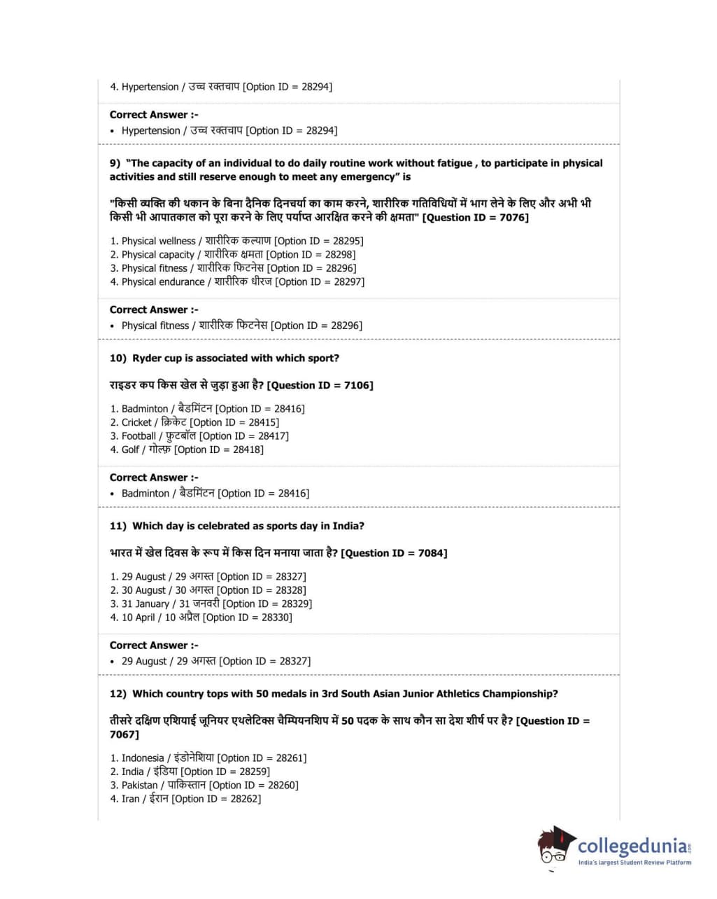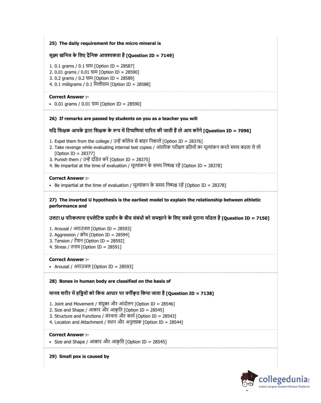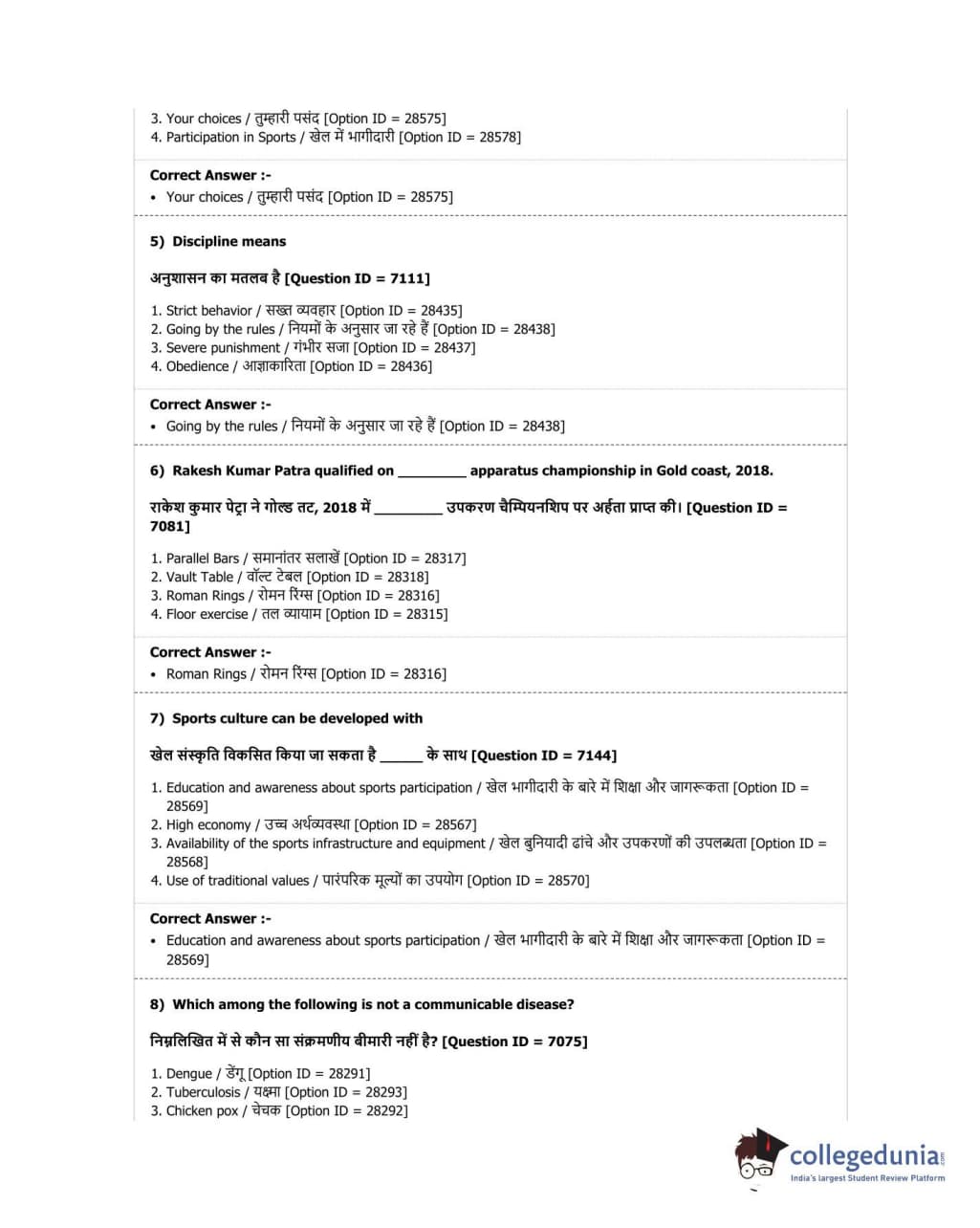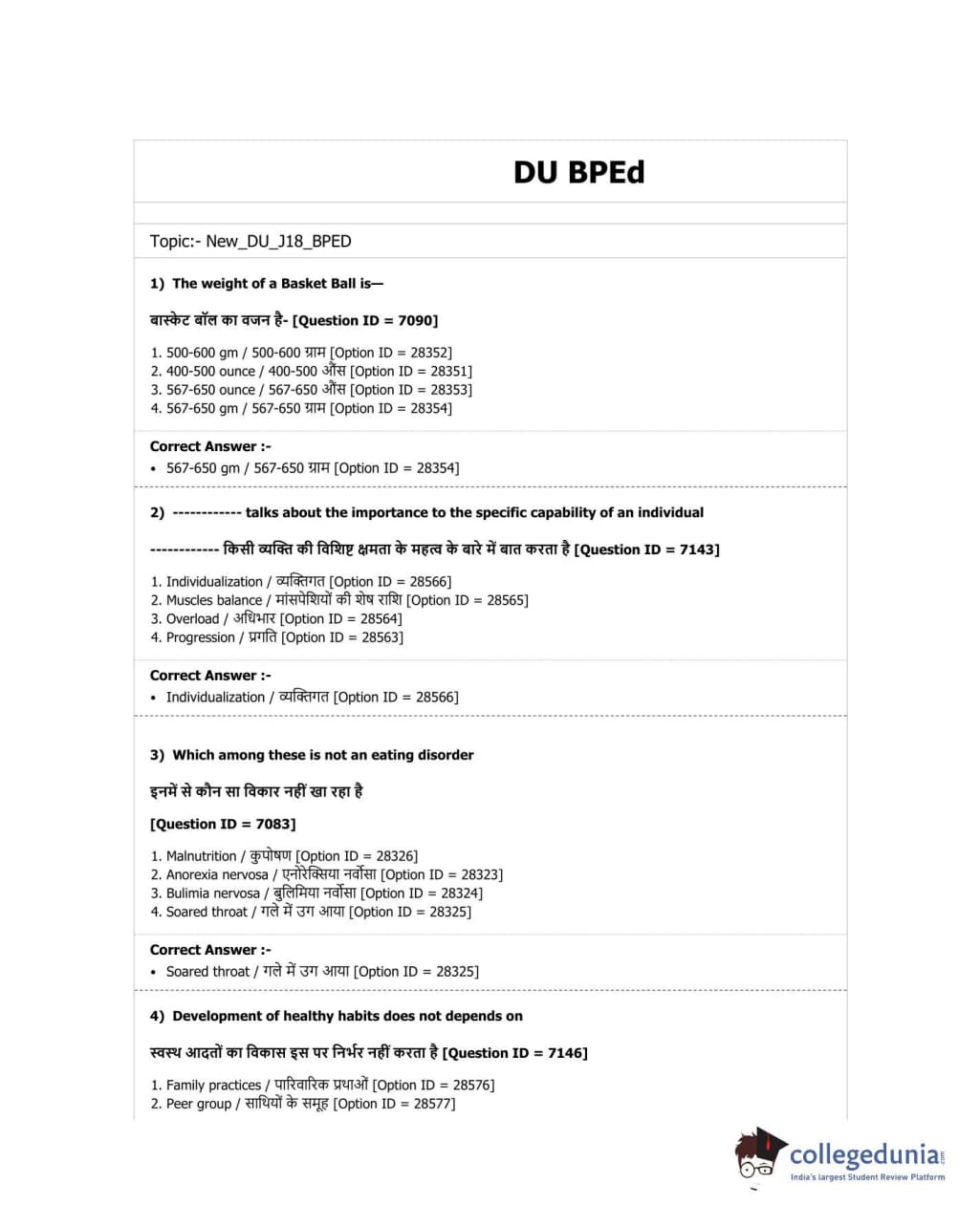DUET 2018 B.P.Ed. Question Paper with Answer Key PDF Shift 2
