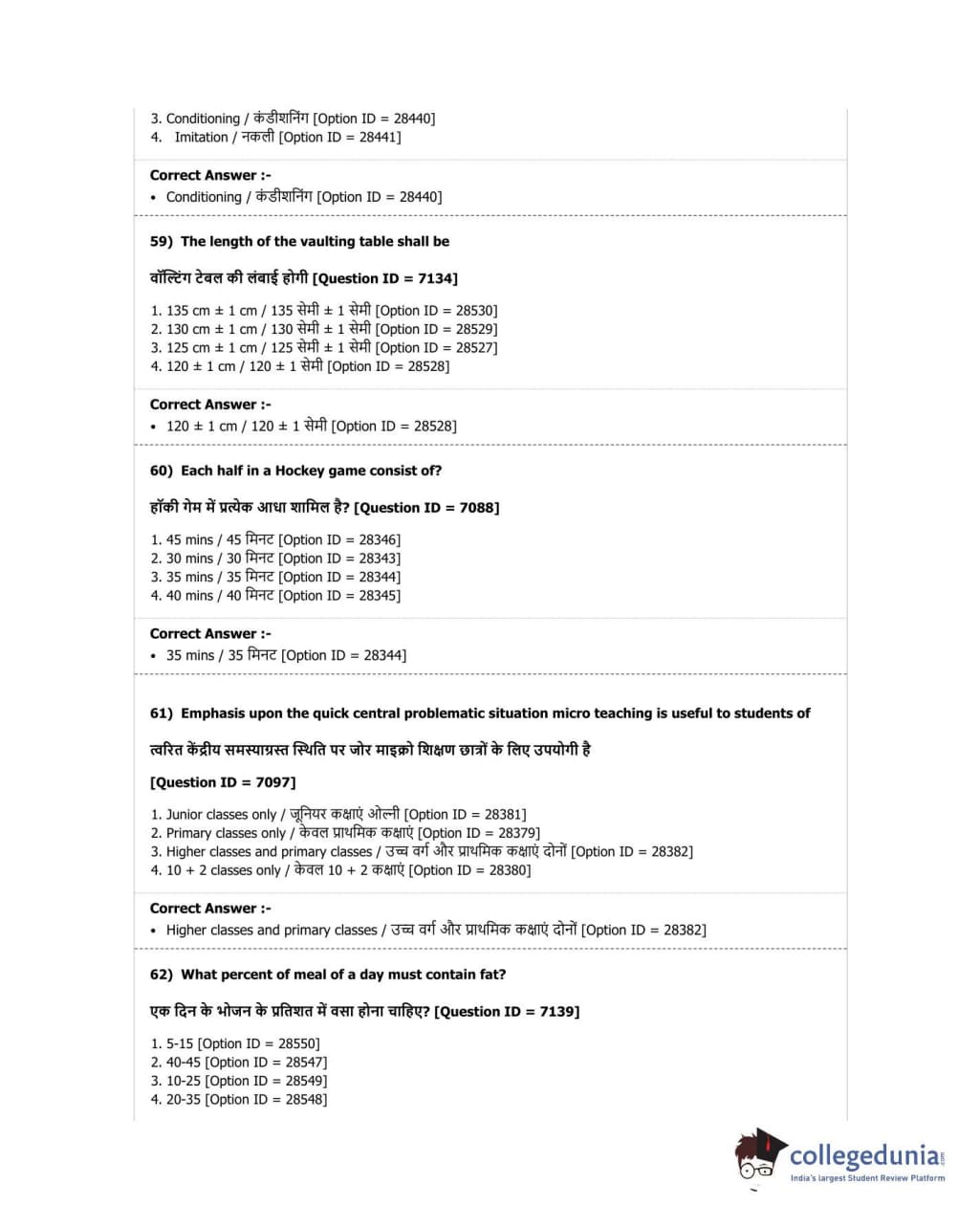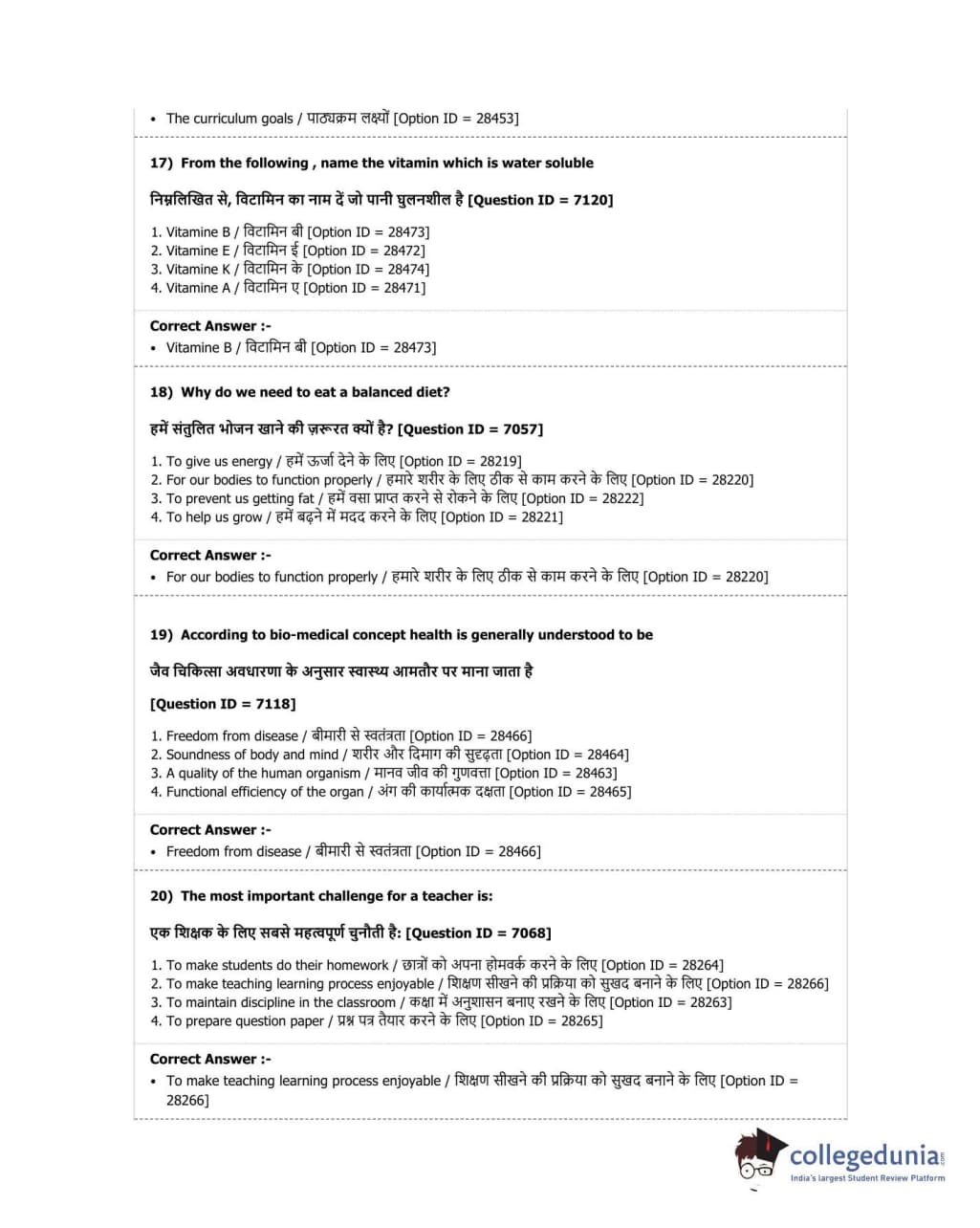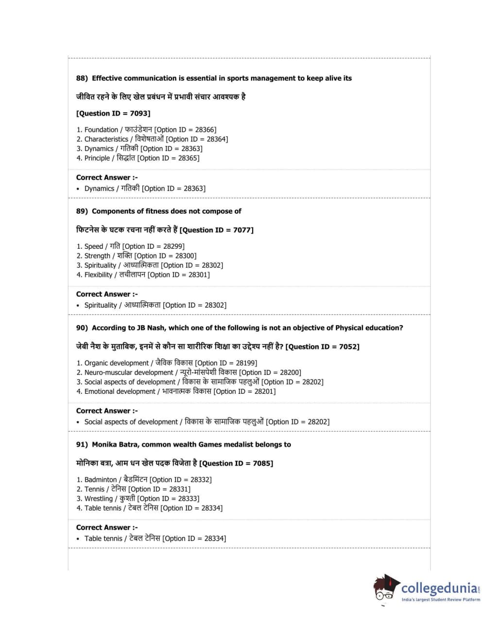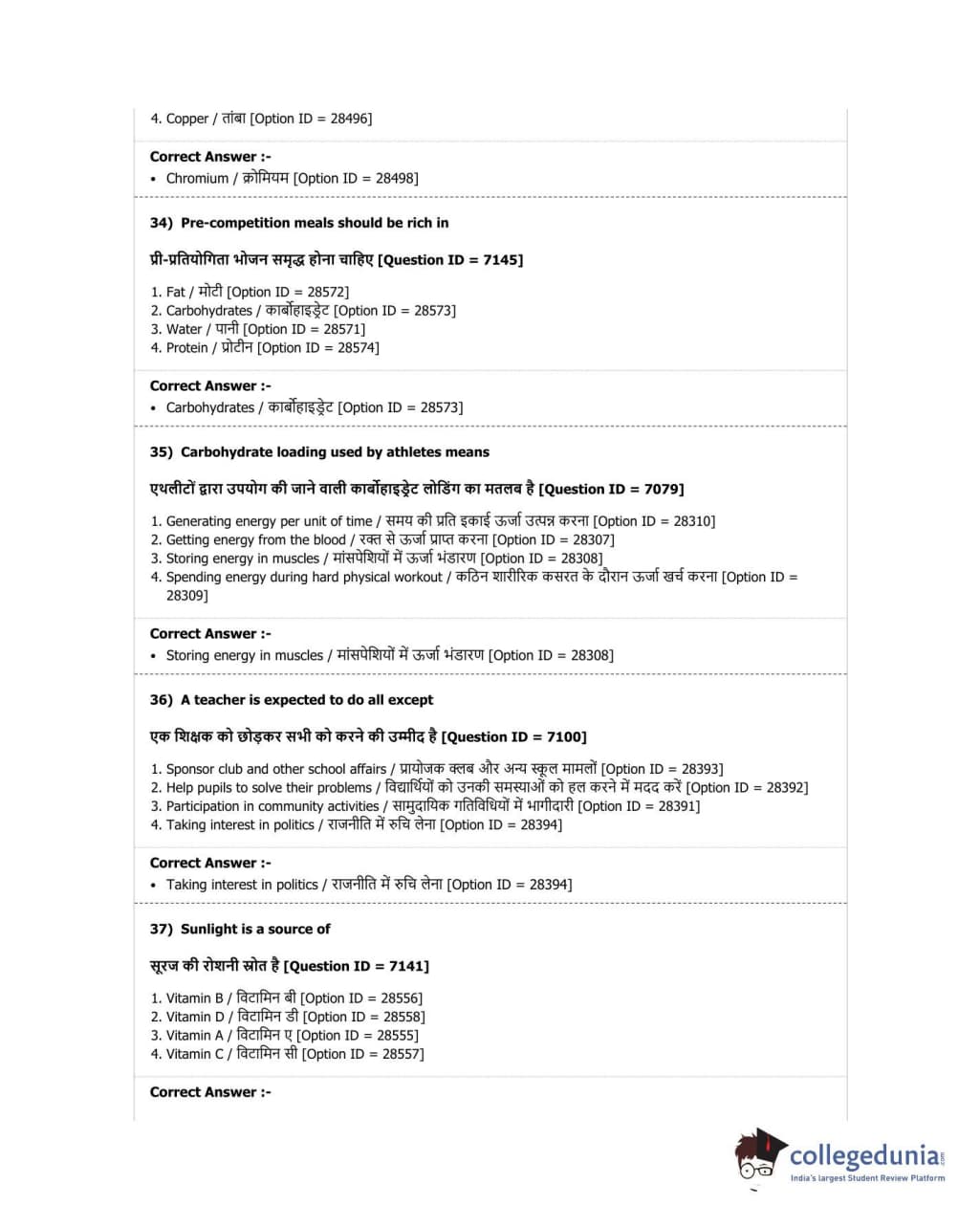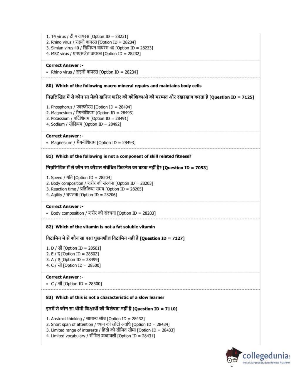 DUET 2018 B.P.Ed. Question Paper with Answer Key PDF Shift 2
