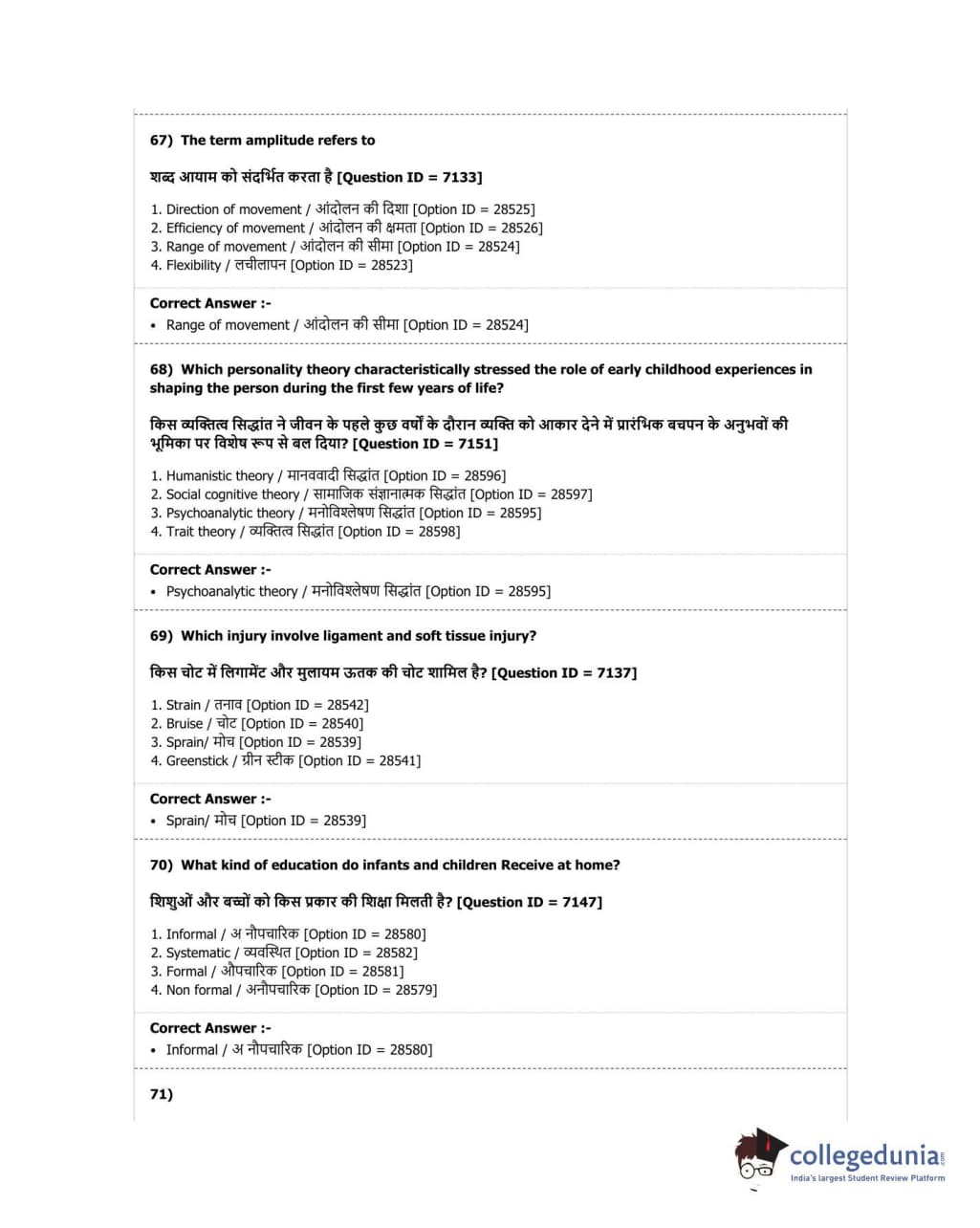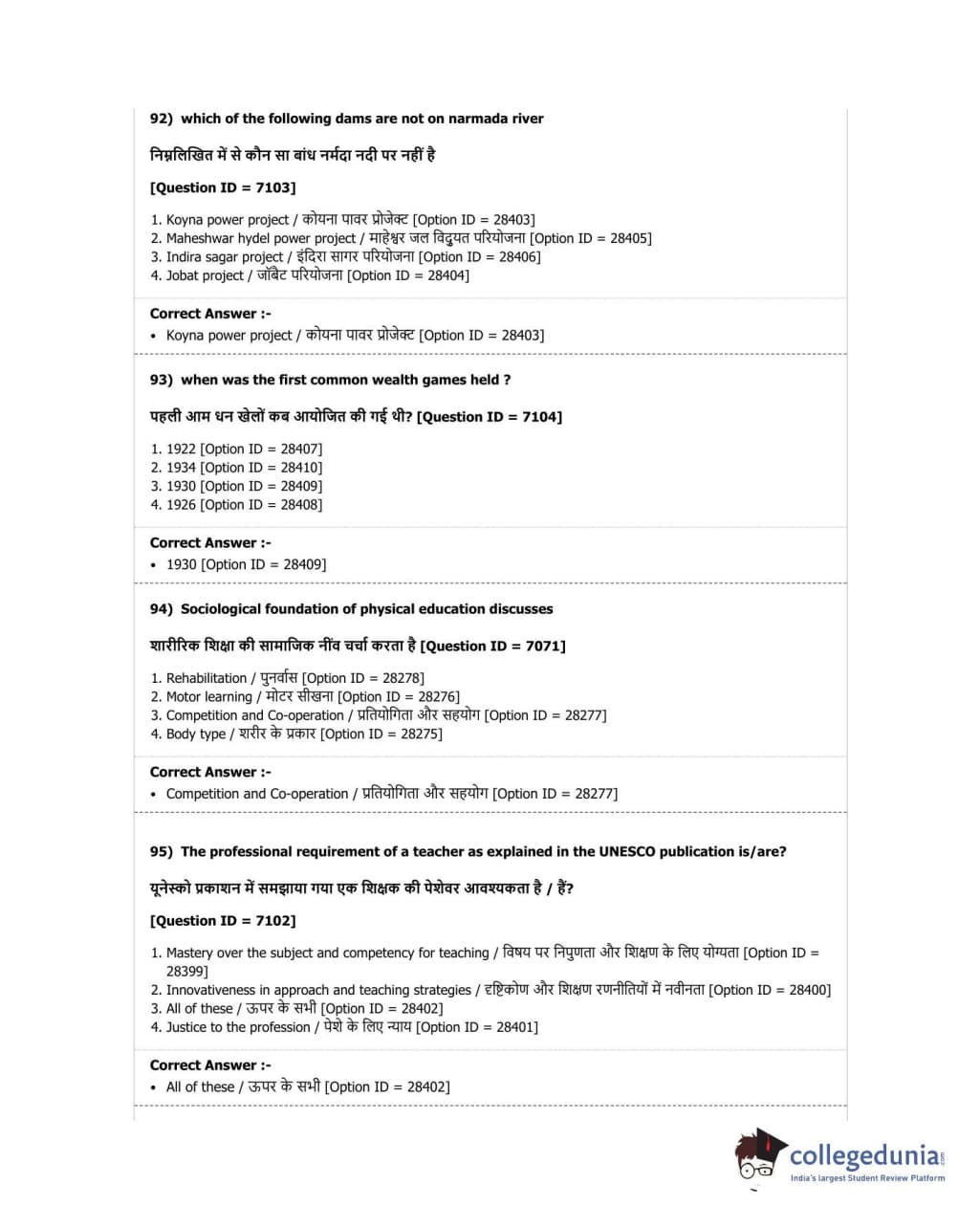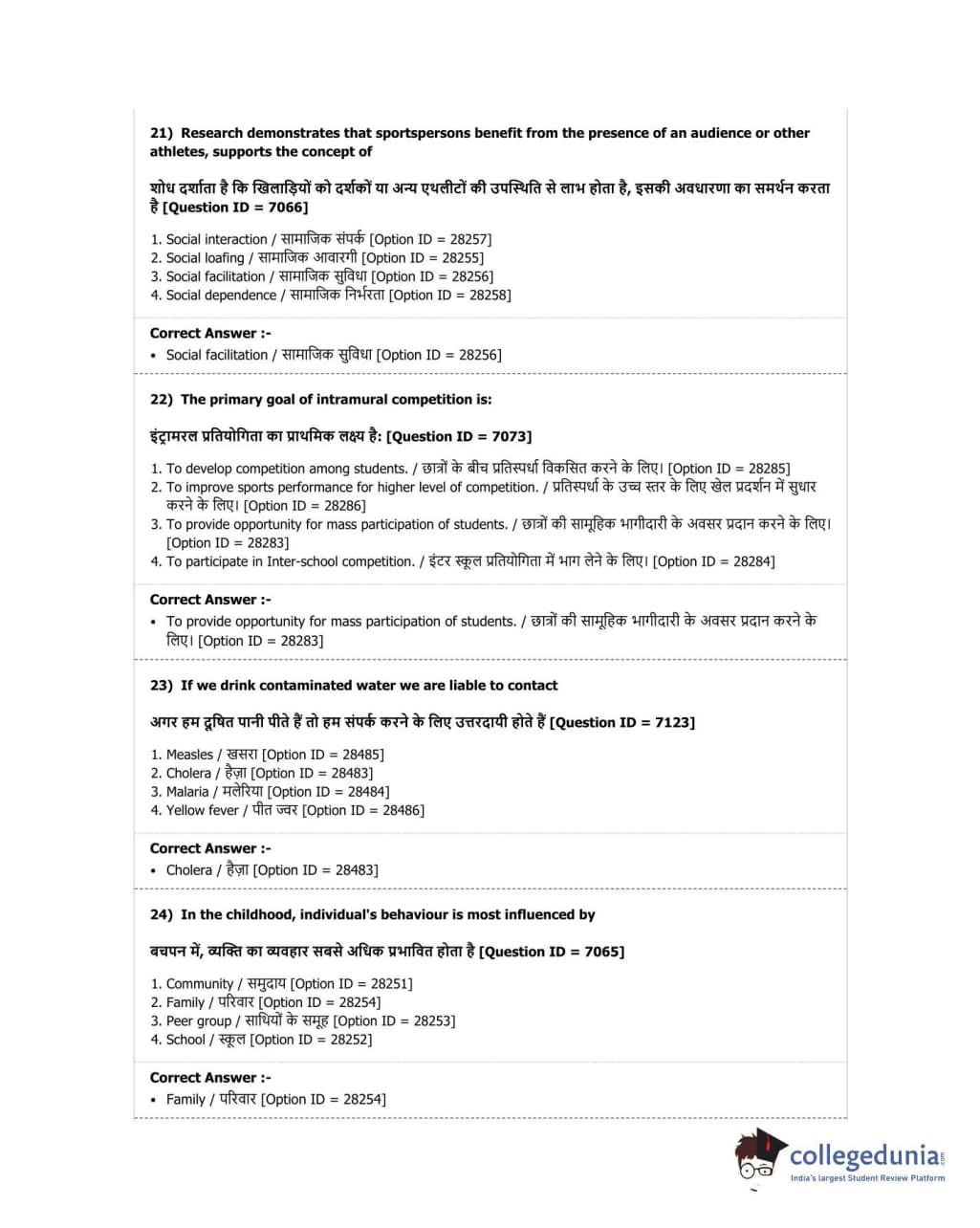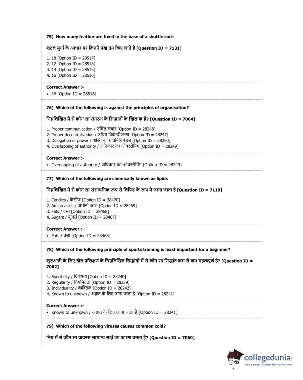 DUET 2018 B.P.Ed. Question Paper with Answer Key PDF Shift 2