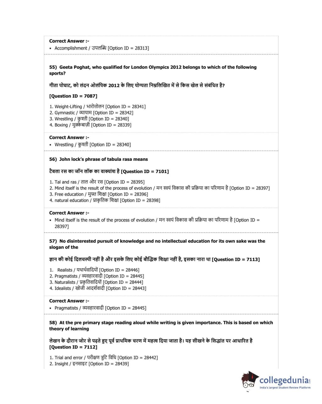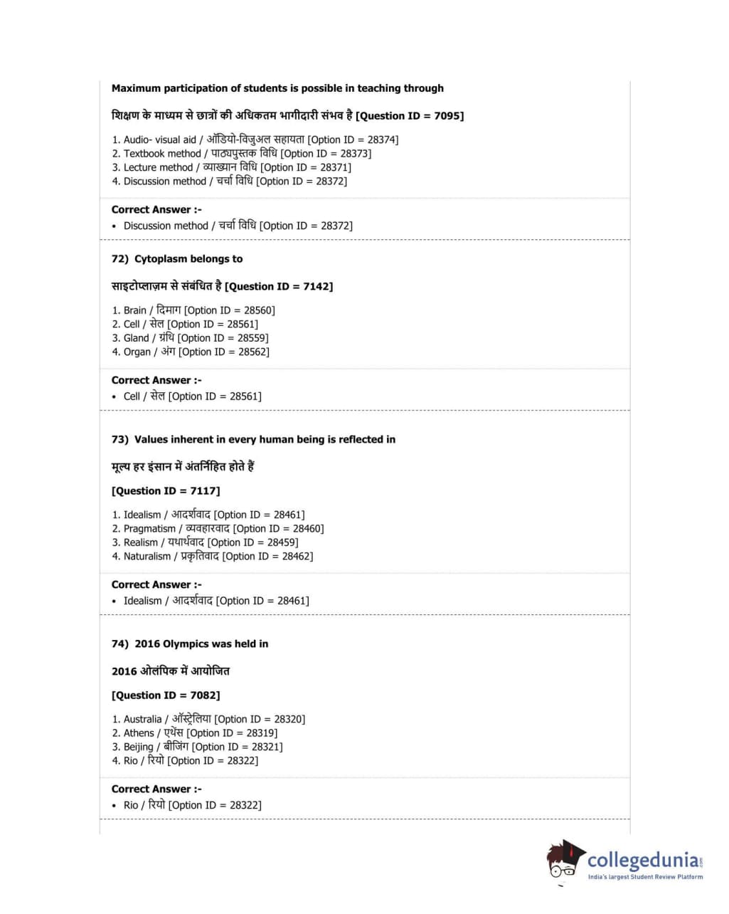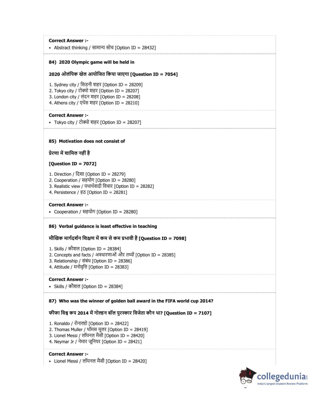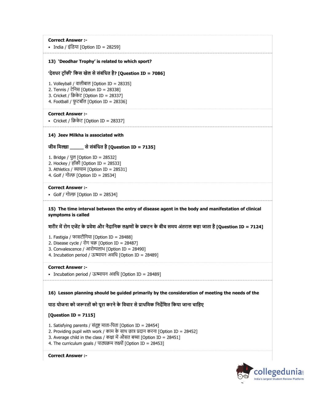 | DUET Subject | Question Paper with Answer Key PDF |
