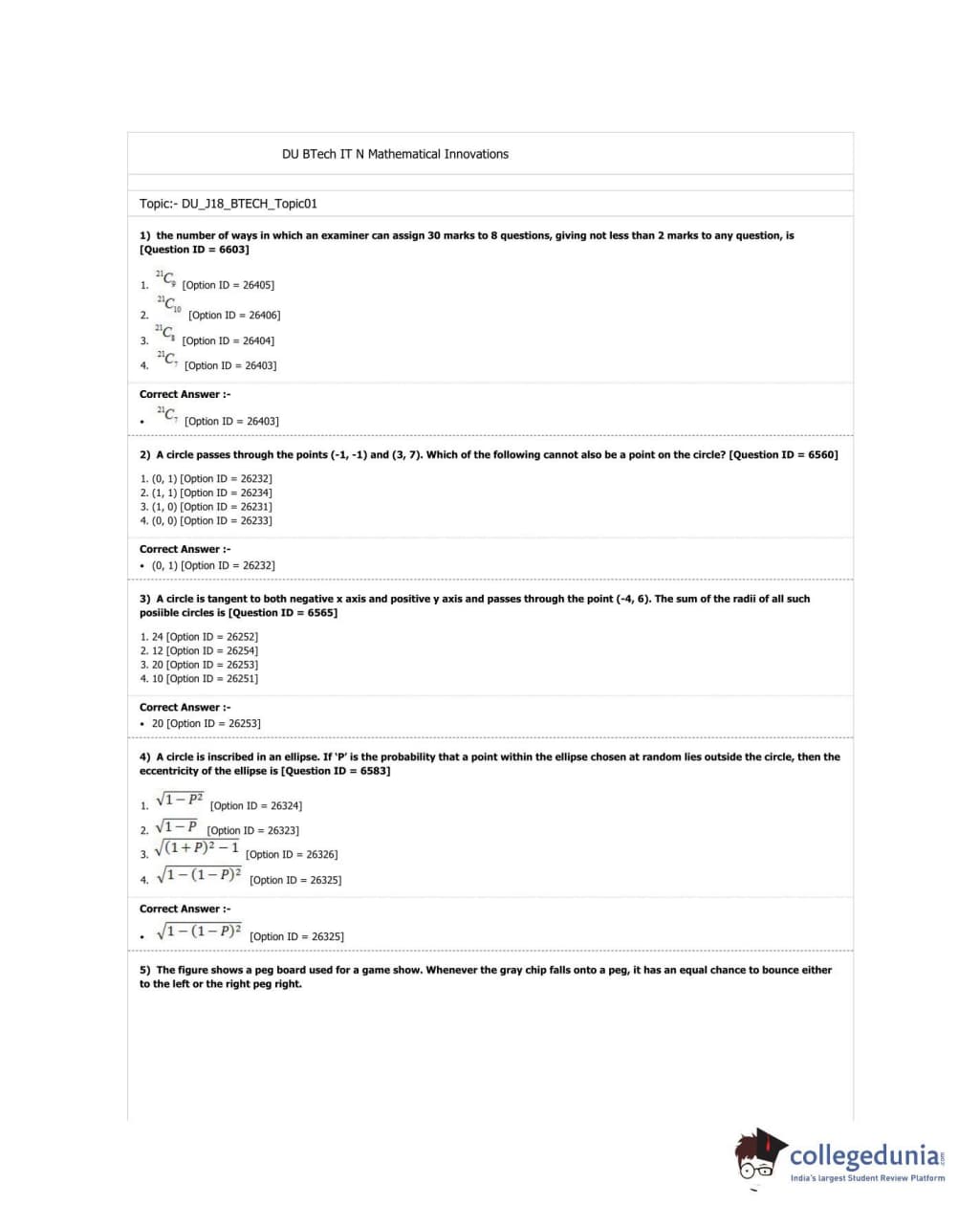 DUET 2018 B.Tech. (IT & Mathematical Innovations) (Cluster Innovation Centre) Question paper with answer key pdf conducted on June 21, 2018 in Shift 3 is available for download. The exam was successfully organized by University of Delhi. The question paper comprised a total of 100 questions.