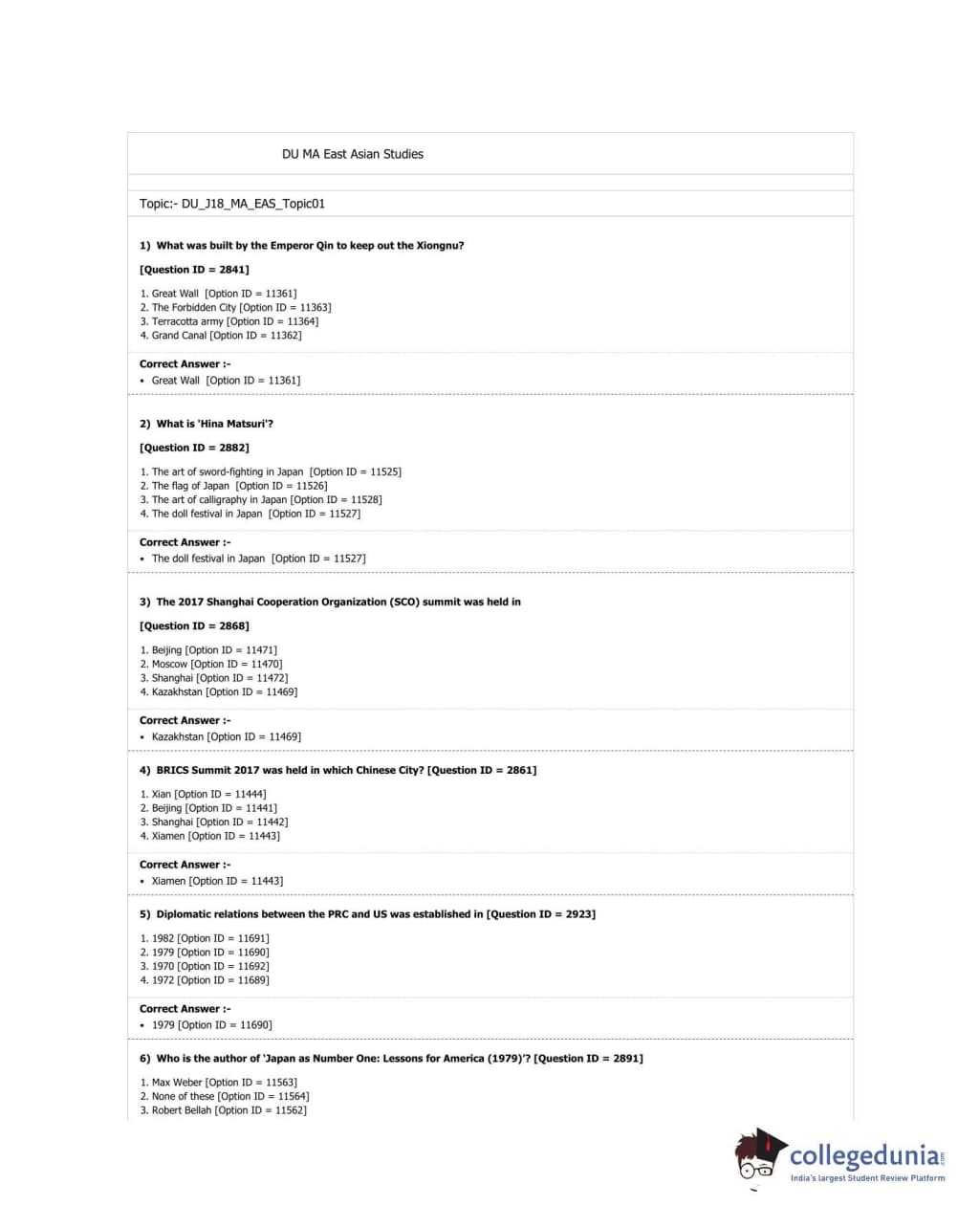 DUET 2018 M.A. East Asian Studies Question paper with answer key pdf conducted on June 19, 2018 in Shift 3 is available for download. The exam was successfully organized by University of Delhi. The question paper comprised a total of 100 questions.