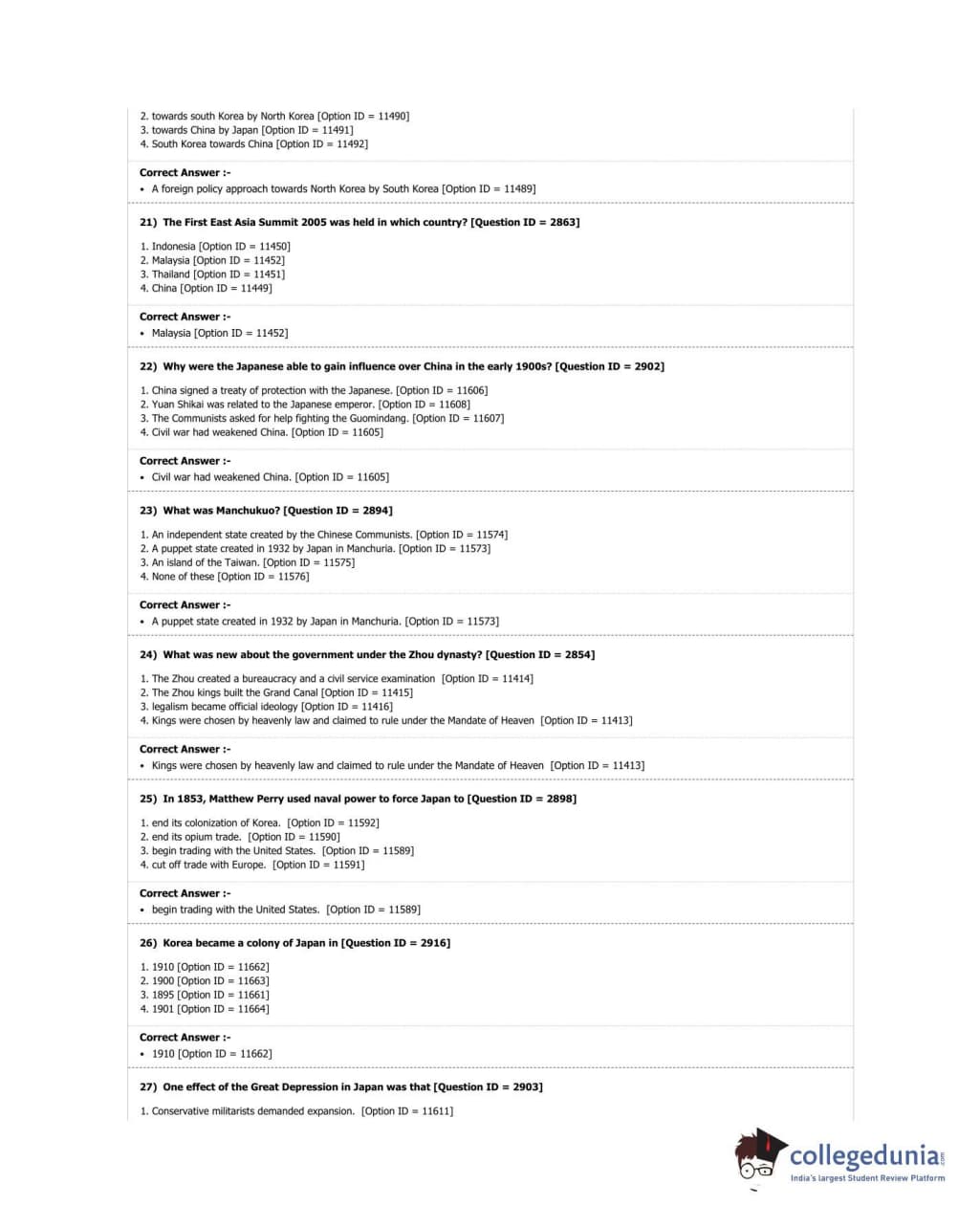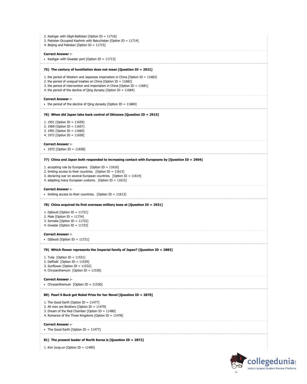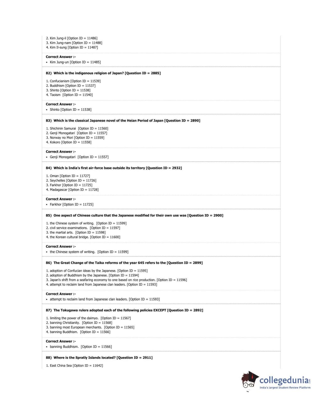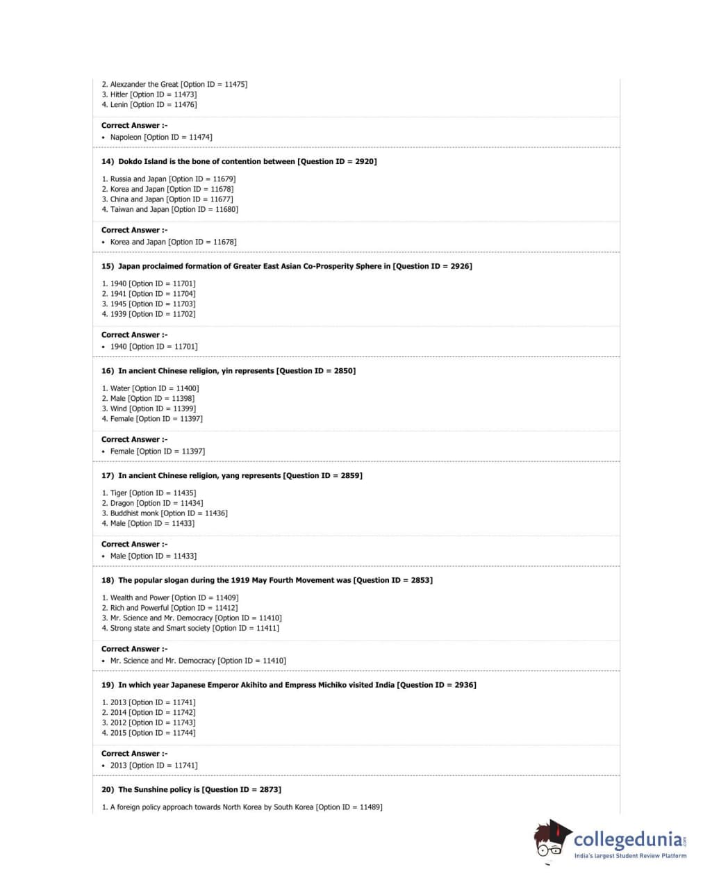 DUET 2018 M.A. East Asian Studies Question Paper with Answer Key PDF Shift 3