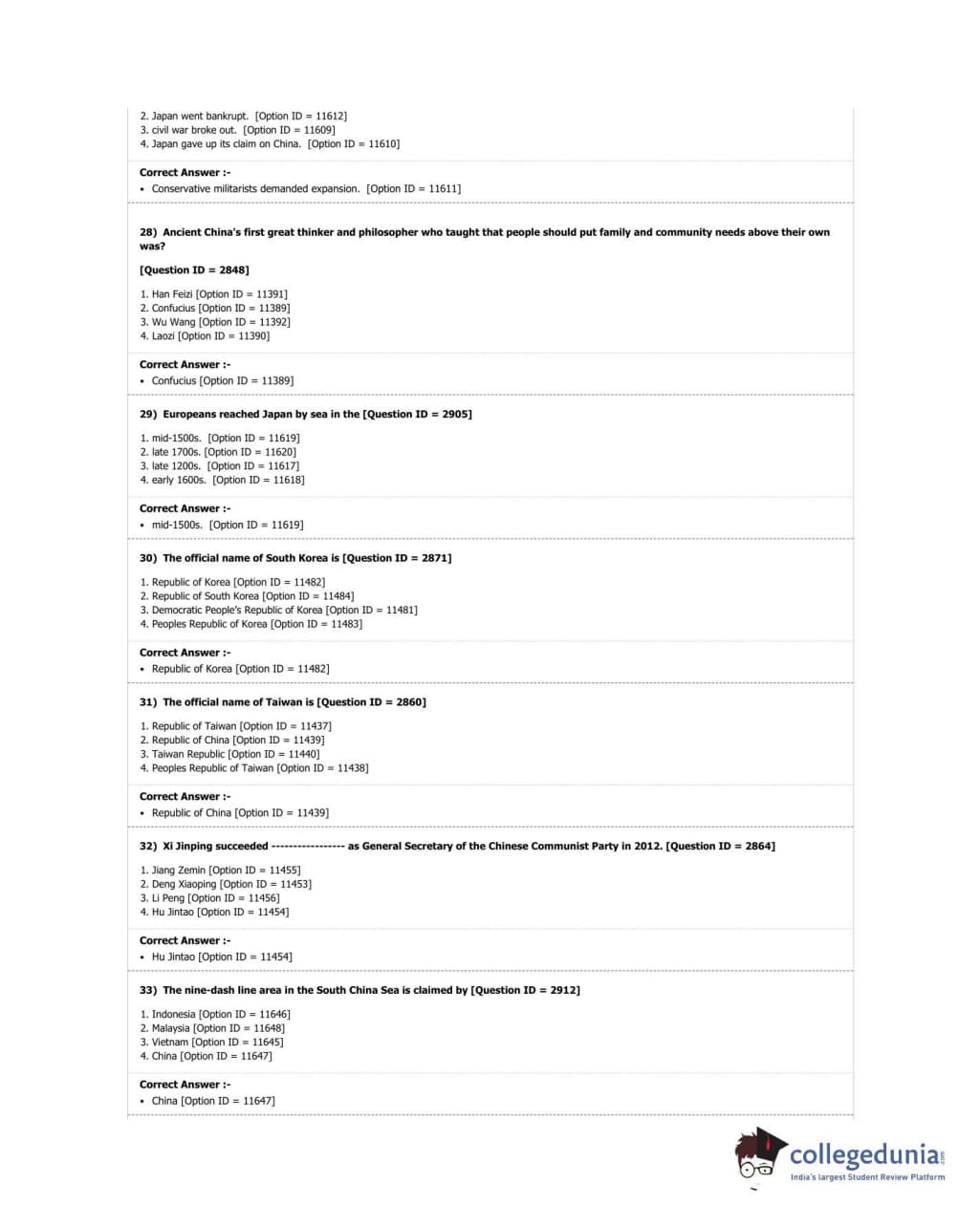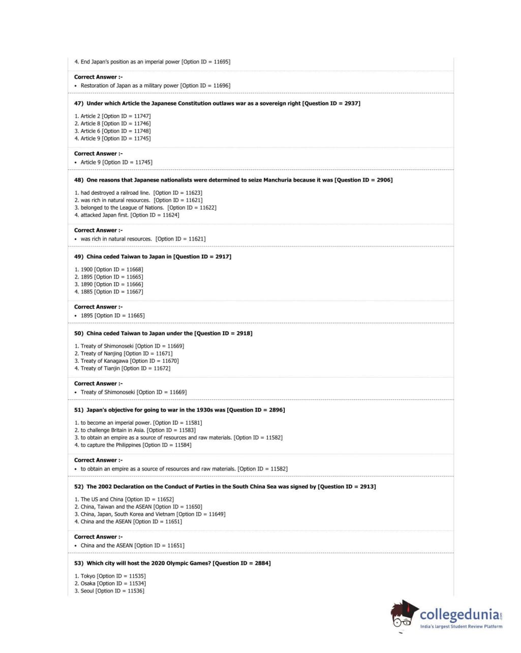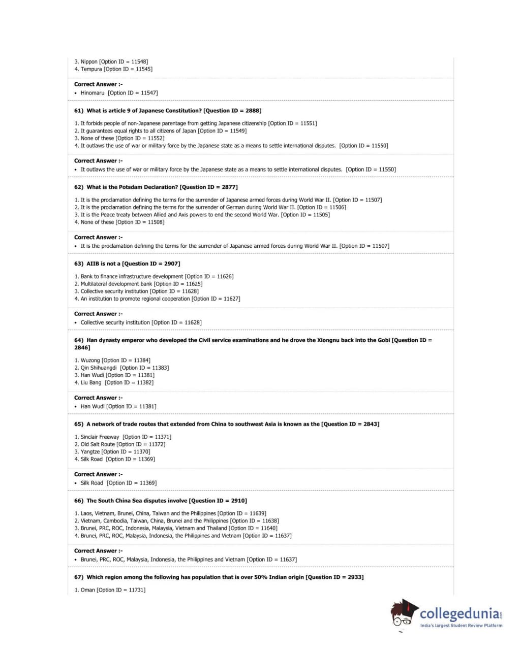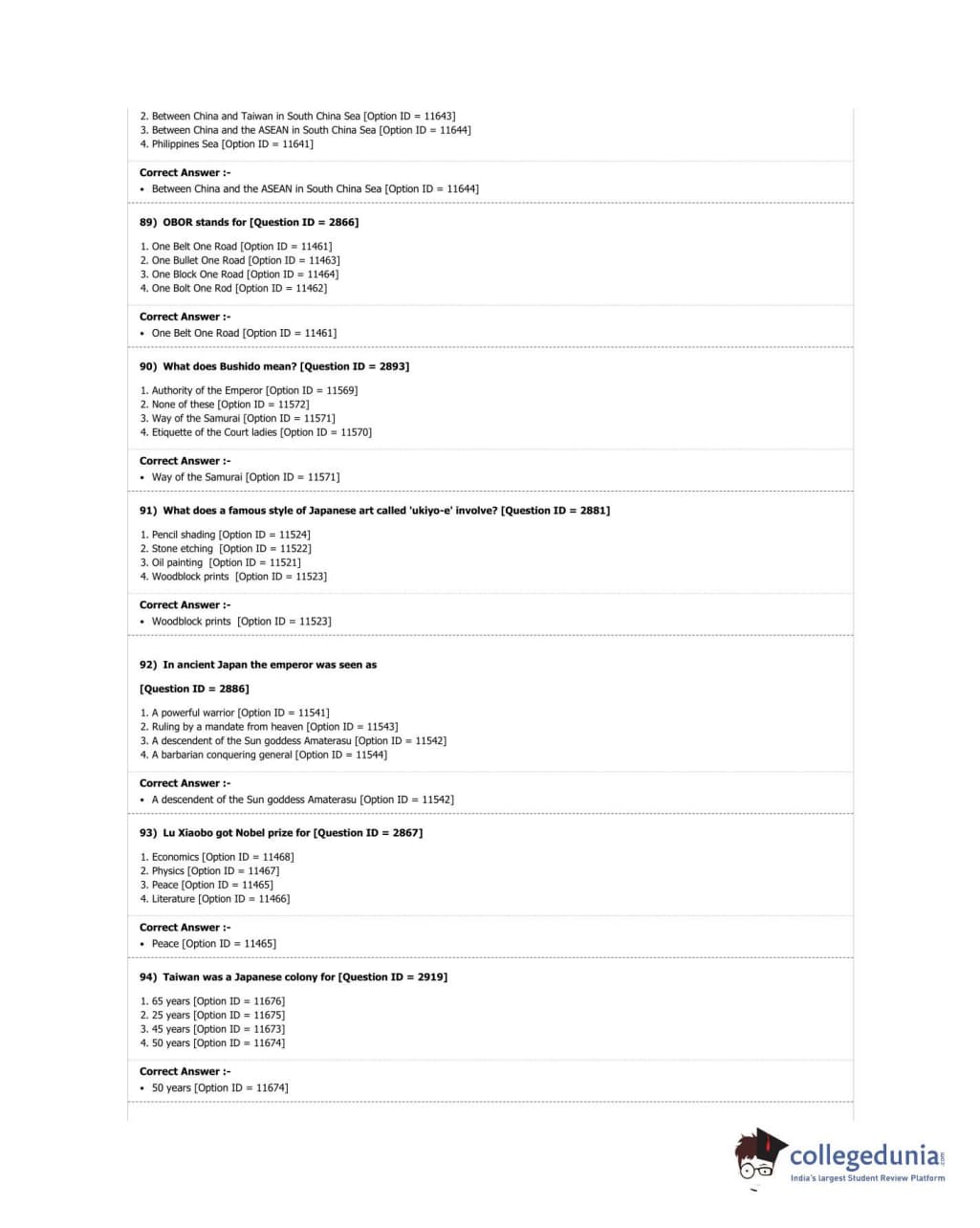 DUET 2018 M.A. East Asian Studies Question Paper with Answer Key PDF Shift 3