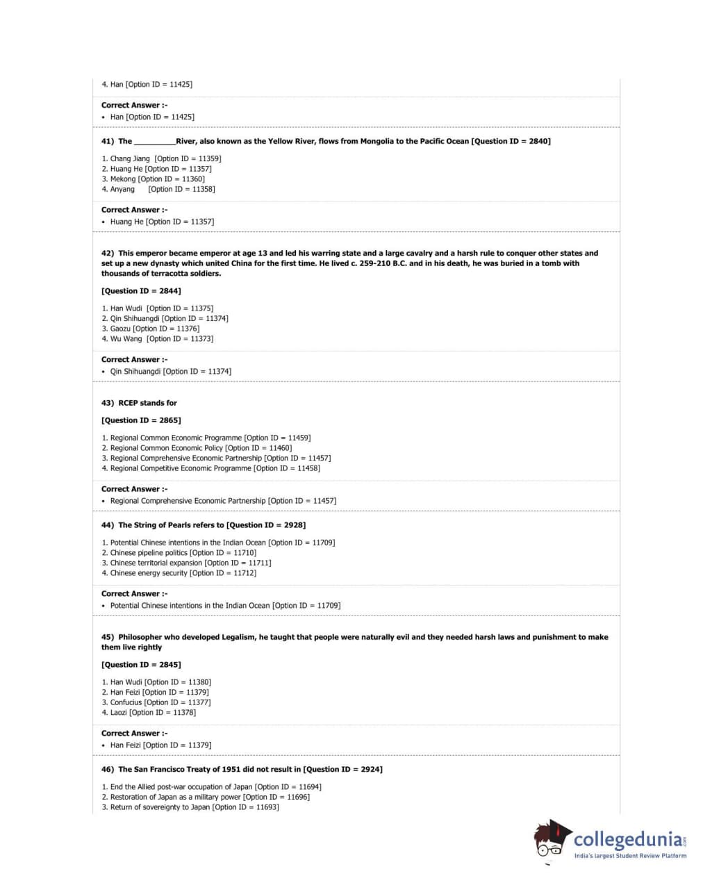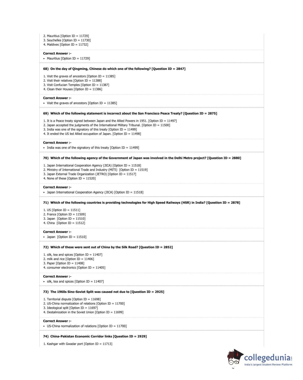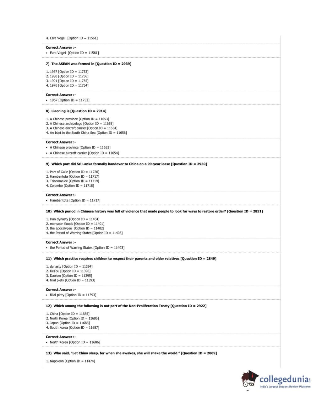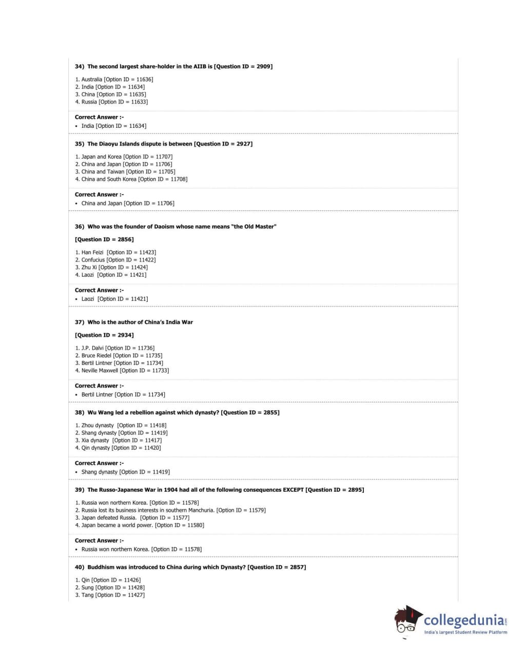DUET 2018 M.A. East Asian Studies Question Paper with Answer Key PDF Shift 3