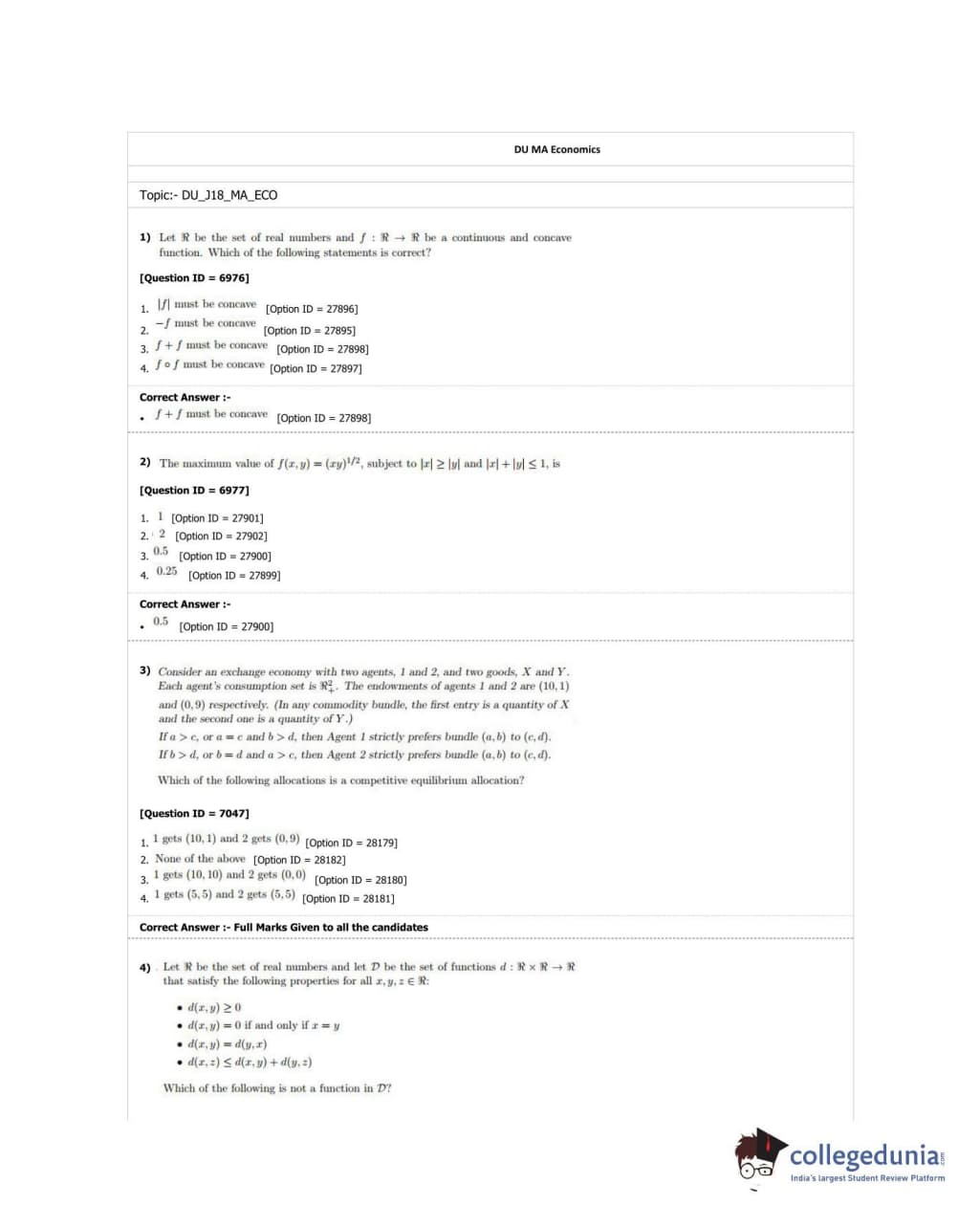 DUET 2018 M.A. Economics Question paper with answer key pdf conducted on June 19, 2018 in Shift 1 is available for download. The exam was successfully organized by University of Delhi. The question paper comprised a total of 50 questions.