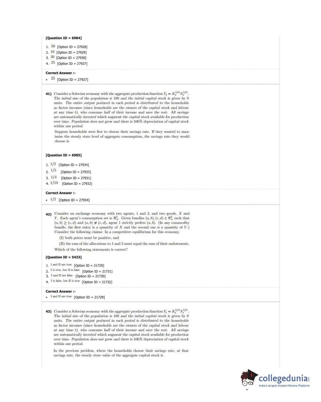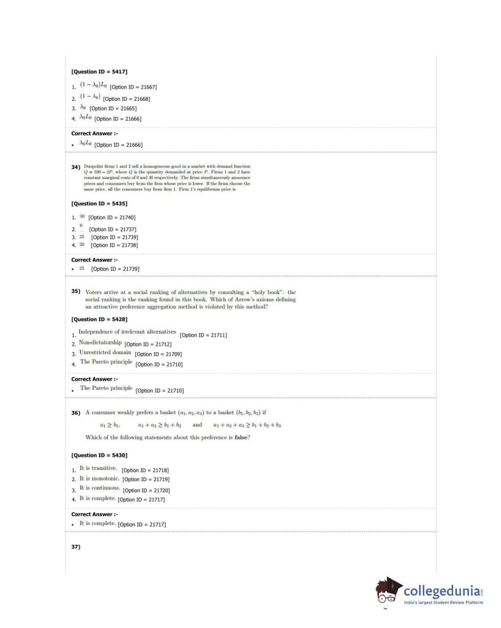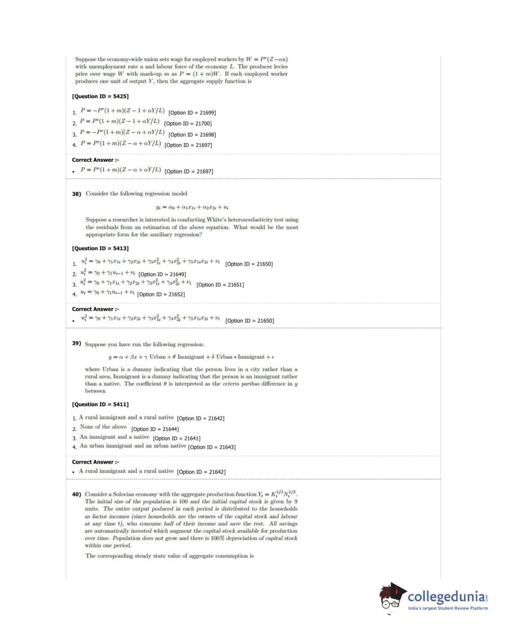 DUET 2018 M.A. Economics Question Paper with Answer Key PDF Shift 1
