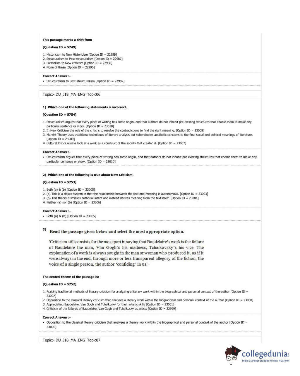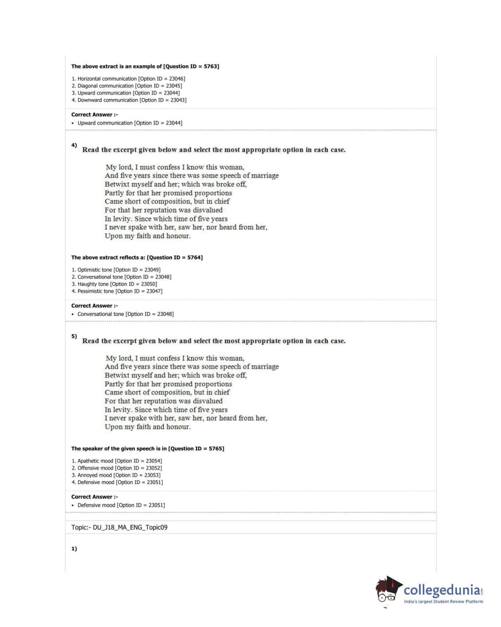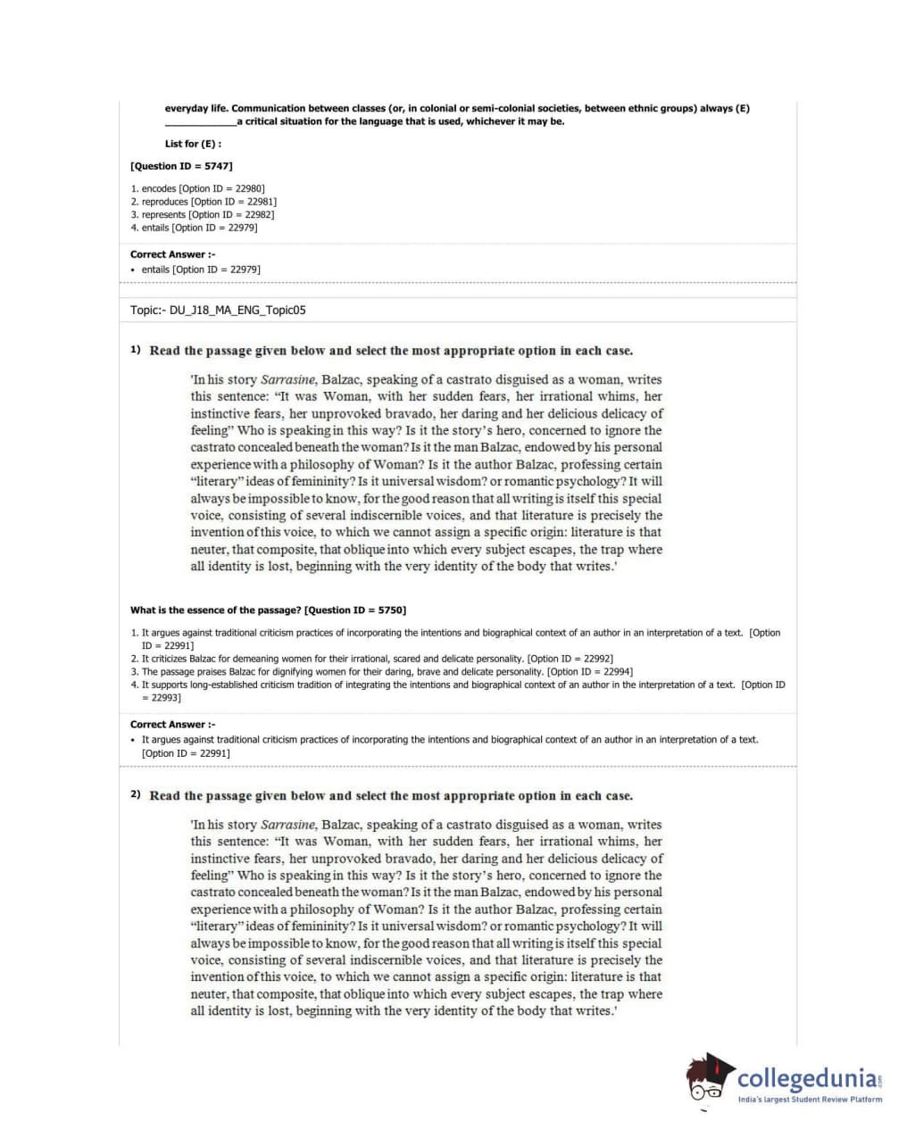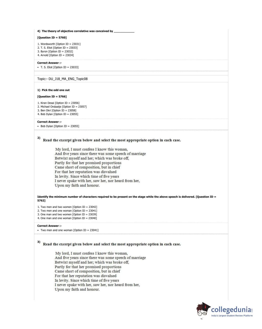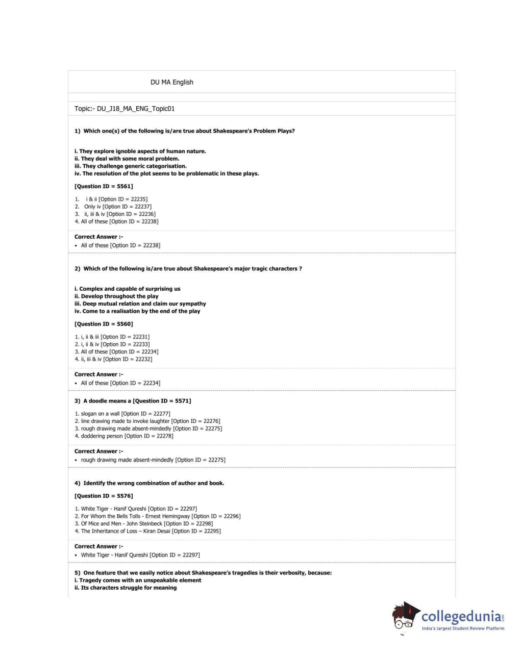 DUET 2018 M.A. English Question paper with answer key pdf conducted on June 20, 2018 in Shift 1 is available for download. The exam was successfully organized by University of Delhi. The question paper comprised a total of 100 questions.