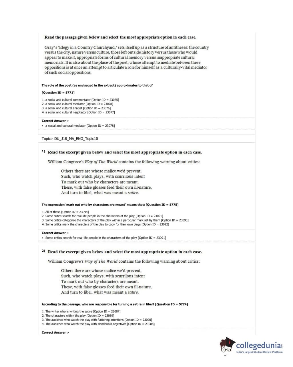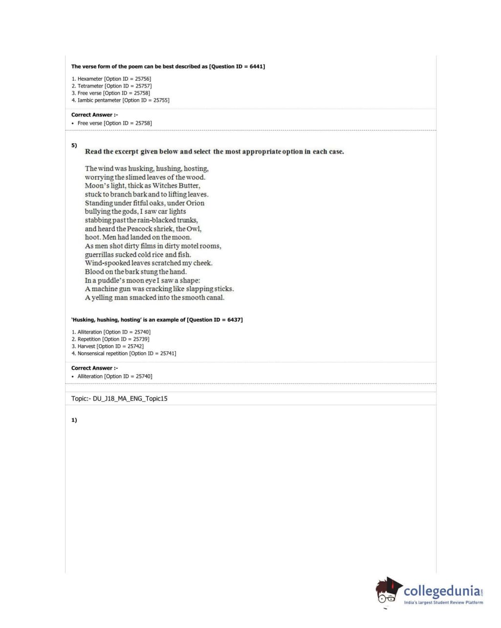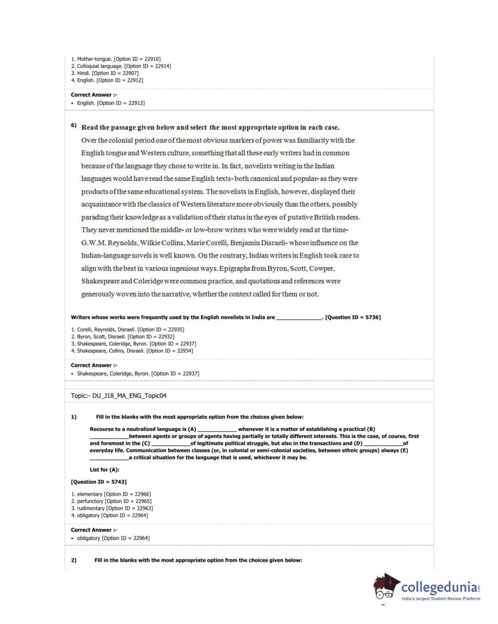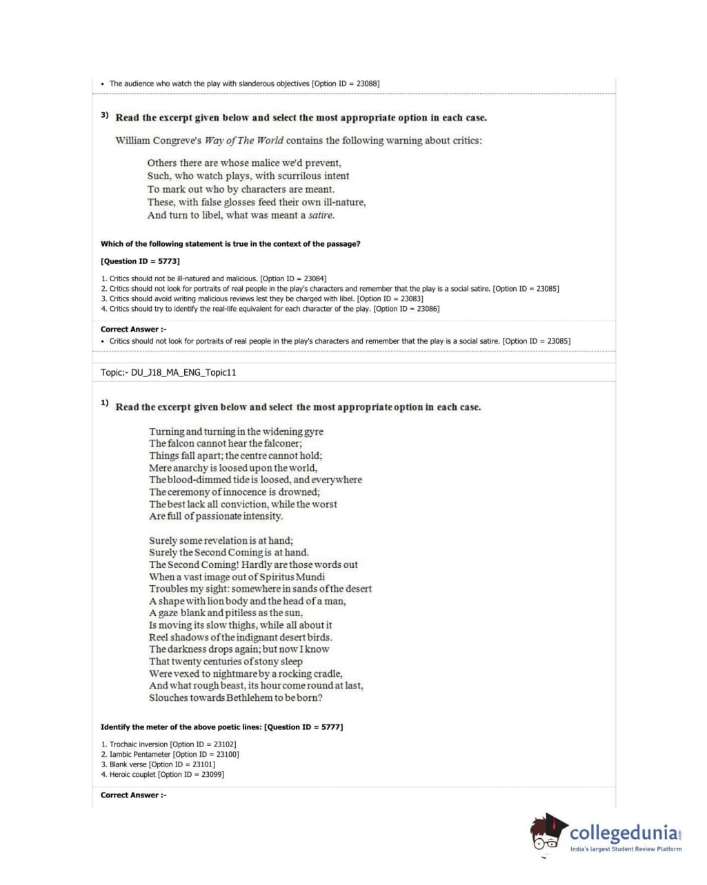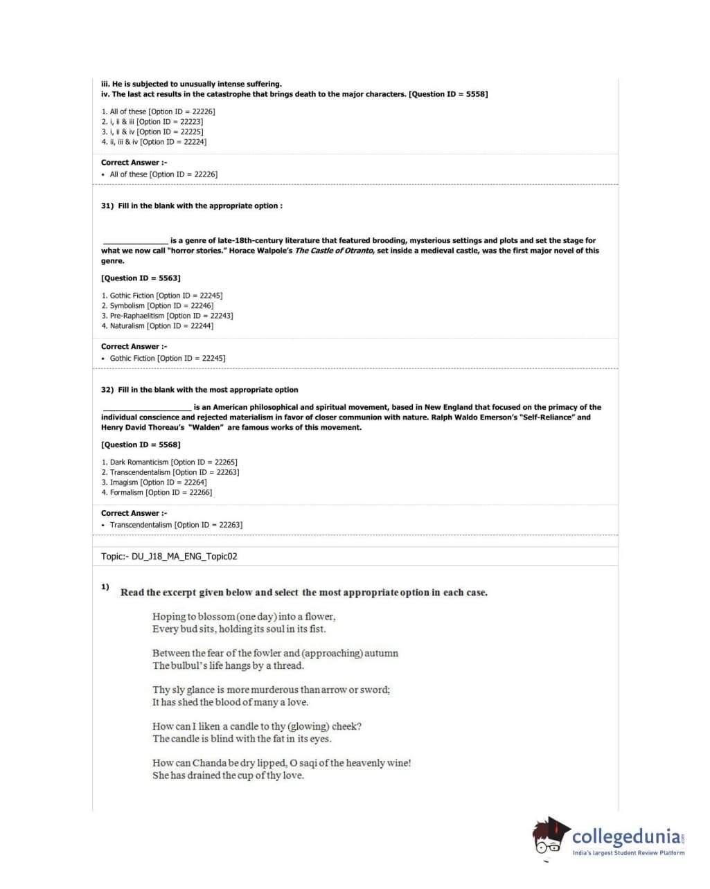 DUET 2018 M.A. English Question Paper with Answer Key PDF Shift 1
