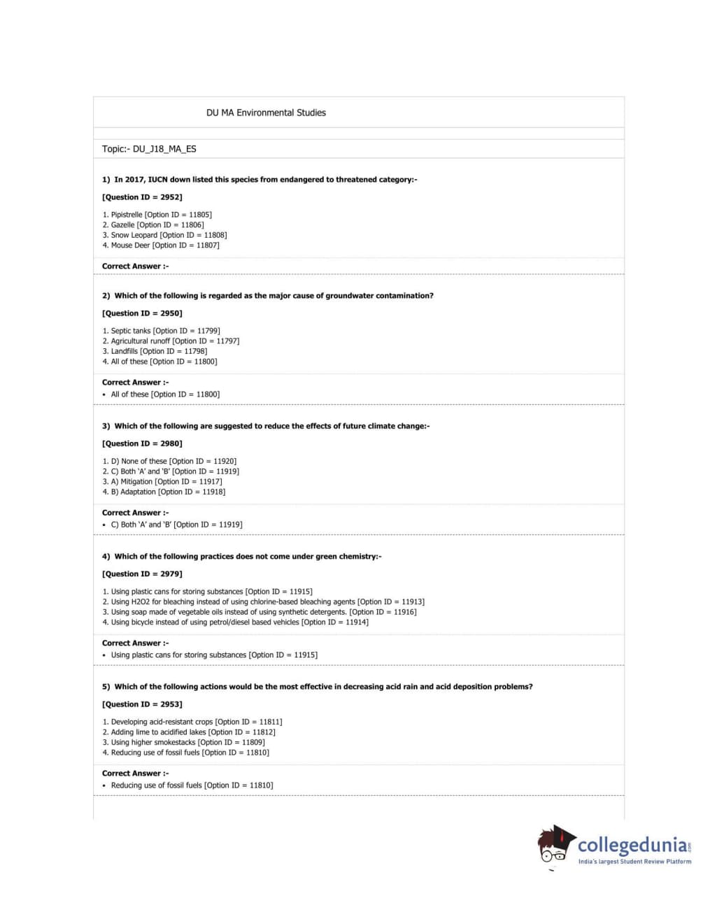 DUET 2018 M.A. Environmental Studies Question paper with answer key pdf conducted on June 20, 2018 in Shift 1 is available for download. The exam was successfully organized by University of Delhi. The question paper comprised a total of 50 questions.