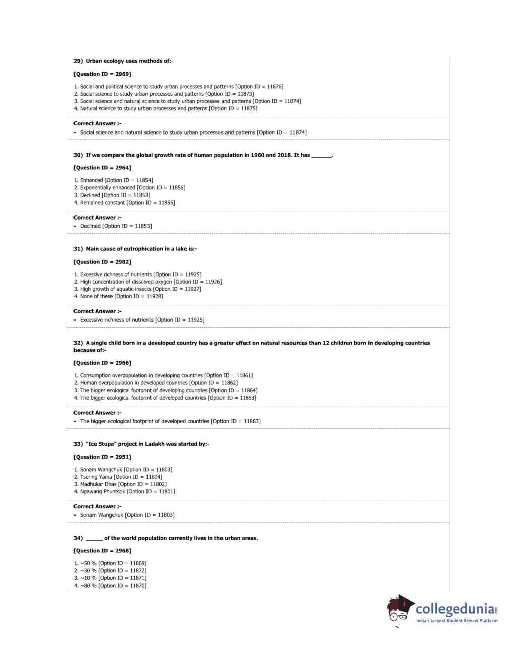 DUET 2018 M.A. Environmental Studies Question Paper with Answer Key PDF Shift 1