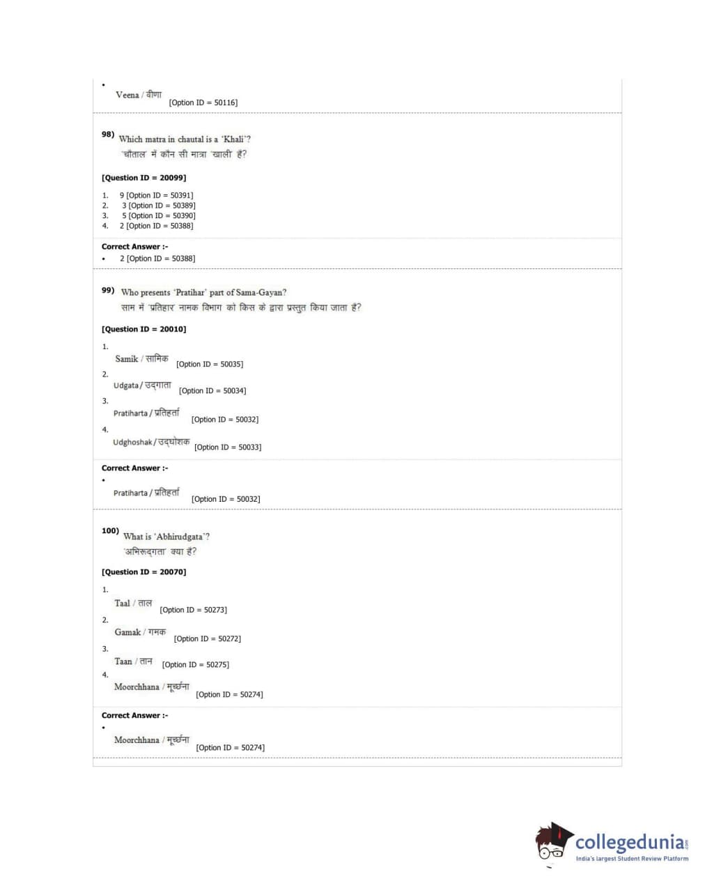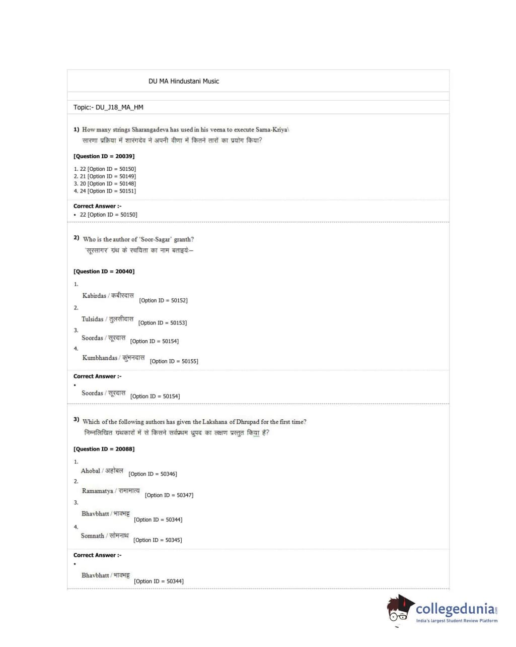 DUET 2018 M.A. Hindustani Music Question paper with answer key pdf conducted on June 18, 2018 in Shift 2 is available for download. The exam was successfully organized by University of Delhi. The question paper comprised a total of 100 questions.